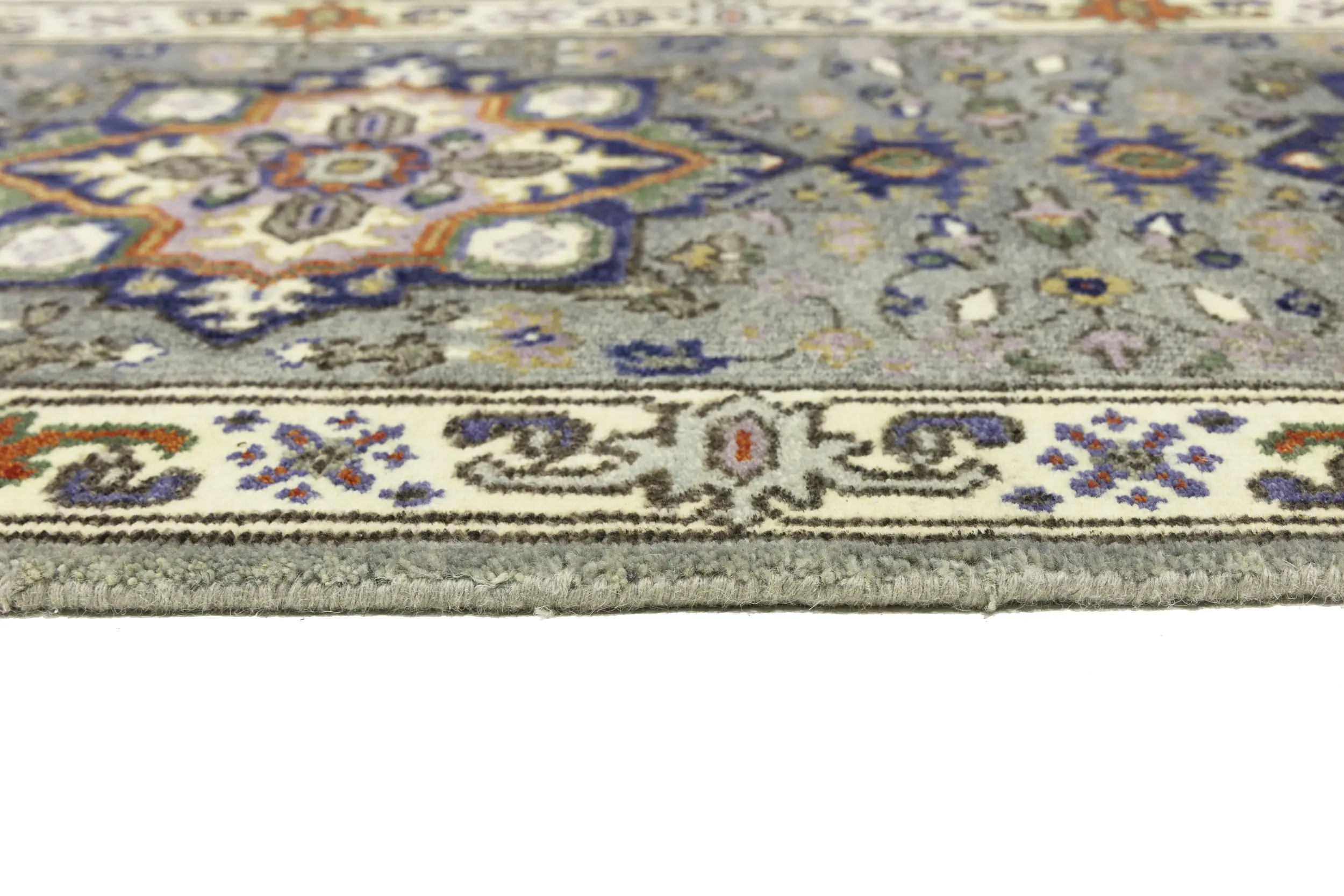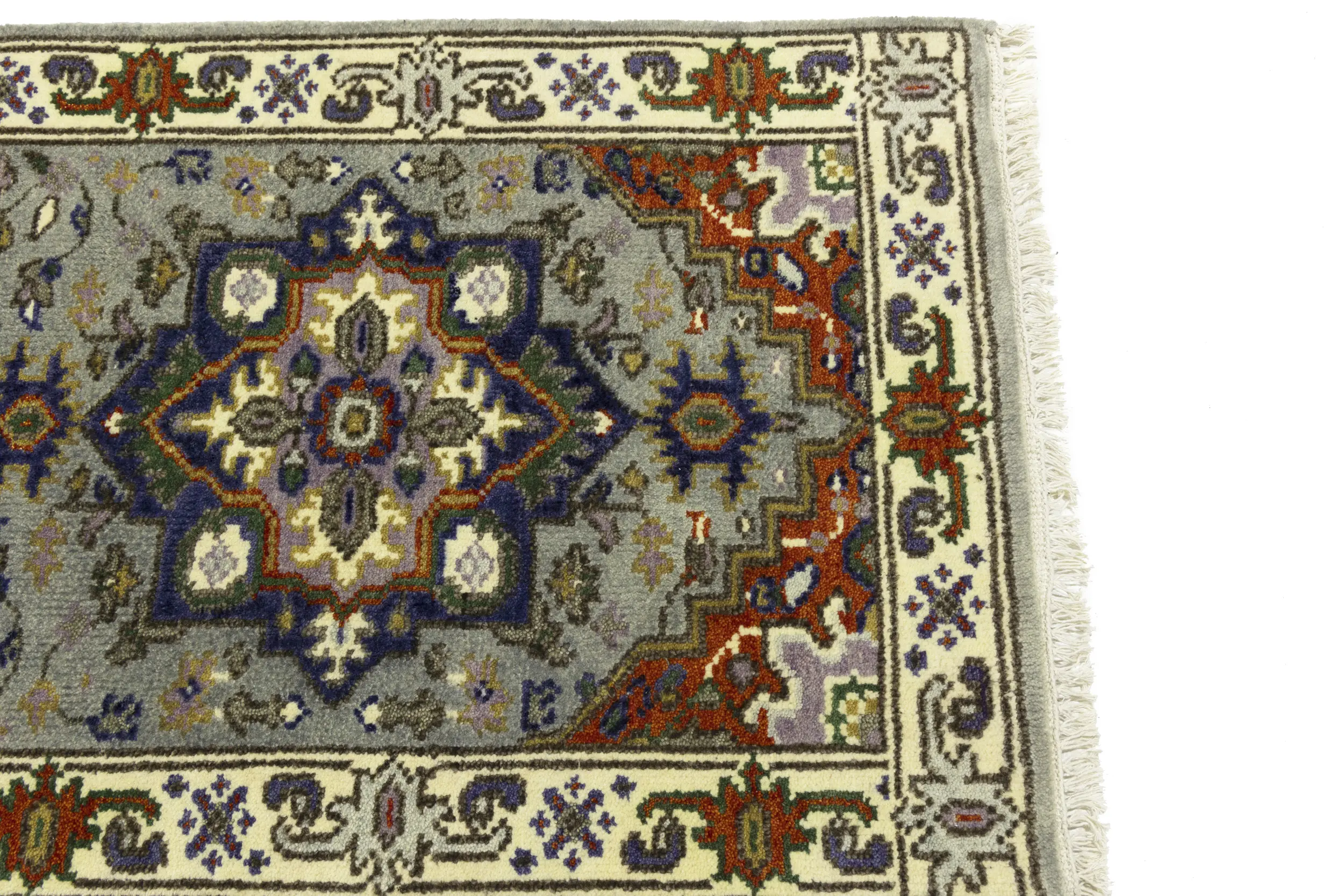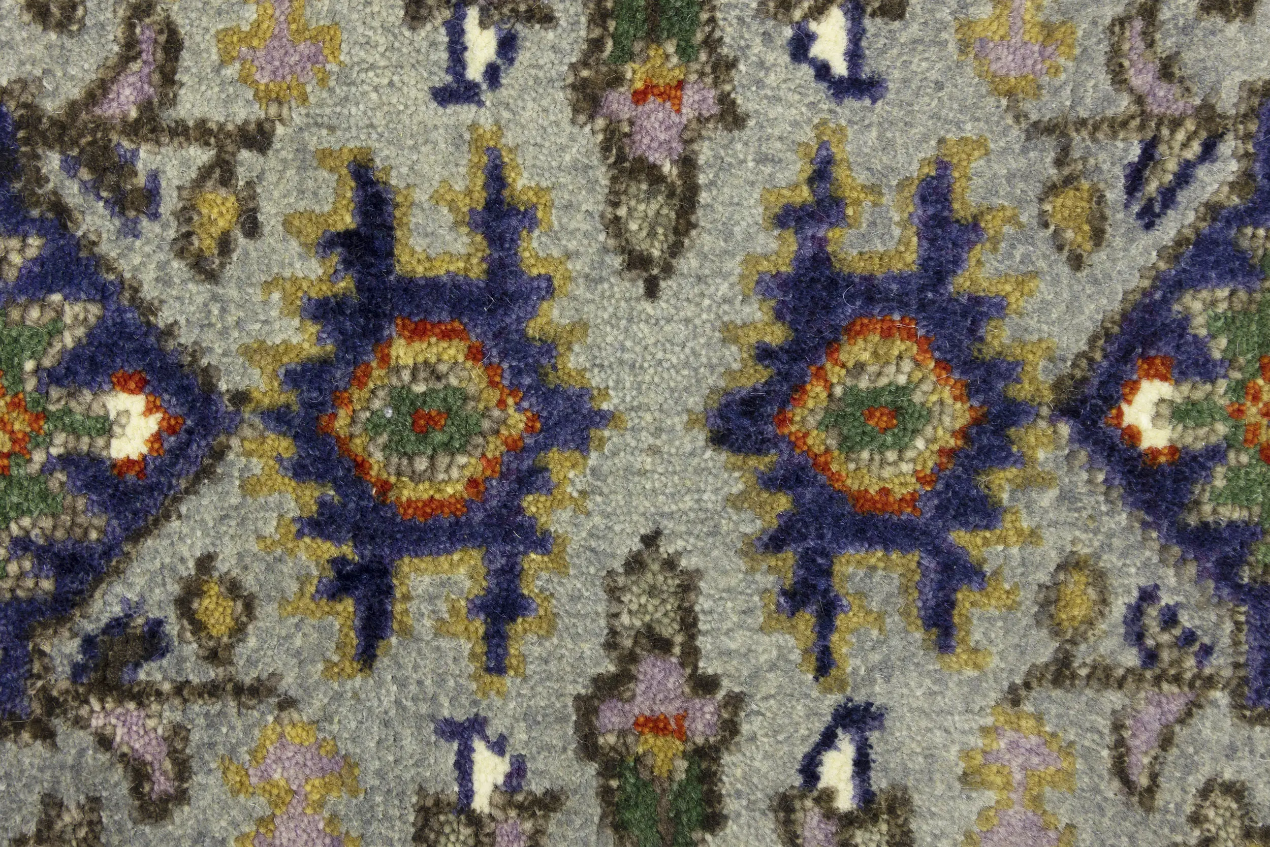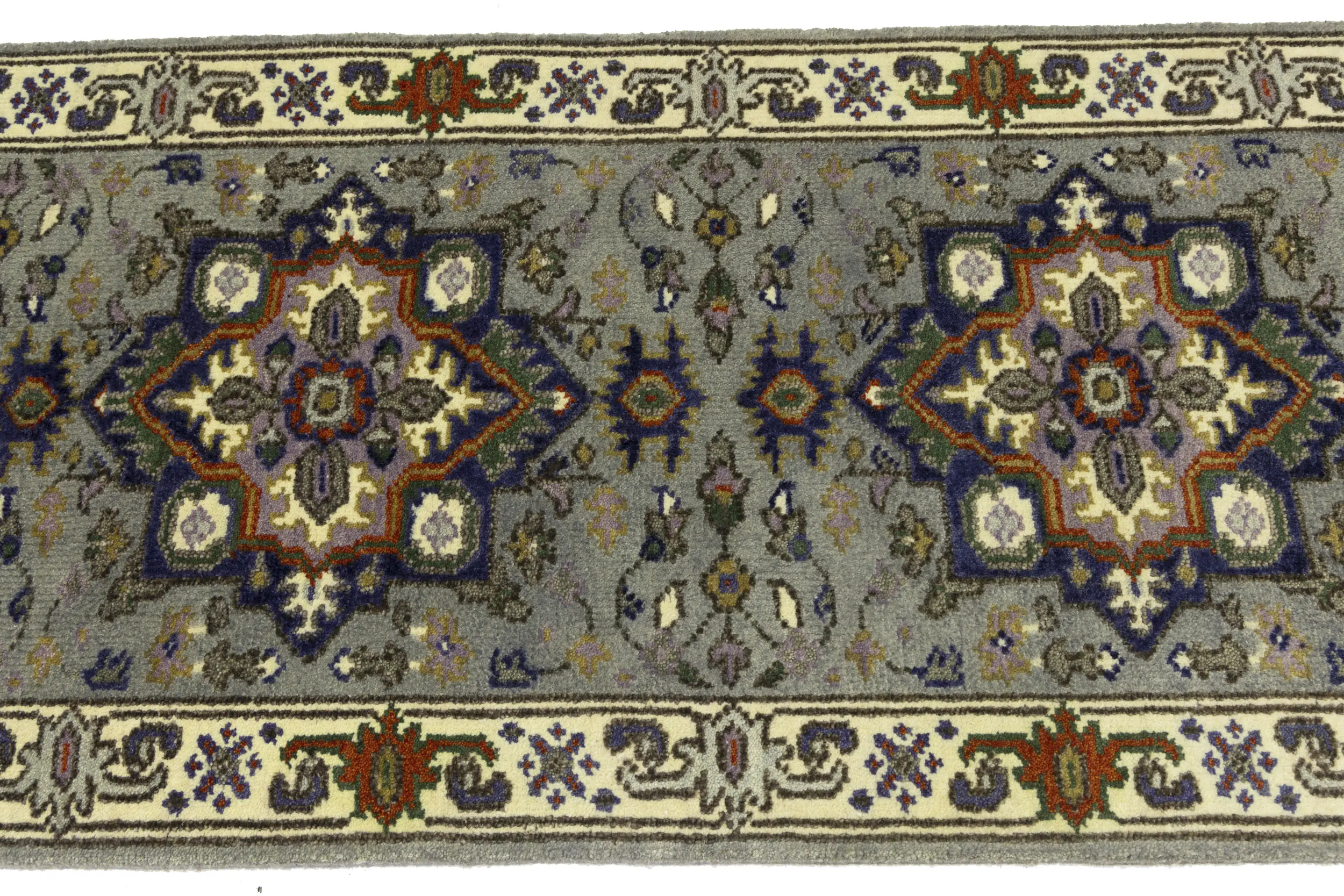 This original 2'7X10'2 gray new Oriental runner was finely knotted by the hands of weavers influenced by a variety of amazing artistic designs, to recreate the aged look of the exceptional piece with a richness of color and embellished background field. What set this vintage style Oriental area runner from the others are the material and dye used (wool pile and cotton foundation), knot count, antique designs, fantastic grades, and its regional historical connection: it has deep roots, from the story of the people who produced it to the meaning of the symbols and colors displayed across its canvas that have been praised for centuries. This Indian home décor carpet will be completely cozy and inviting that never will go out of style!