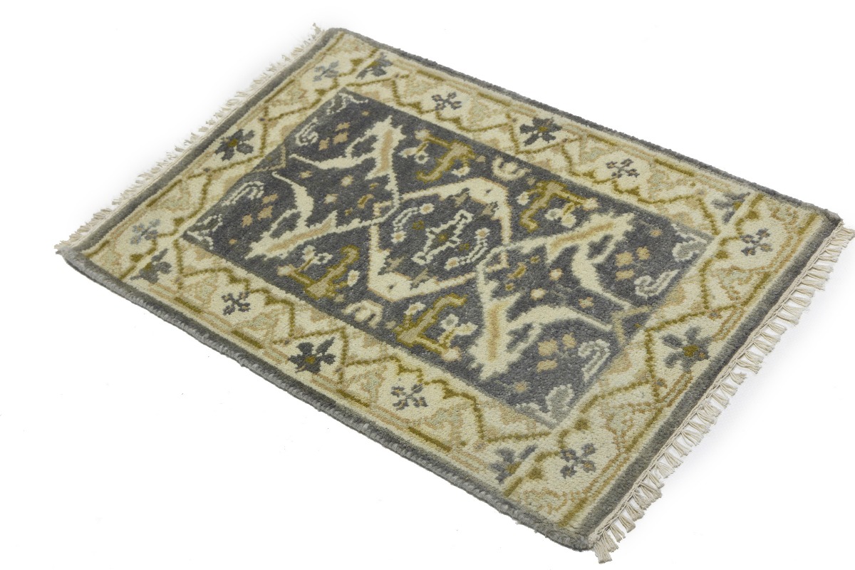 This original 2X3 gray new Oriental rug was finely knotted by the hands of weavers influenced by a variety of amazing artistic designs, to recreate the aged look of the exceptional piece with a richness of color and embellished background field. What set this vintage style Oriental area rug from the others are the material and dye used (wool pile and cotton foundation), knot count, antique designs, fantastic grades, and its regional historical connection: it has deep roots, from the story of the people who produced it to the meaning of the symbols and colors displayed across its canvas that have been praised for centuries. This Indian home décor carpet will be completely cozy and inviting that never will go out of style! Also, this Oriental rug would be among your most valuable treasures, it is a great investment that increase in value over time, and it will last a lifetime because was woven with high-quality, all-natural wool. Eco-friendly, opulent yet affordable; this rug will give you an extra pop of character to help define your home environment with luxury and warmth that will capture the eyes and attention of your audience (homeowners, designers, decorators, family and friends). OT-7751