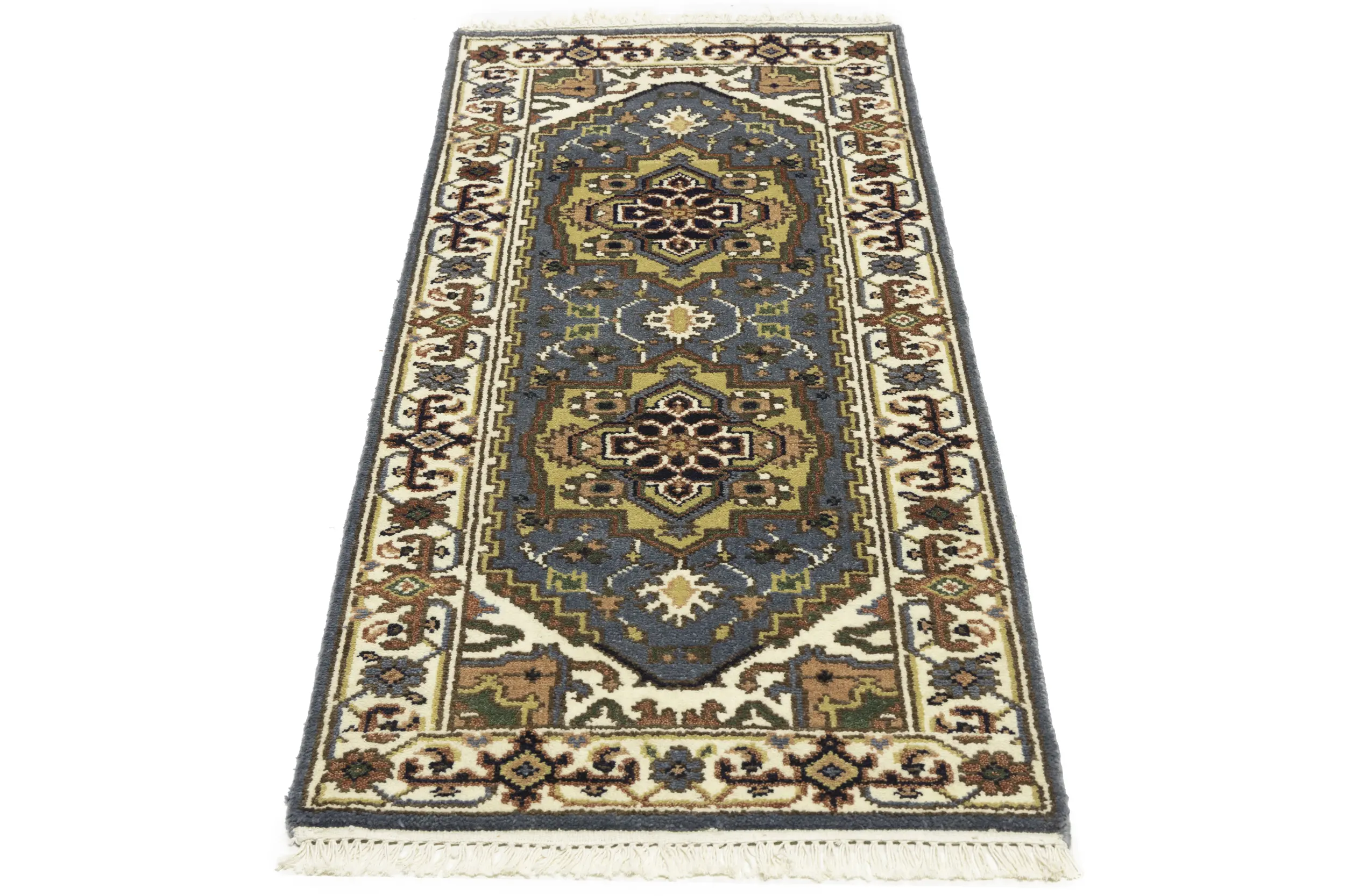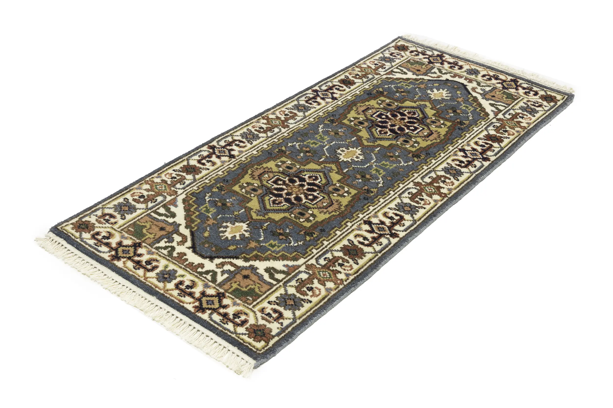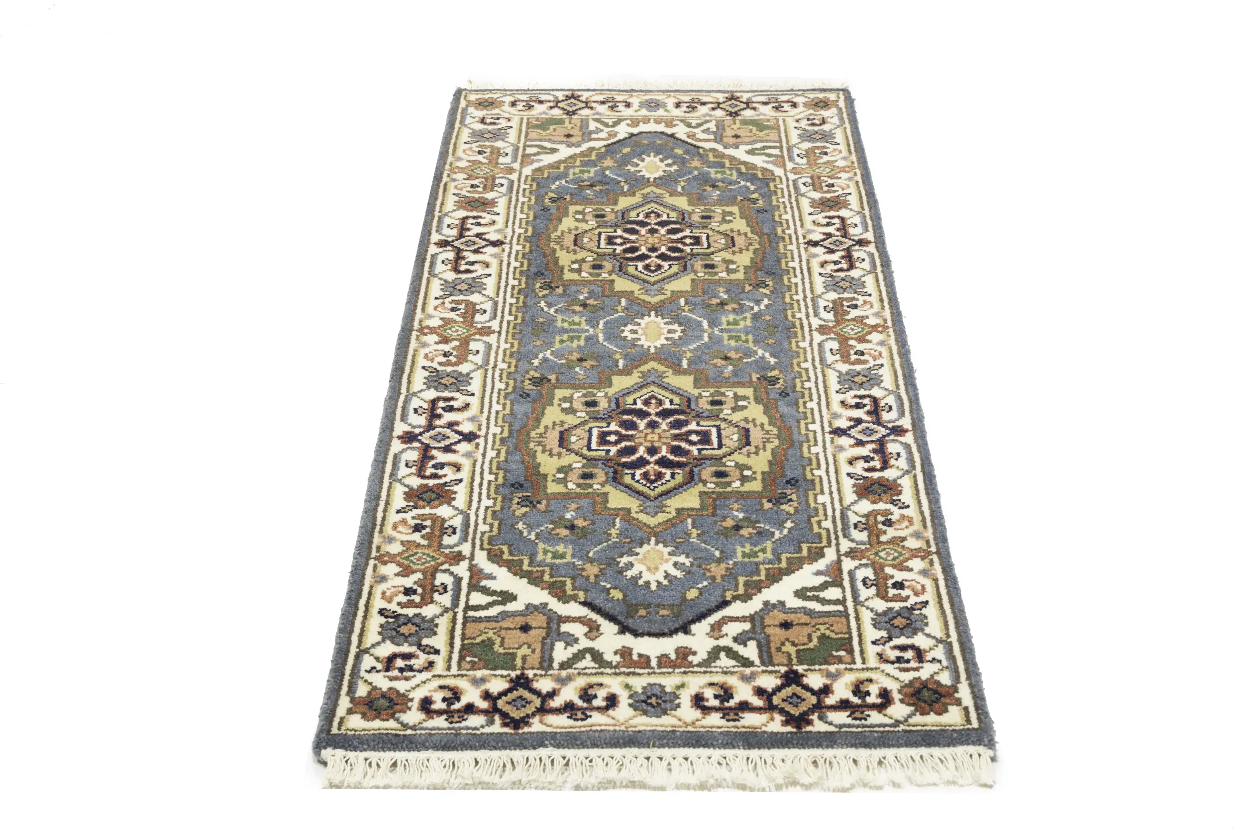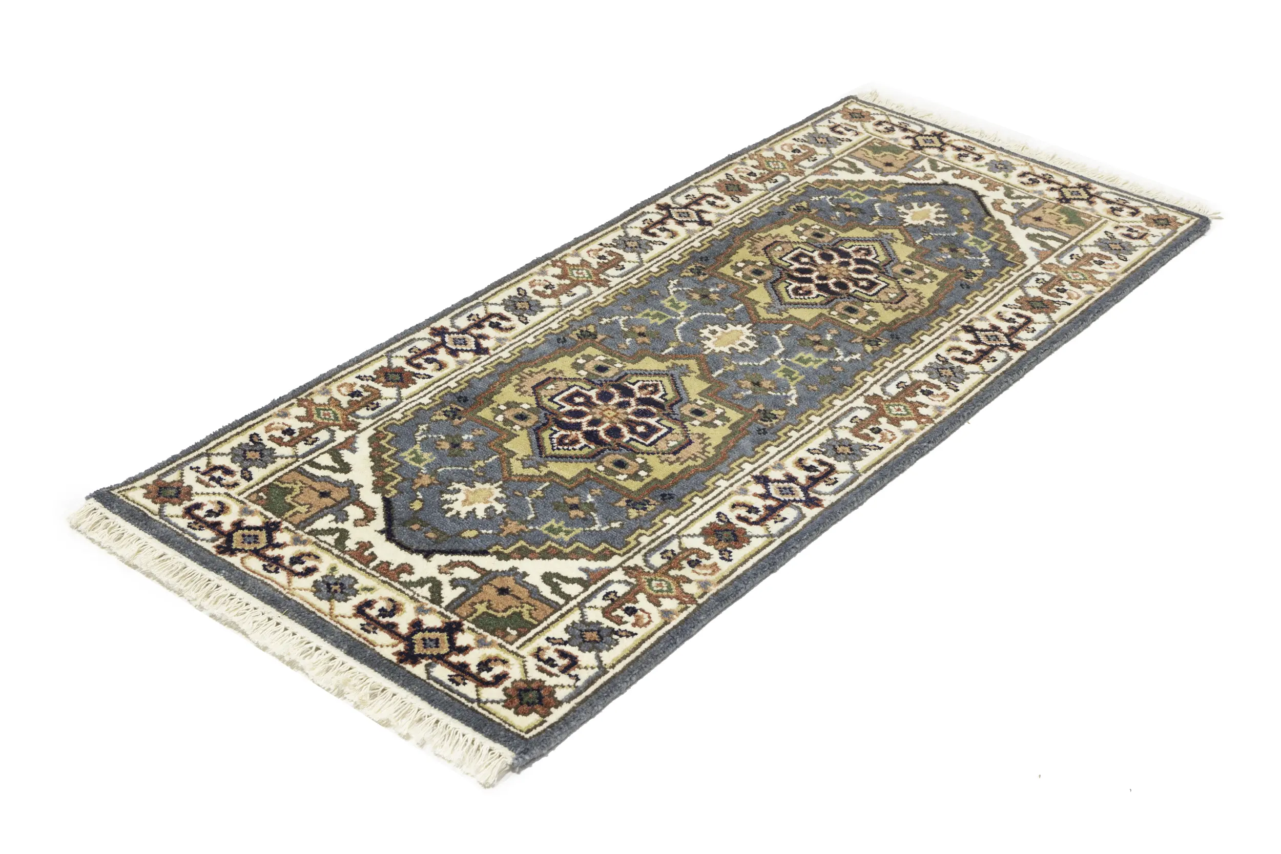 Handmade 3X6 gray Oriental rug made with vegetable dyes (fine wool pile and cotton foundation), superior knot count, and appealing ancient designs. This Oriental rug/runner never will go out of style and would be among your most valuable treasures.