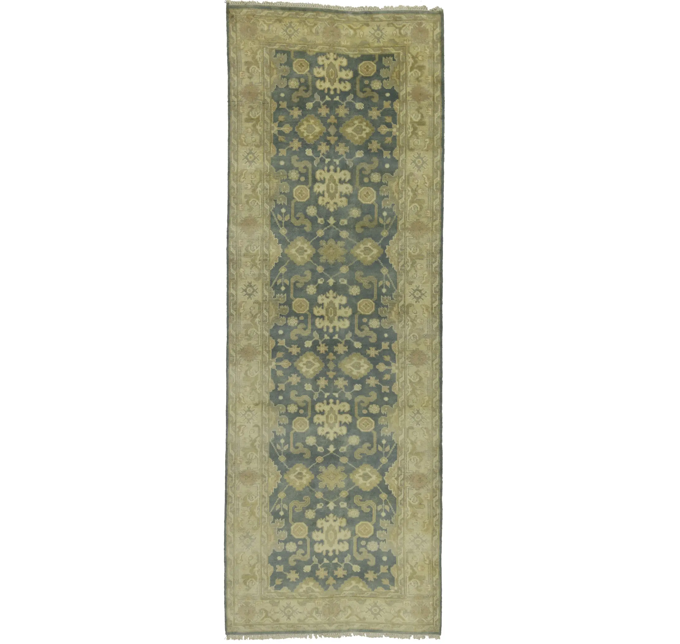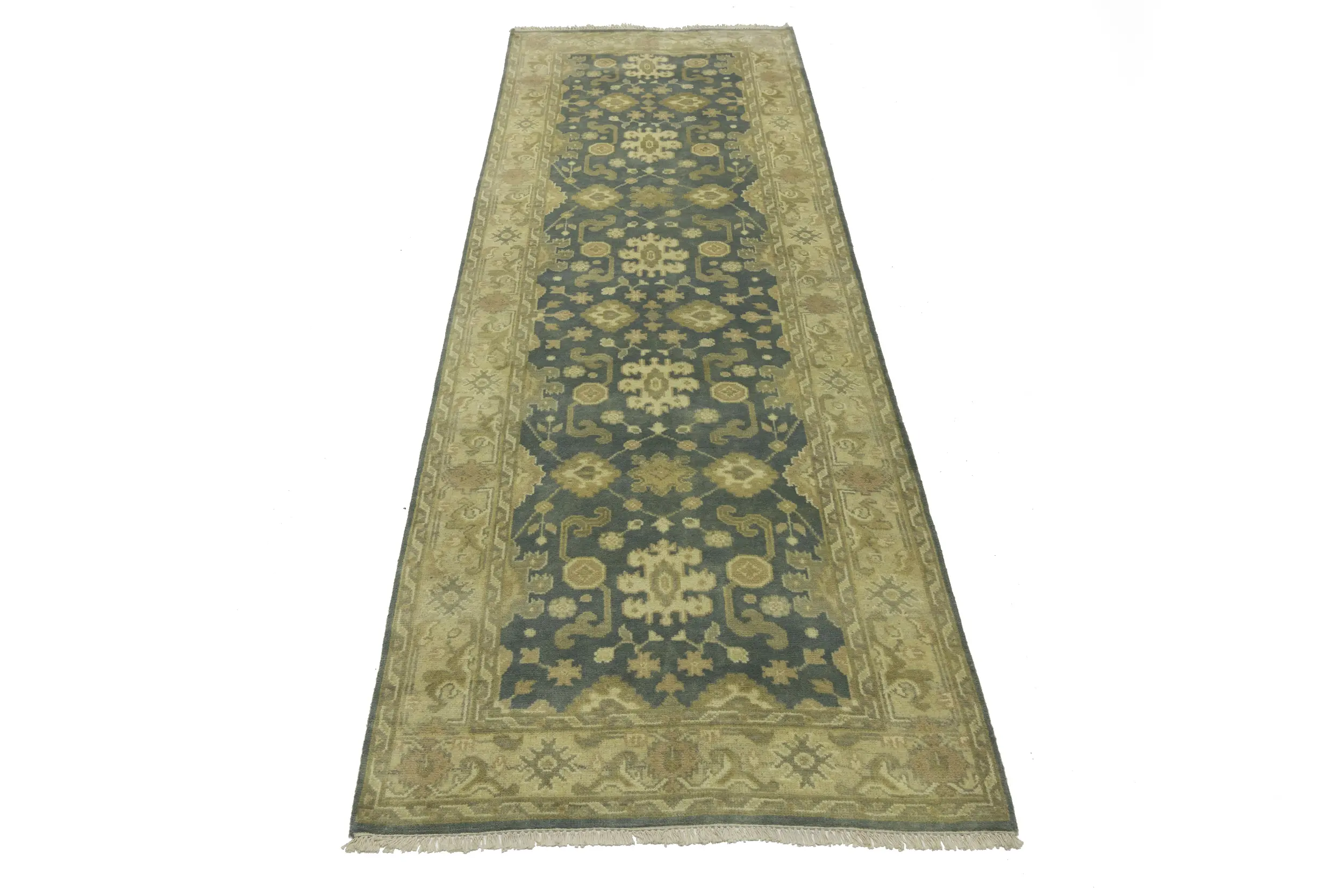 This original 4X12 gray new Oriental runner was finely knotted by the hands of weavers influenced by a variety of amazing artistic designs, to recreate the aged look of the exceptional piece with a richness of color and embellished background field. What set this vintage style Oriental area runner from the others are the material and dye used (wool pile and cotton foundation), knot count, antique designs, fantastic grades, and its regional historical connection: it has deep roots, from the story of the people who produced it to the meaning of the symbols and colors displayed across its canvas that have been praised for centuries. This Indian home décor carpet will be completely cozy and inviting that never will go out of style! Also, this Oriental runner would be among your most valuable treasures, it is a great investment that increase in value over time, and it will last a lifetime because was woven with high-quality, all-natural wool. Eco-friendly, opulent yet affordable; this rug will give you an extra pop of character to help define your home environment with luxury and warmth that will capture the eyes and attention of your audience (homeowners, designers, decorators, family and friends).