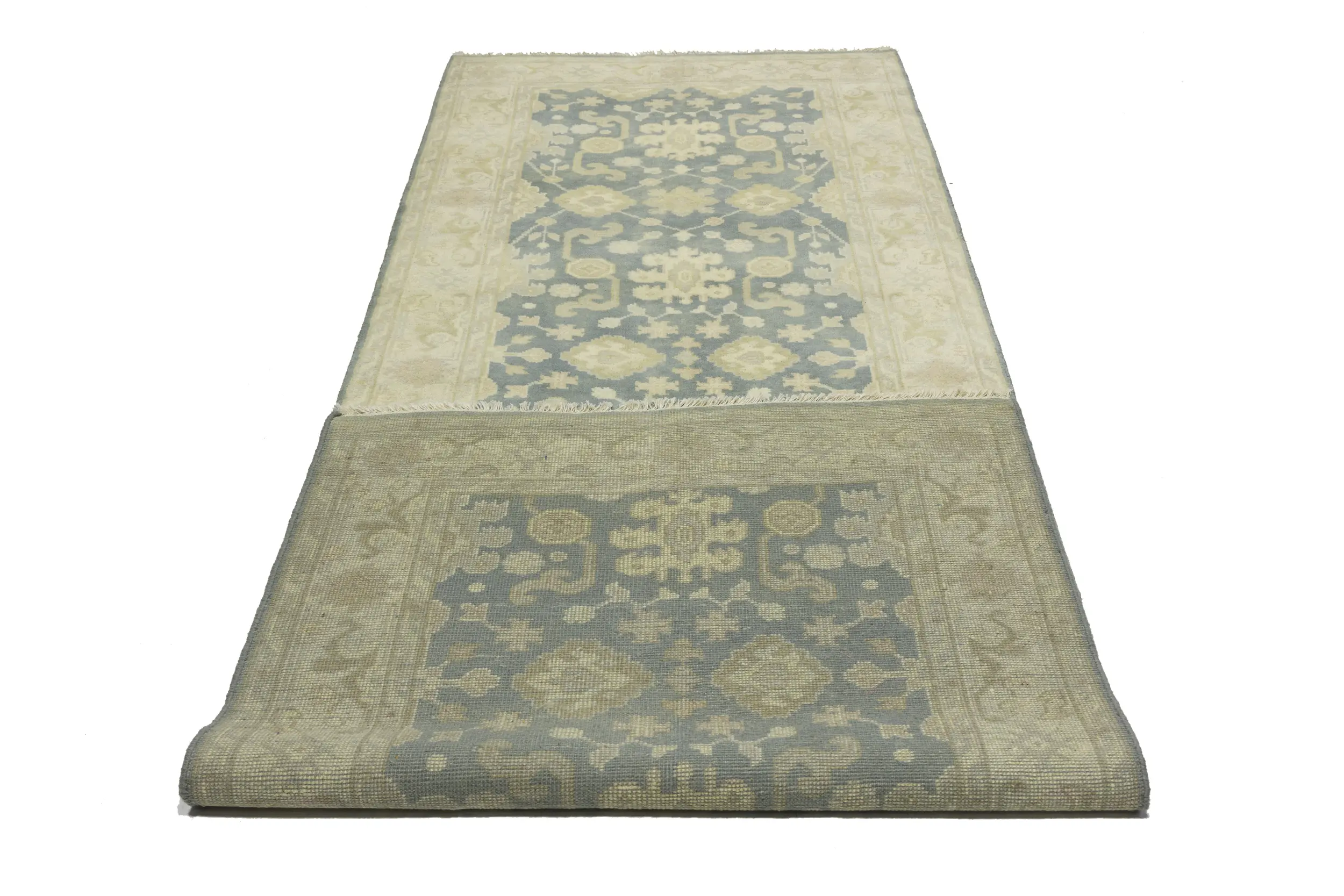 Gray Floral 4X12 Oushak Chobi Oriental Runner Rug