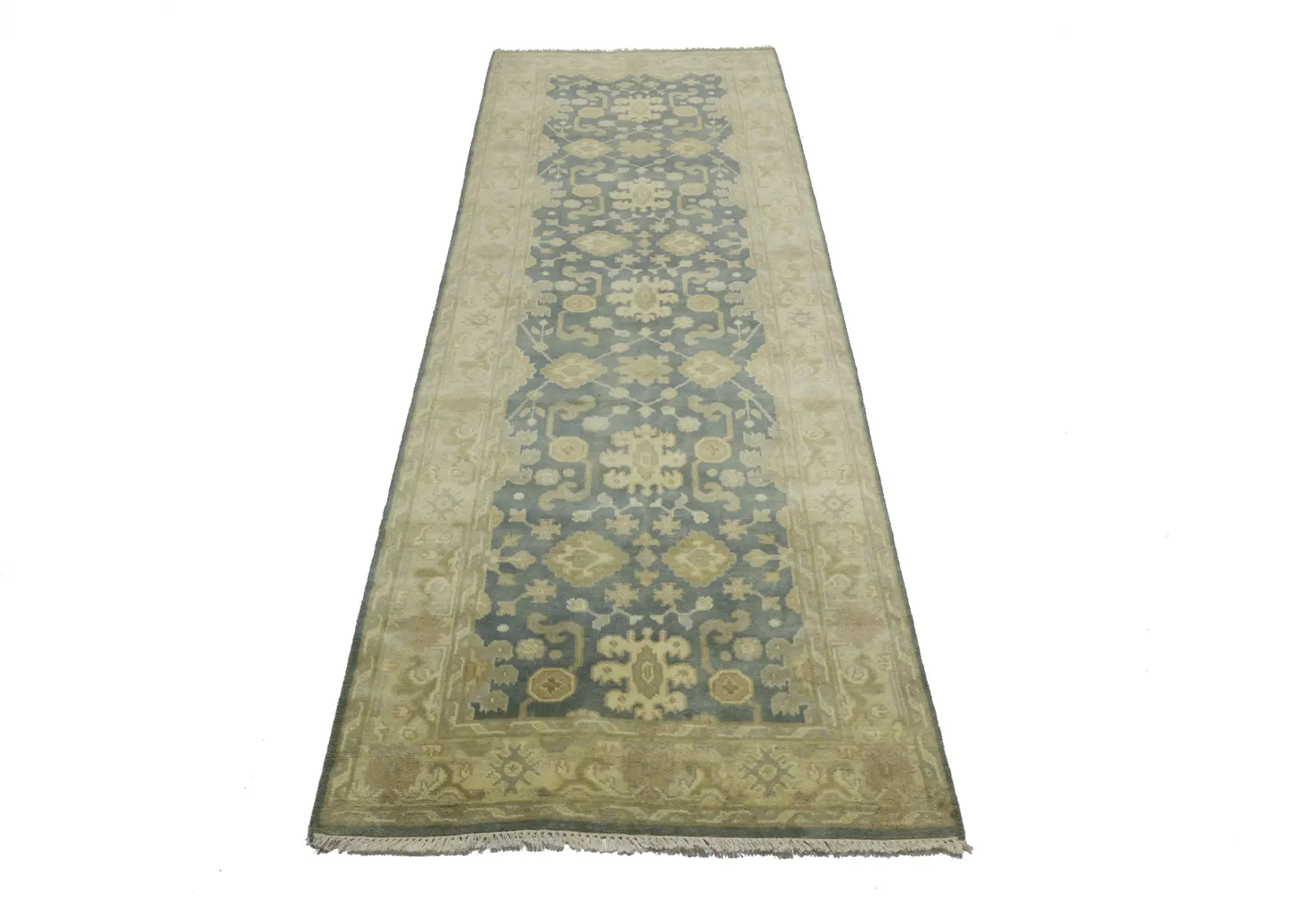 Hand Knotted 4X12 gray oriental runner made with natural dyes (fine wool pile and cotton foundation), superior knot count, and alluring ancient designs. This Oriental runner never will go out of style and would be among your most valuable treasures.