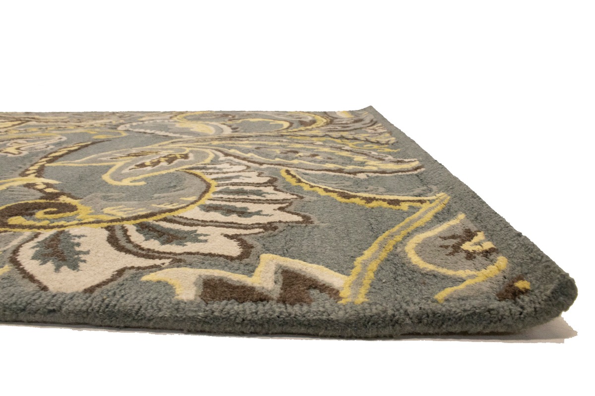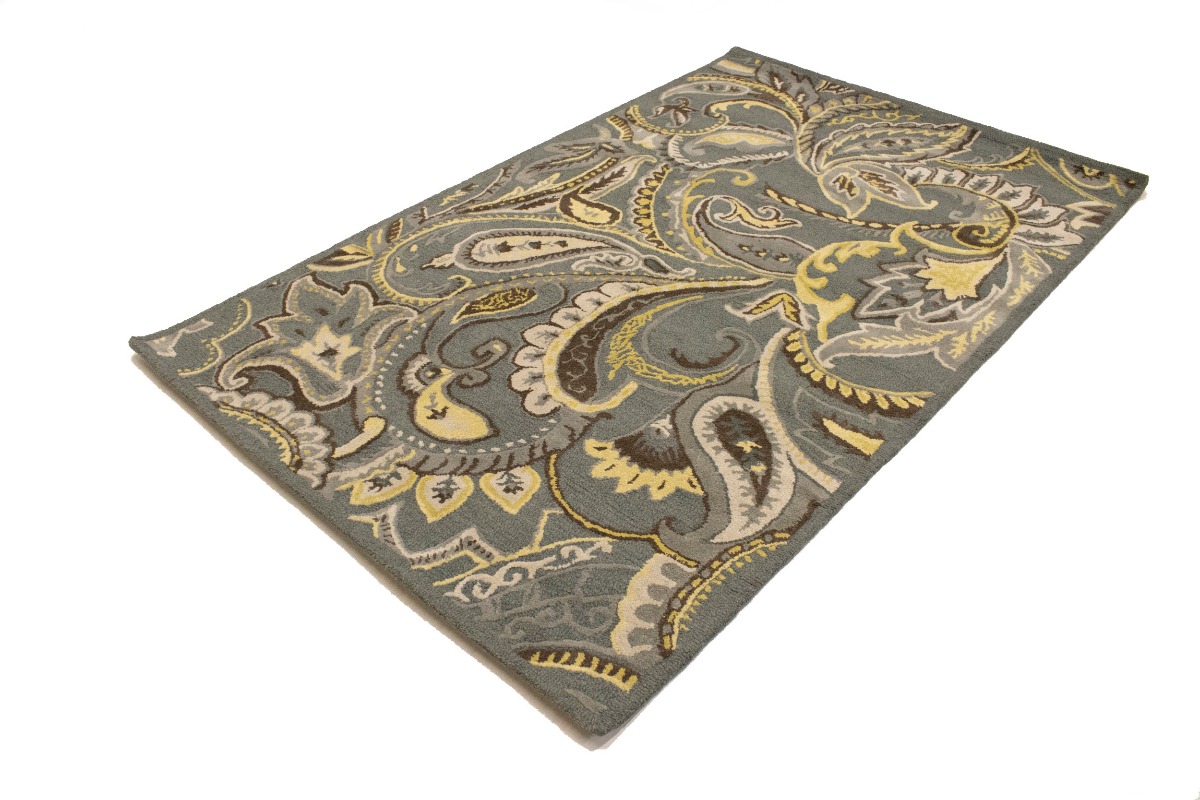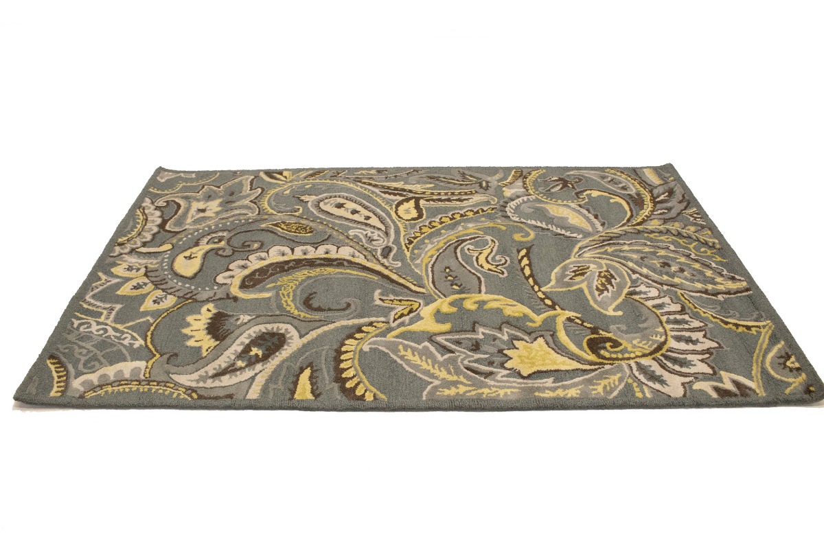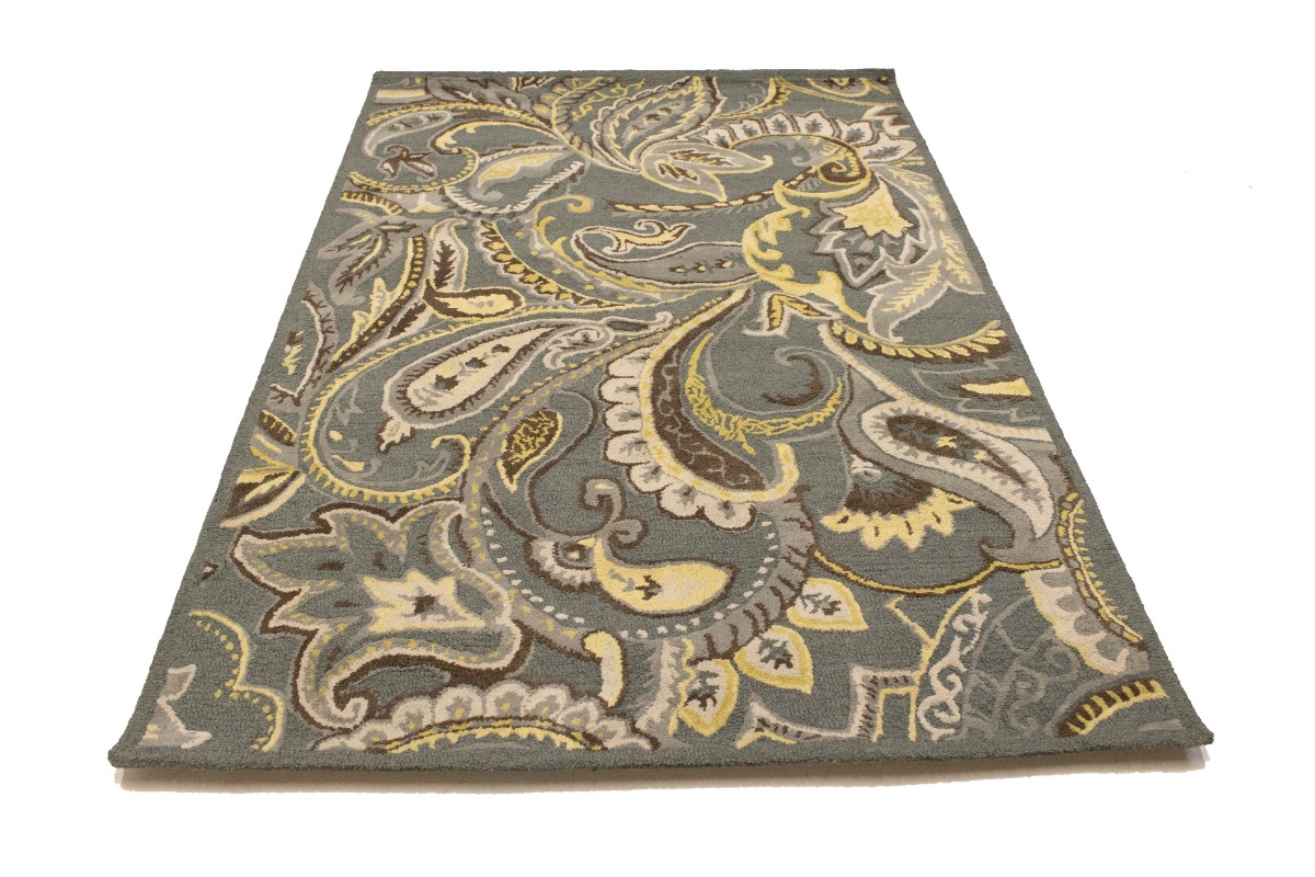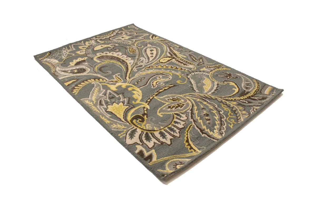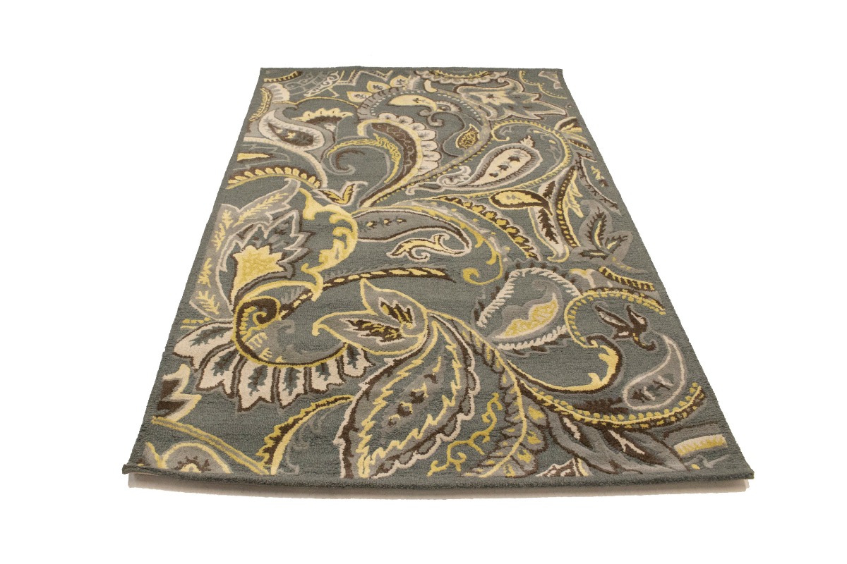 Paisley Floral Design Gray Foyer Living Room 5X8 Hand-Tufted Modern Rug Carpet