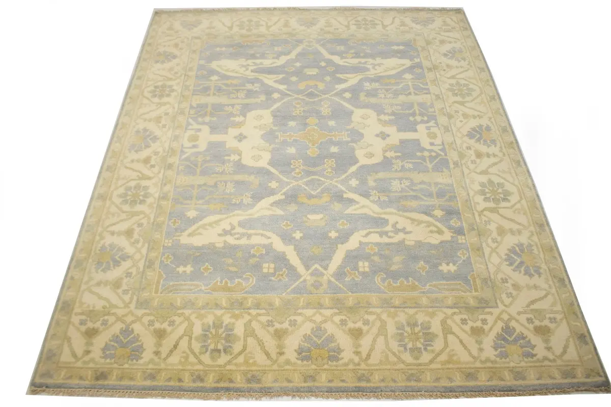 Handmade 8X10 gray oriental rug made with vegetable dyes (fine wool pile and cotton foundation), superior knot count, and alluring ancient designs. This Oriental rug never will go out of style and would be among your most valuable treasures.