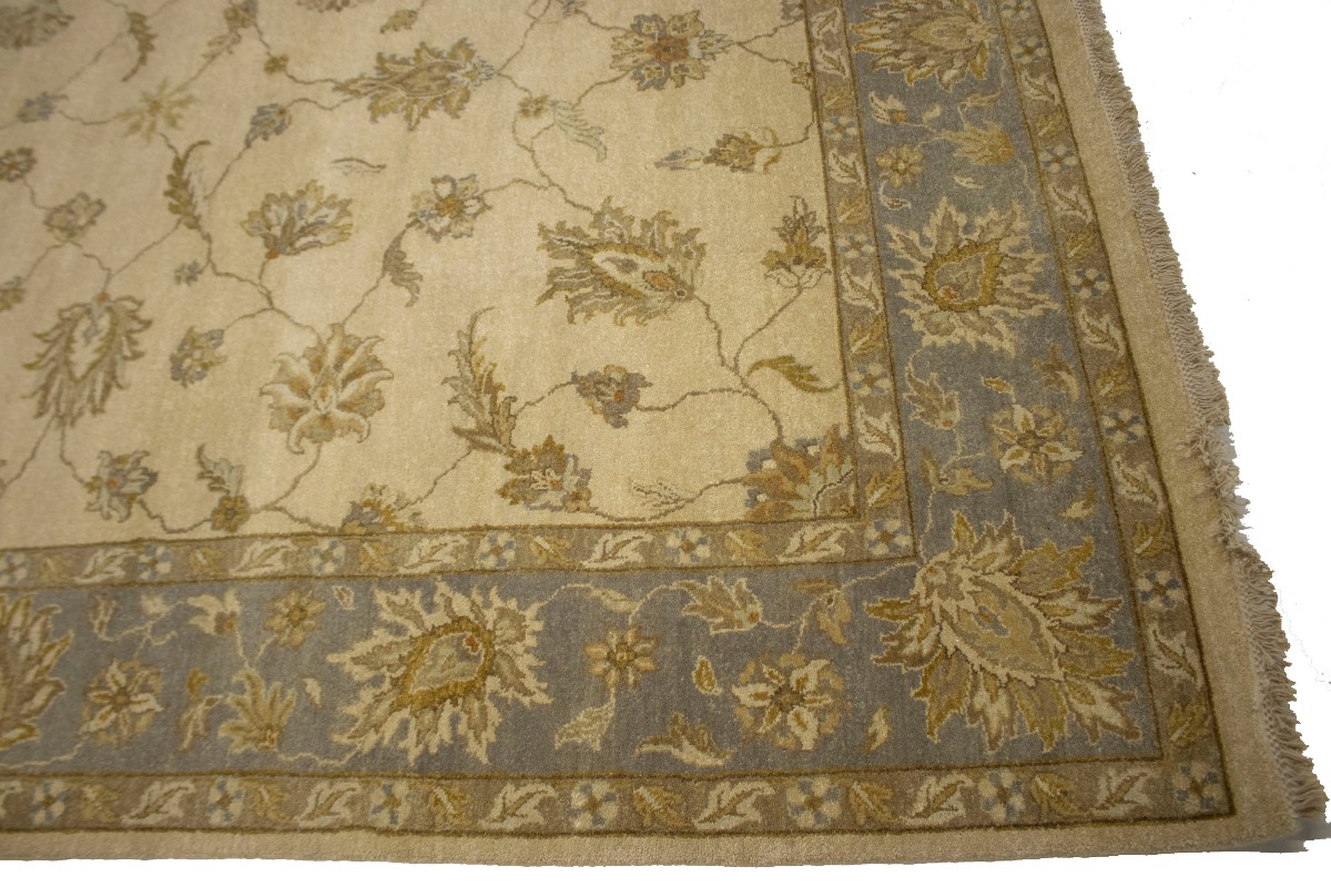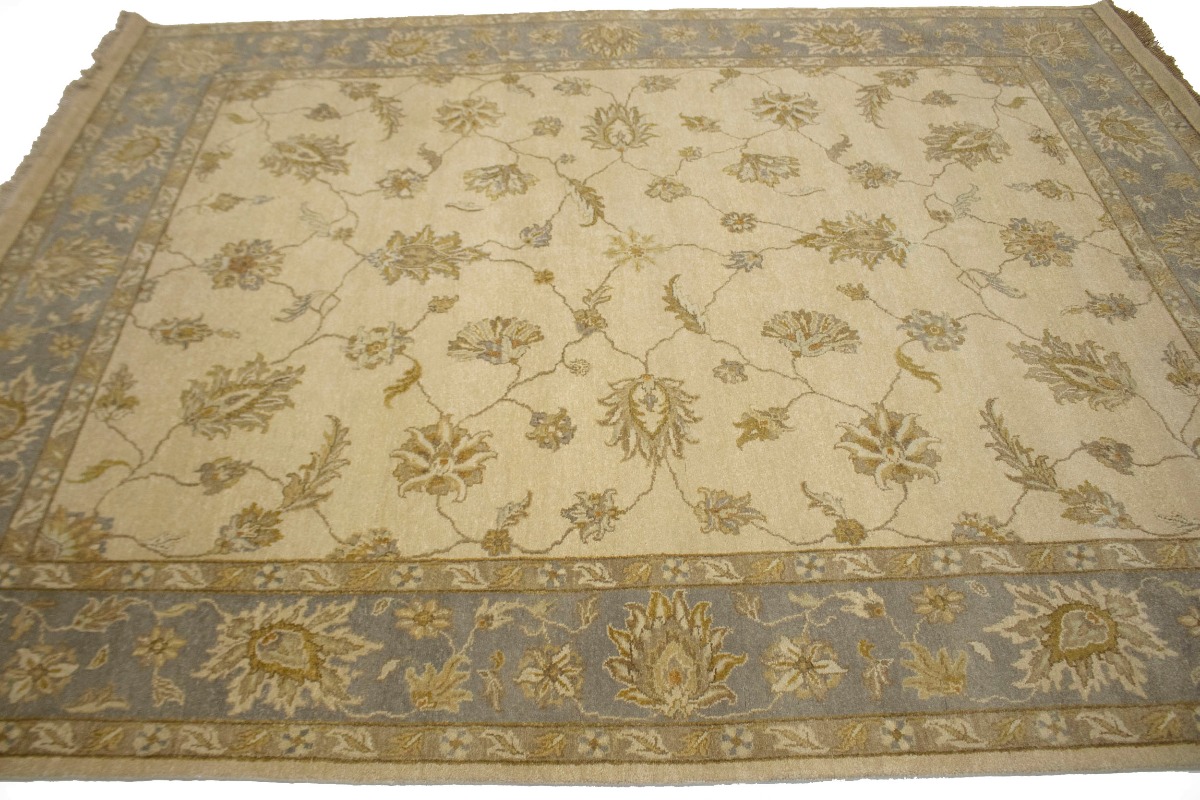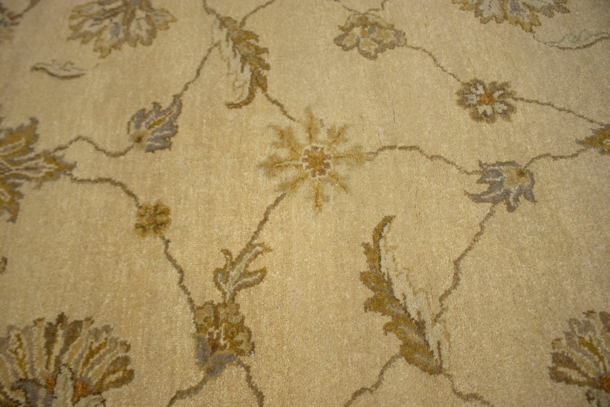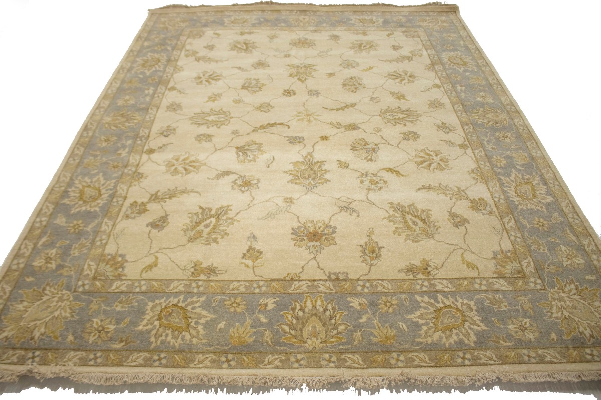 This original 8X11 cream new Oriental rug was finely knotted by the hands of weavers influenced by a variety of amazing artistic designs, to recreate the aged look of the exceptional piece with a richness of color and embellished background field. What set this vintage style Oriental area rug from the others are the material and dye used (wool pile and cotton foundation), knot count, antique designs, fantastic grades, and its regional historical connection: it has deep roots, from the story of the people who produced it to the meaning of the symbols and colors displayed across its canvas that have been praised for centuries. This Indian home décor carpet will be completely cozy and inviting that never will go out of style! Also, this Oriental rug would be among your most valuable treasures, it is a great investment that increase in value over time, and it will last a lifetime because was woven with high-quality, all-natural wool. Eco-friendly, opulent yet affordable; this rug will give you an extra pop of character to help define your home environment with luxury and warmth that will capture the eyes and attention of your audience (homeowners, designers, decorators, family and friends). OT-4747
