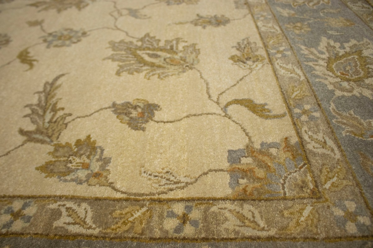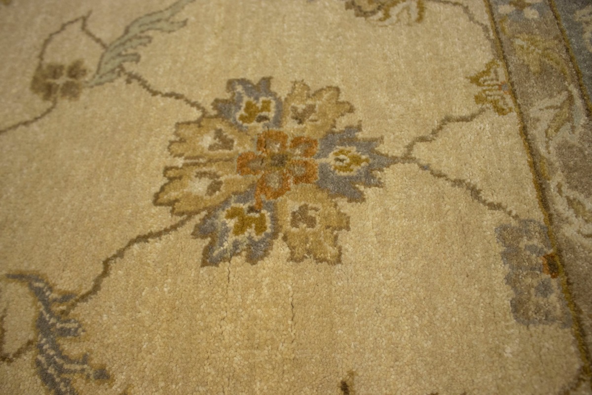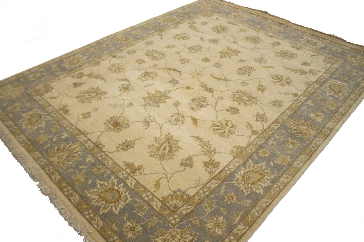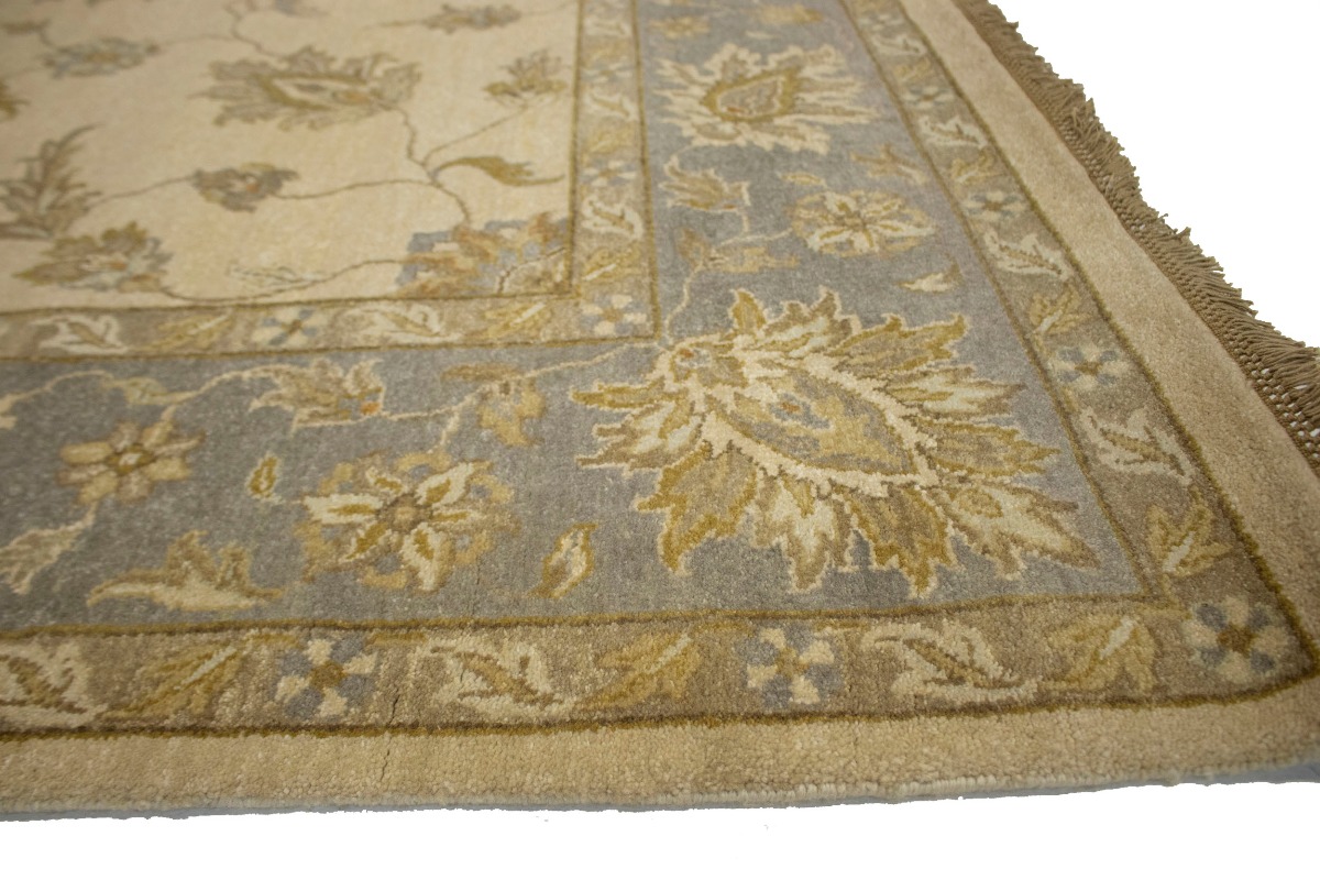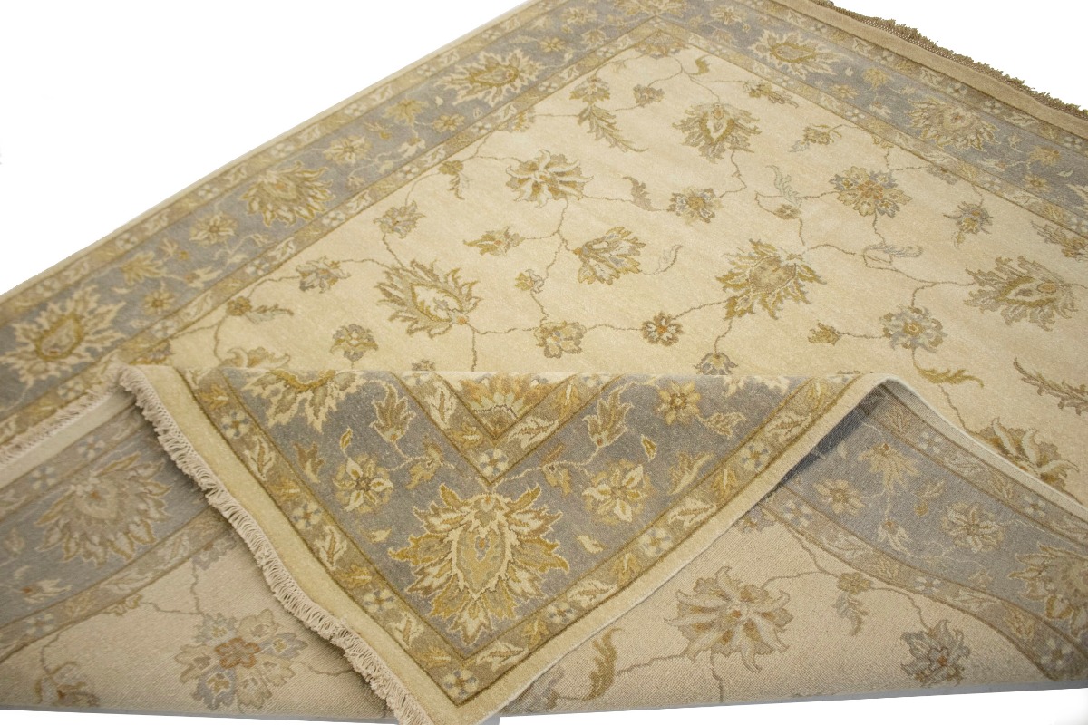 This original 8X11 cream new Oriental rug was finely knotted by the hands of weavers influenced by a variety of amazing artistic designs, to recreate the aged look of the exceptional piece with a richness of color and embellished background field. What set this vintage style Oriental area rug from the others are the material and dye used (wool pile and cotton foundation), knot count, antique designs, fantastic grades, and its regional historical connection: it has deep roots, from the story of the people who produced it to the meaning of the symbols and colors displayed across its canvas that have been praised for centuries. This Indian home décor carpet will be completely cozy and inviting that never will go out of style! Also, this Oriental rug would be among your most valuable treasures, it is a great investment that increase in value over time, and it will last a lifetime because was woven with high-quality, all-natural wool. Eco-friendly, opulent yet affordable; this rug will give you an extra pop of character to help define your home environment with luxury and warmth that will capture the eyes and attention of your audience (homeowners, designers, decorators, family and friends). OT-4747