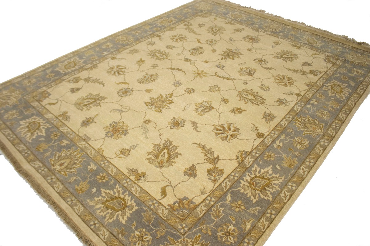 Hand Knotted 8X11 cream oriental rug made with vegetable dyes (fine wool pile and cotton foundation), exceptional knot count, and appealing ancient designs. This Oriental rug never will go out of style and would be among your most valuable treasures.