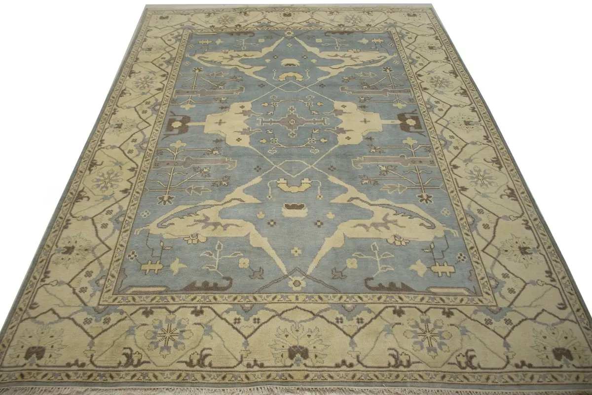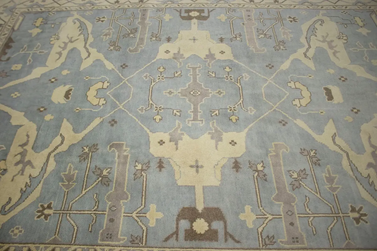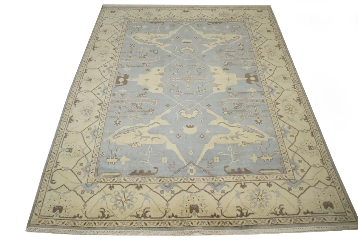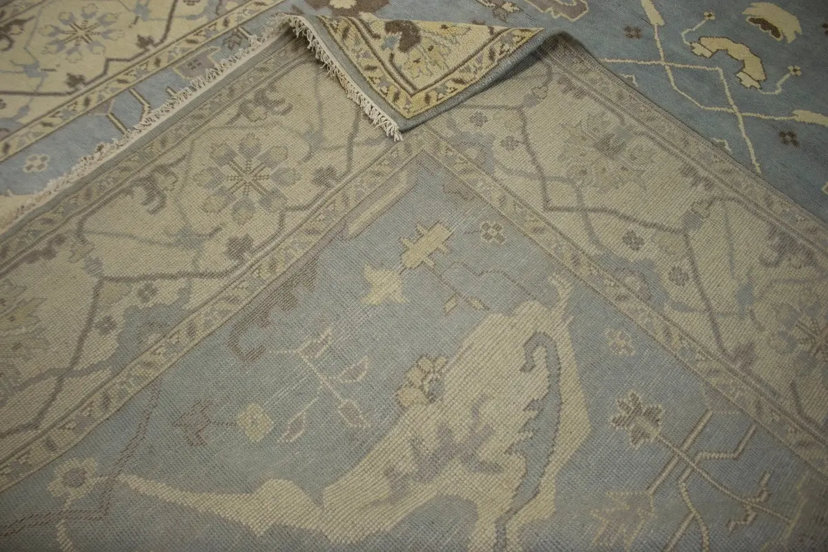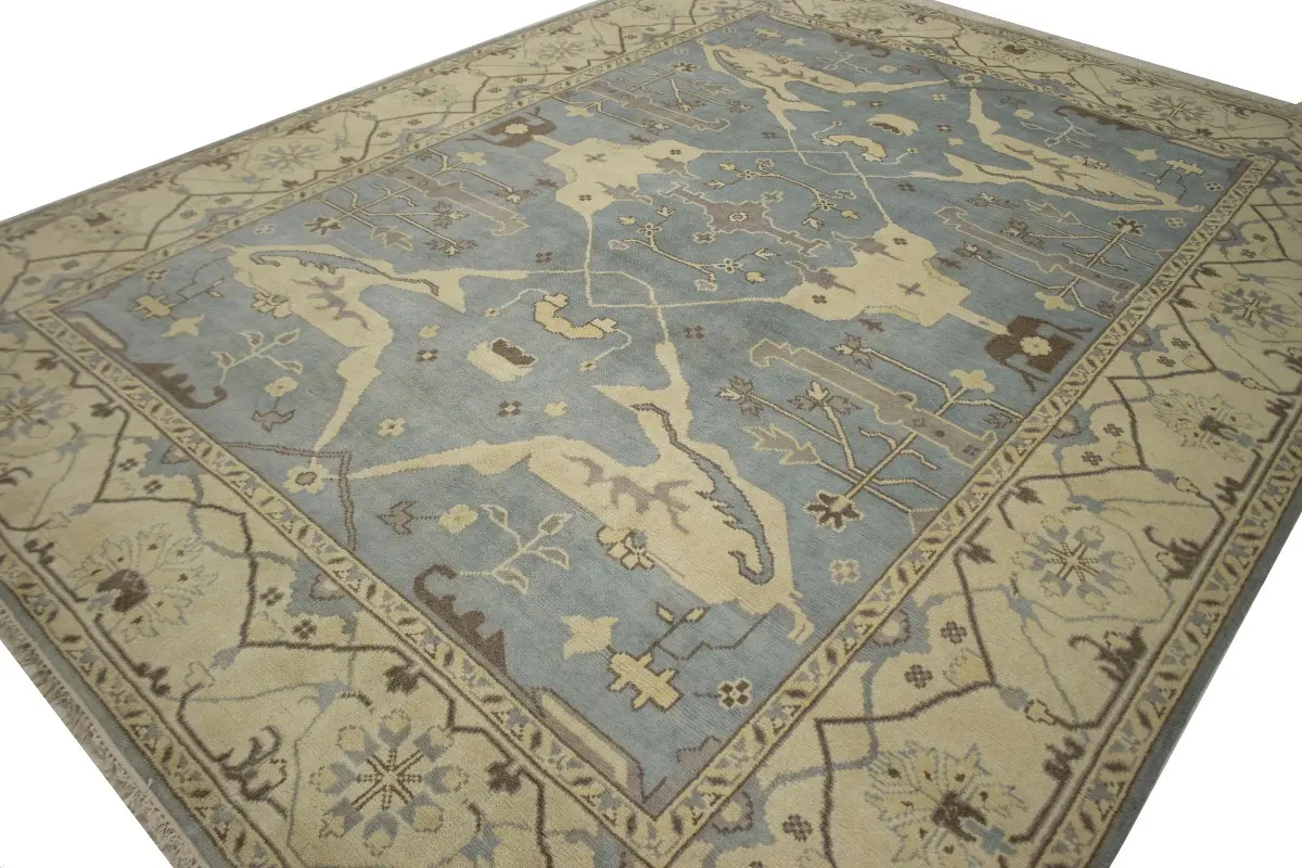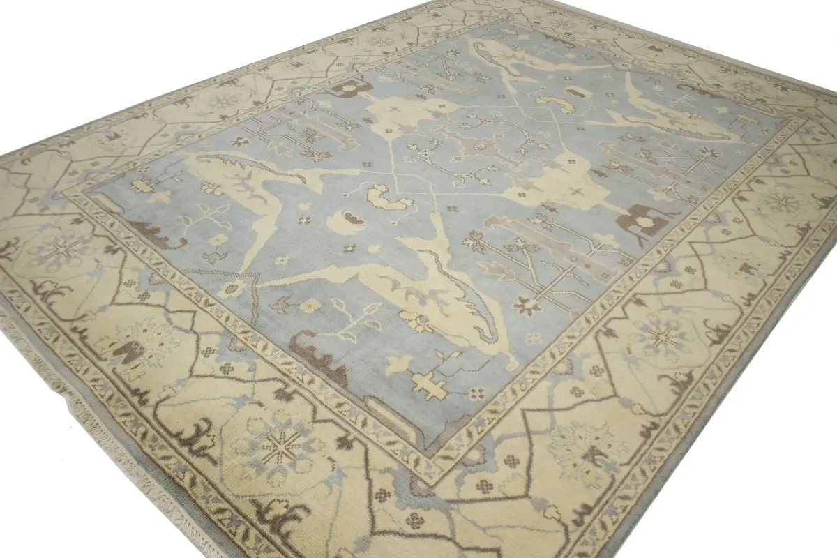 Muted Gray Floral 9X12 Traditional Oushak Oriental Rug