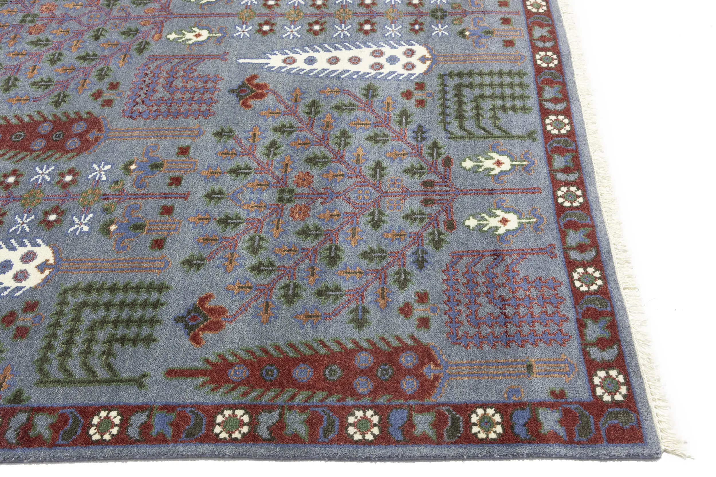 This original 9X12 gray new Oriental rug was finely knotted by the hands of weavers influenced by a variety of amazing artistic designs, to recreate the aged look of the exceptional piece with a richness of color and embellished background field. What set this vintage style Oriental area rug from the others are the material and dye used (wool pile and cotton foundation), knot count, antique designs, fantastic grades, and its regional historical connection: it has deep roots, from the story of the people who produced it to the meaning of the symbols and colors displayed across its canvas that have been praised for centuries. This Indian home décor carpet will be completely cozy and inviting that never will go out of style! Also, this Oriental rug would be among your most valuable treasures, it is a great investment that increase in value over time, and it will last a lifetime because was woven with high-quality, all-natural wool. Eco-friendly, opulent yet affordable; this rug will give you an extra pop of character to help define your home environment with luxury and warmth that will capture the eyes and attention of your audience (homeowners, designers, decorators, family and friends).