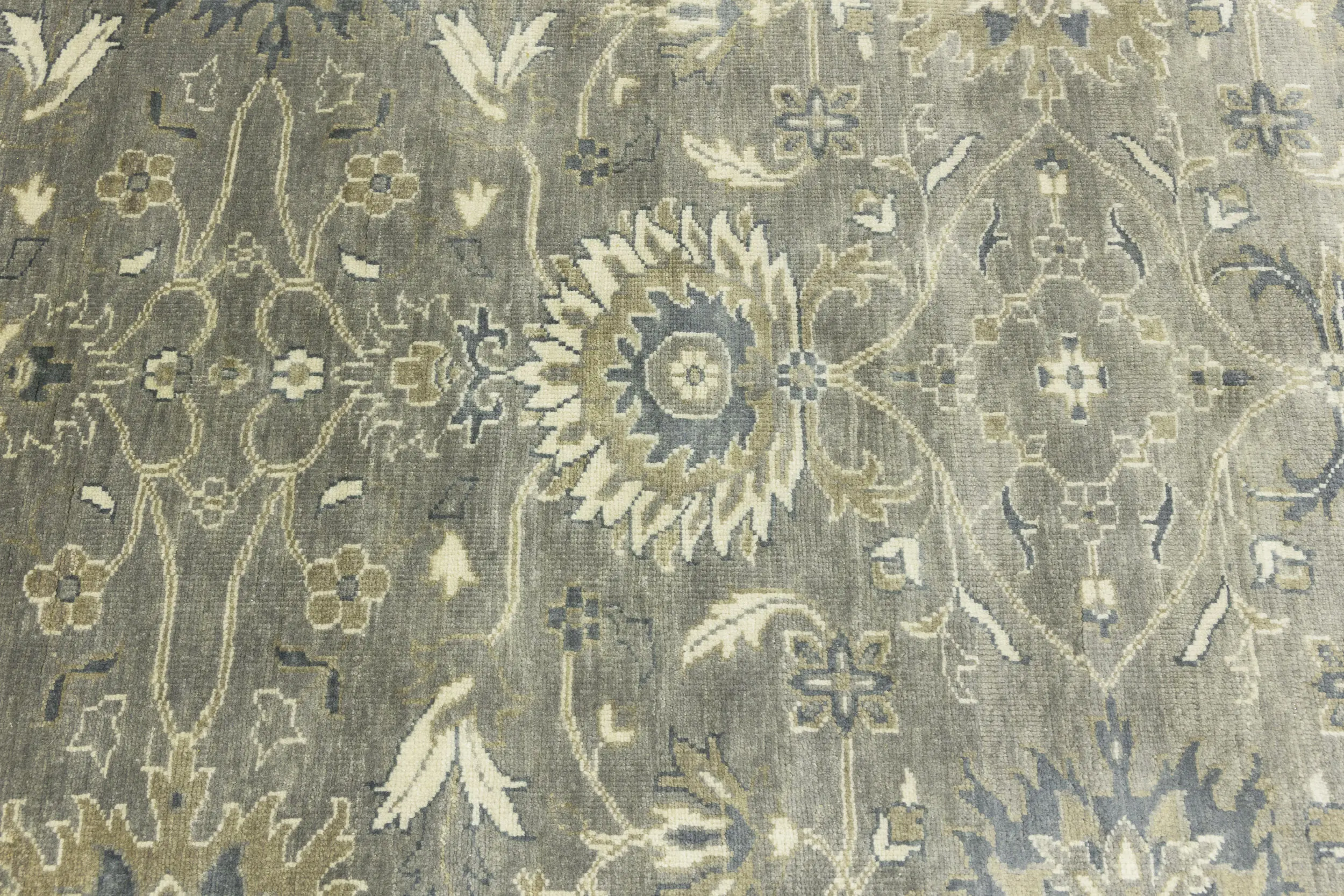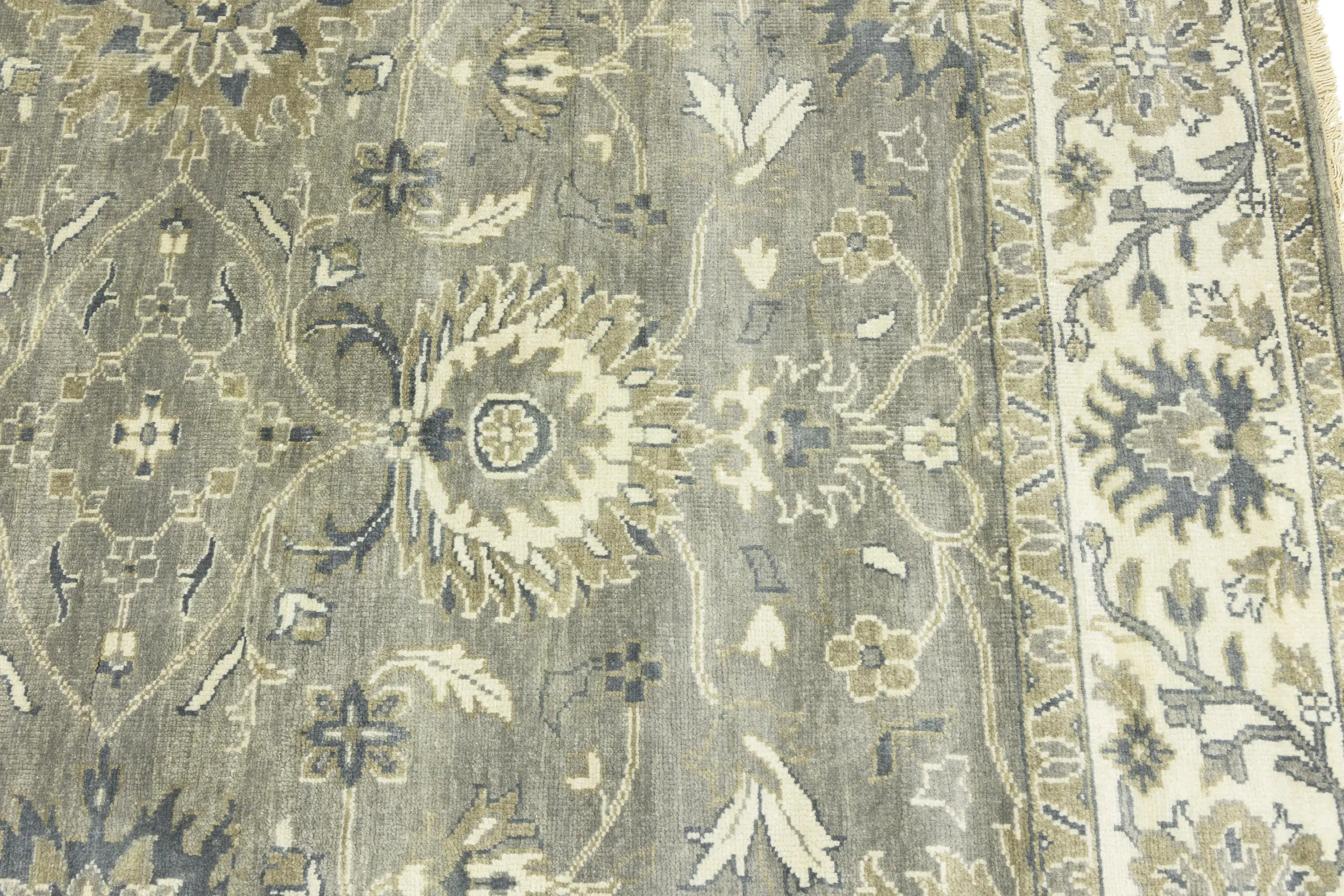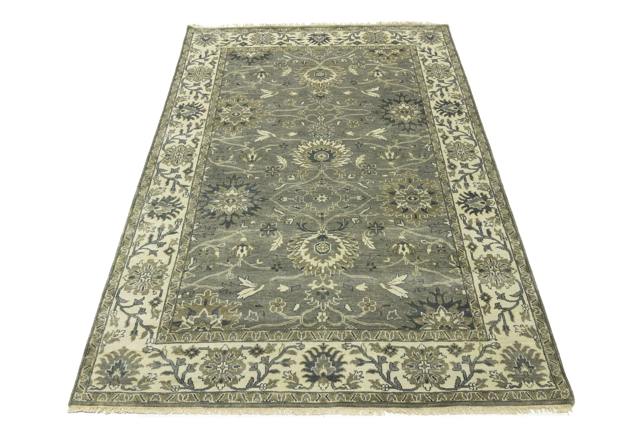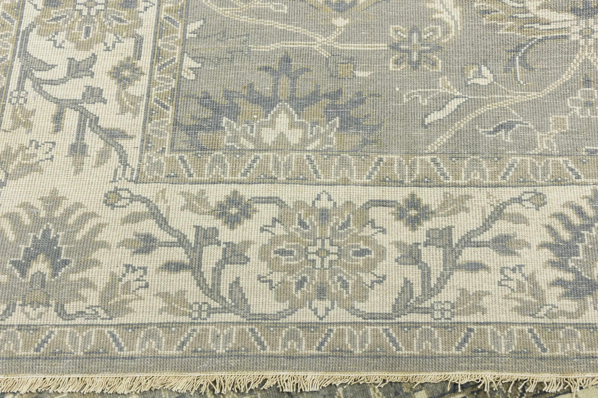 This original 6X9 Gray new Oriental rug was made by the hands of talented weavers influenced by a variety of gorgeous symmetrical artistic designs, to recreate the aged look of the unique piece with a richness of color and very balanced background field. What set this vintage style Oriental area rug from the others are the material and dye used (wool pile and cotton foundation), knot count, antique designs, fantastic grades, and its regional historical connection: it has deep roots, from the story of the people who produced it to the meaning of the symbols and colors displayed across its canvas that have been praised for centuries. This Indian home décor carpet will be completely cozy and inviting that never will go out of style! Also, this Oriental rug would be among your most valuable treasures, it is a great investment that accrues value over time, and it will last a lifetime because was woven with high-quality, all-natural wool. Eco-friendly, opulent yet affordable; this rug will give you an extra pop of character to help define your home environment with sophistication and warmth that will capture the eyes and attention of your audience (homeowners, designers, decorators, family and friends).