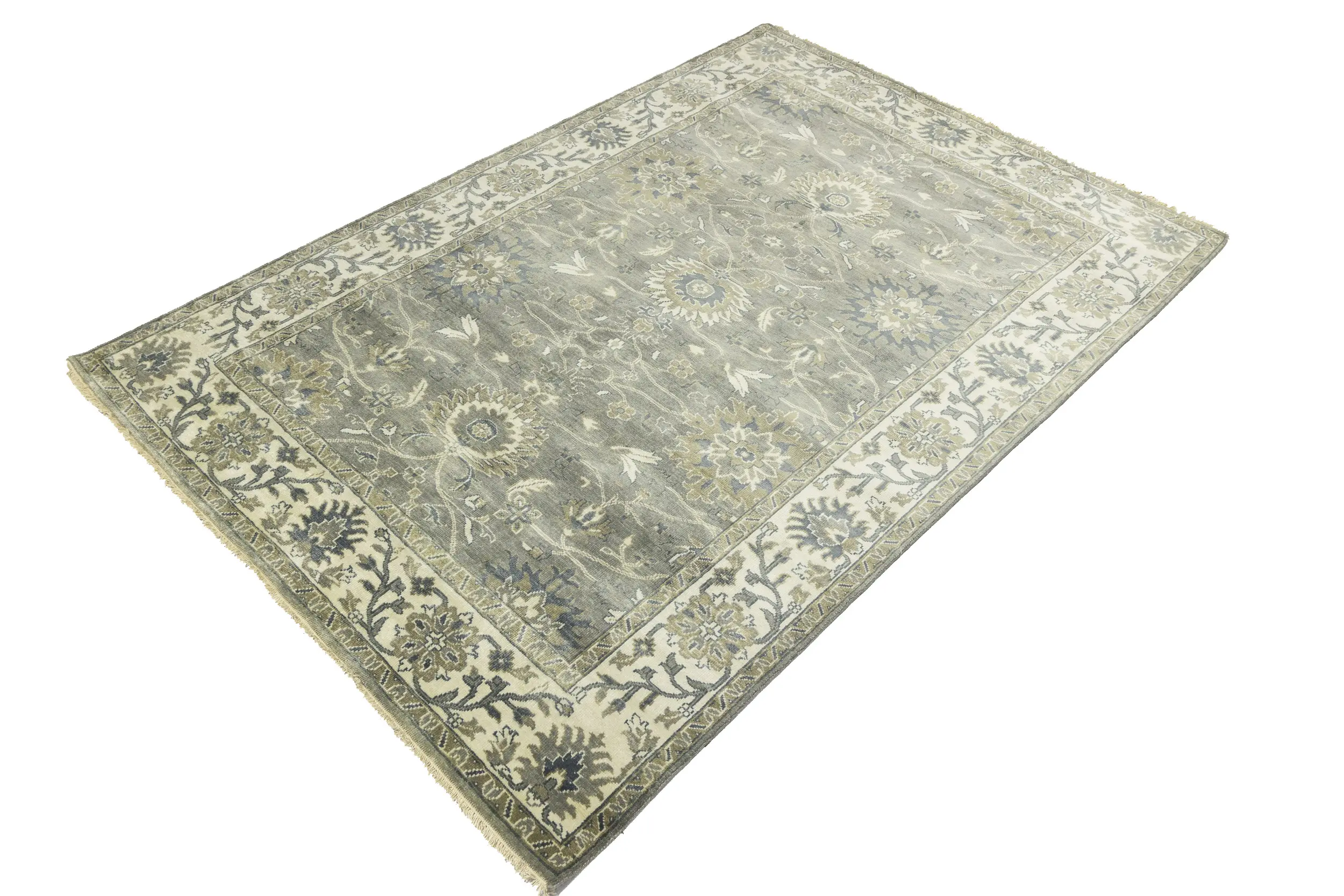 Handmade 6X9 Gray oriental rug made with vegetable dyes (fine wool pile and cotton foundation), superior knot count, and alluring ancient designs. This Oriental rug never will go out of style and would be among your most valuable treasures.