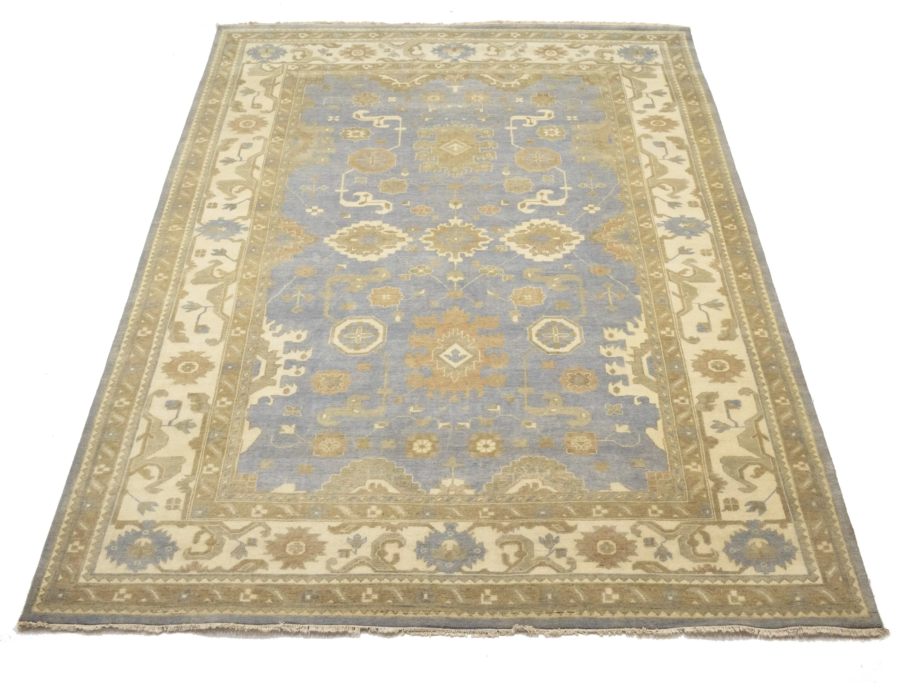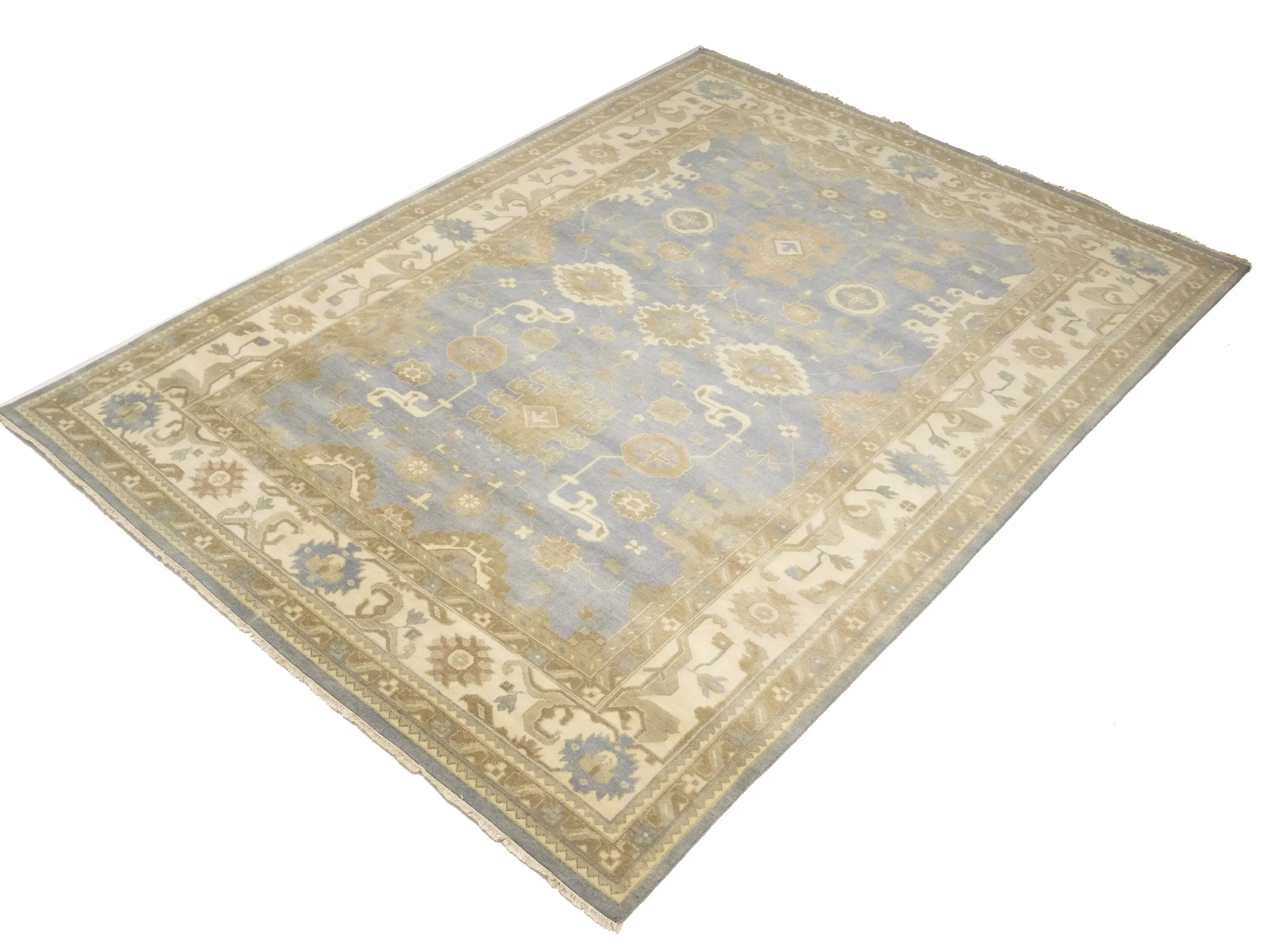 Gray Floral Traditional 10X14 Oushak Oriental Rug