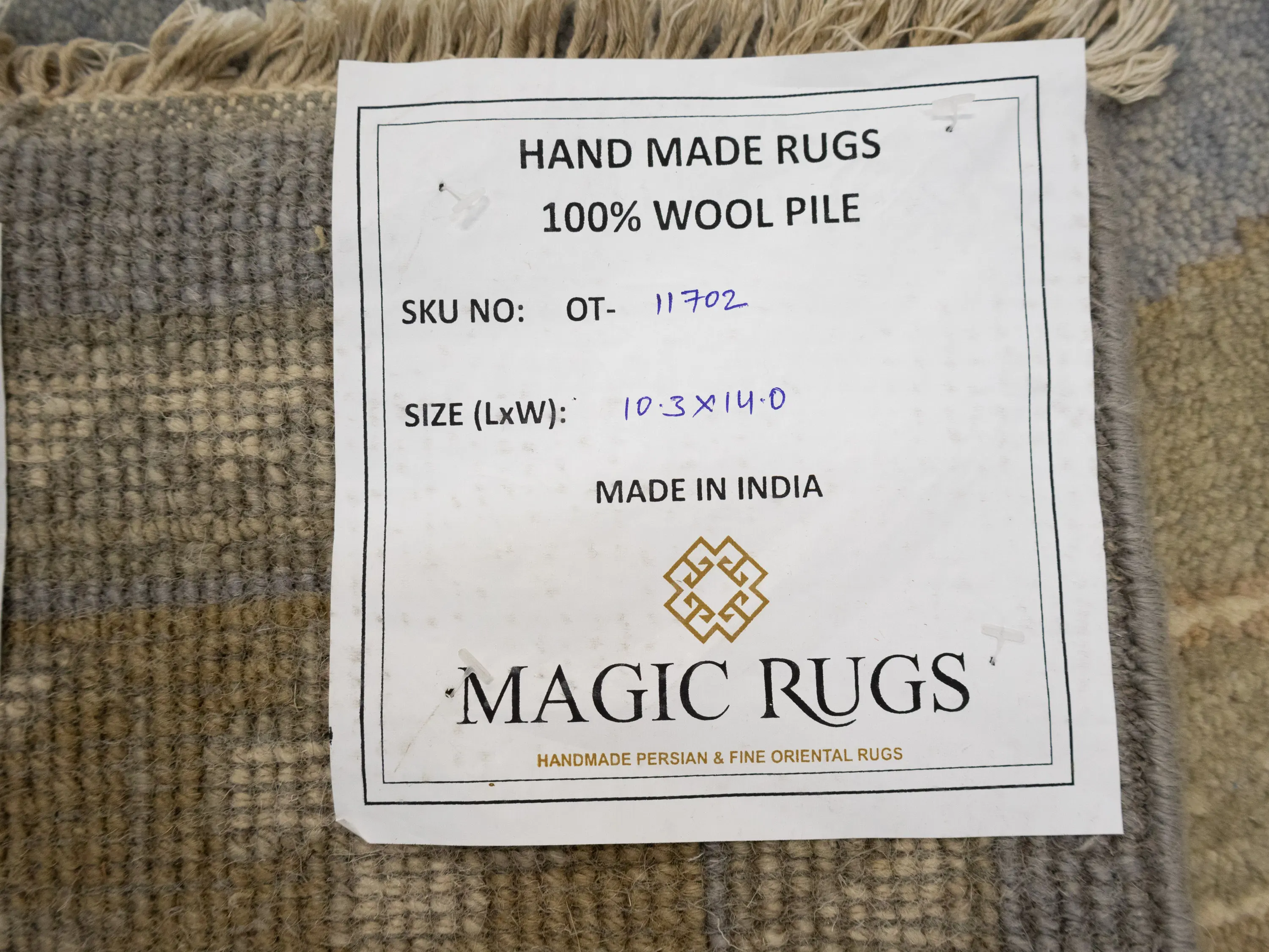 This genuine 10X14 gray new Oriental rug was made by the hands of gifted weavers inspired by a variety of spectacular artistic designs, to recreate the aged look of the original piece with a richness of color and ornately patterned background field. What set this vintage style Oriental area rug from the others are the material and dye used (wool pile and cotton foundation), knot count, ancient designs, fantastic grades, and its regional historical connection: it has deep roots, from the story of the people who produced it to the meaning of the symbols and colors displayed across its canvas that have been praised for centuries. This Indian home décor carpet will be completely cozy and inviting that never will go out of style! Also, this Oriental rug would be among your most valuable treasures, it is a great investment that accrues value over time, and it will last for generations because was woven with high-quality, all-natural wool. Environmentally friendly, opulent yet affordable; this rug will give you a thorough amount of character to help define your living space with elegance and warmth that will capture the eyes and attention of your audience (homeowners, designers, decorators, family and friends).