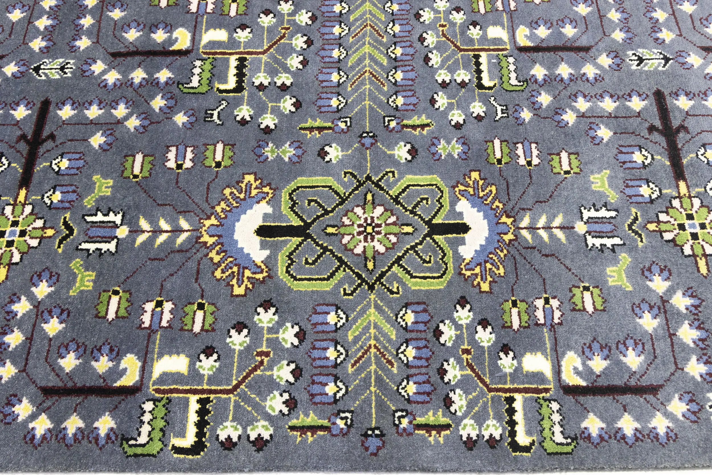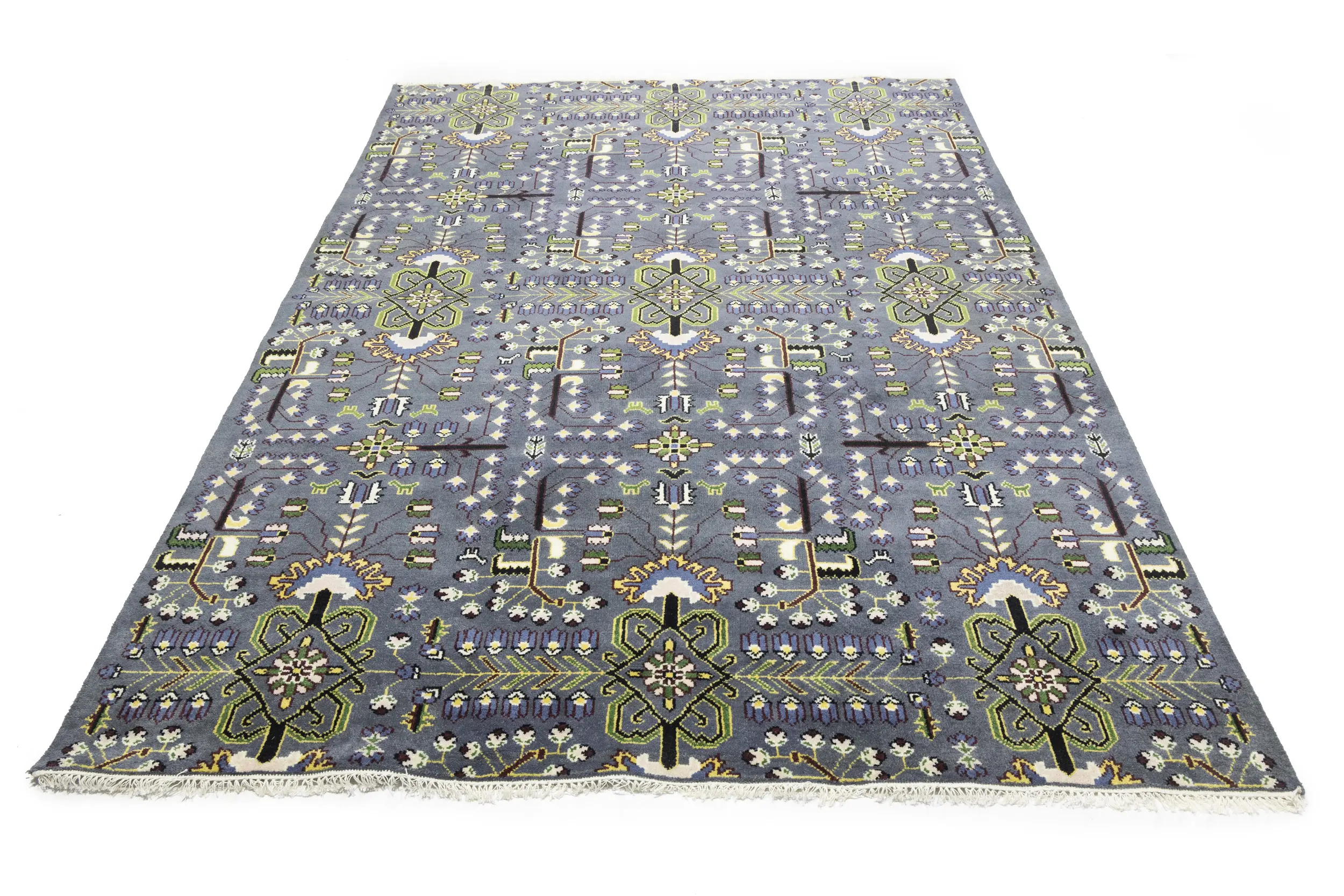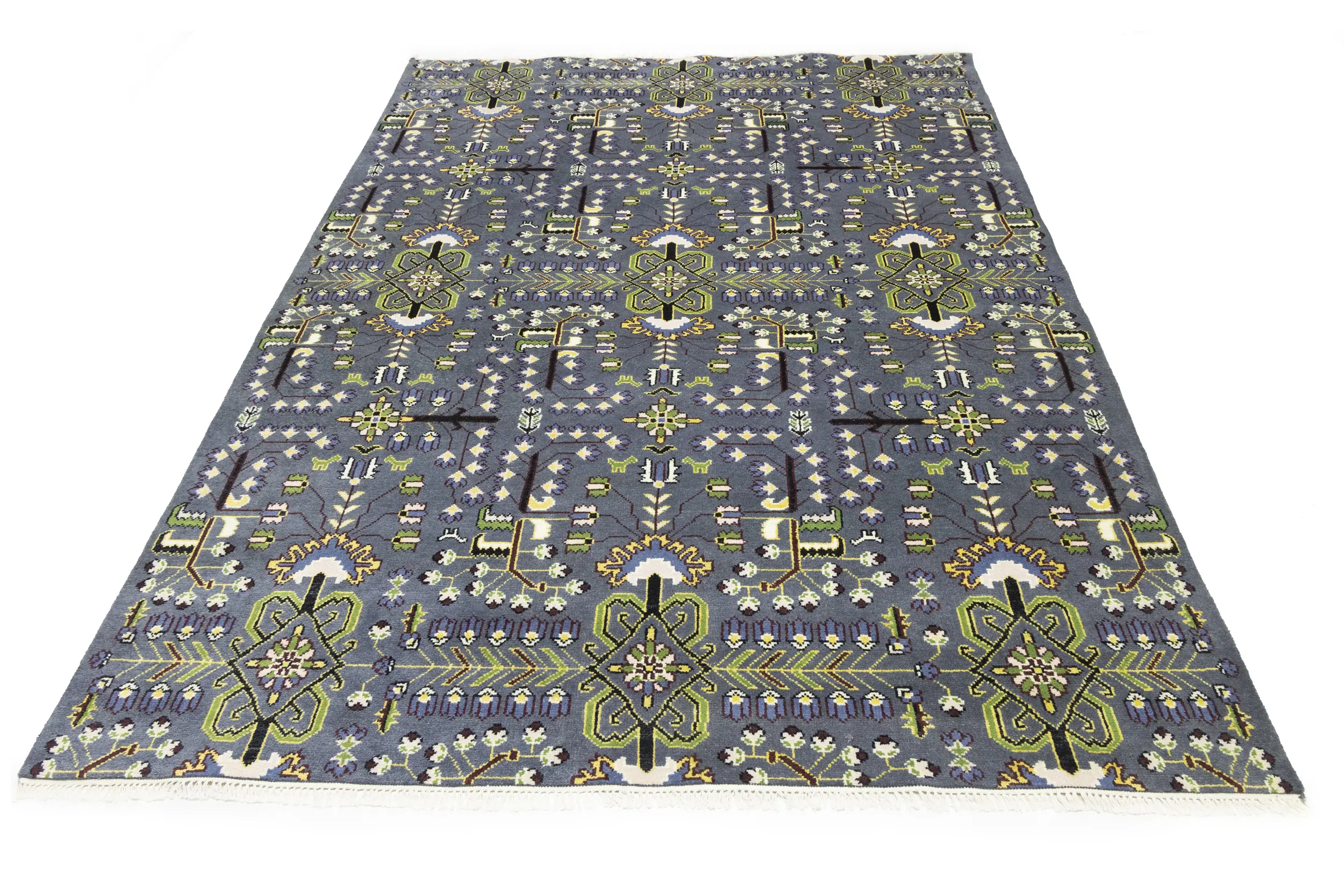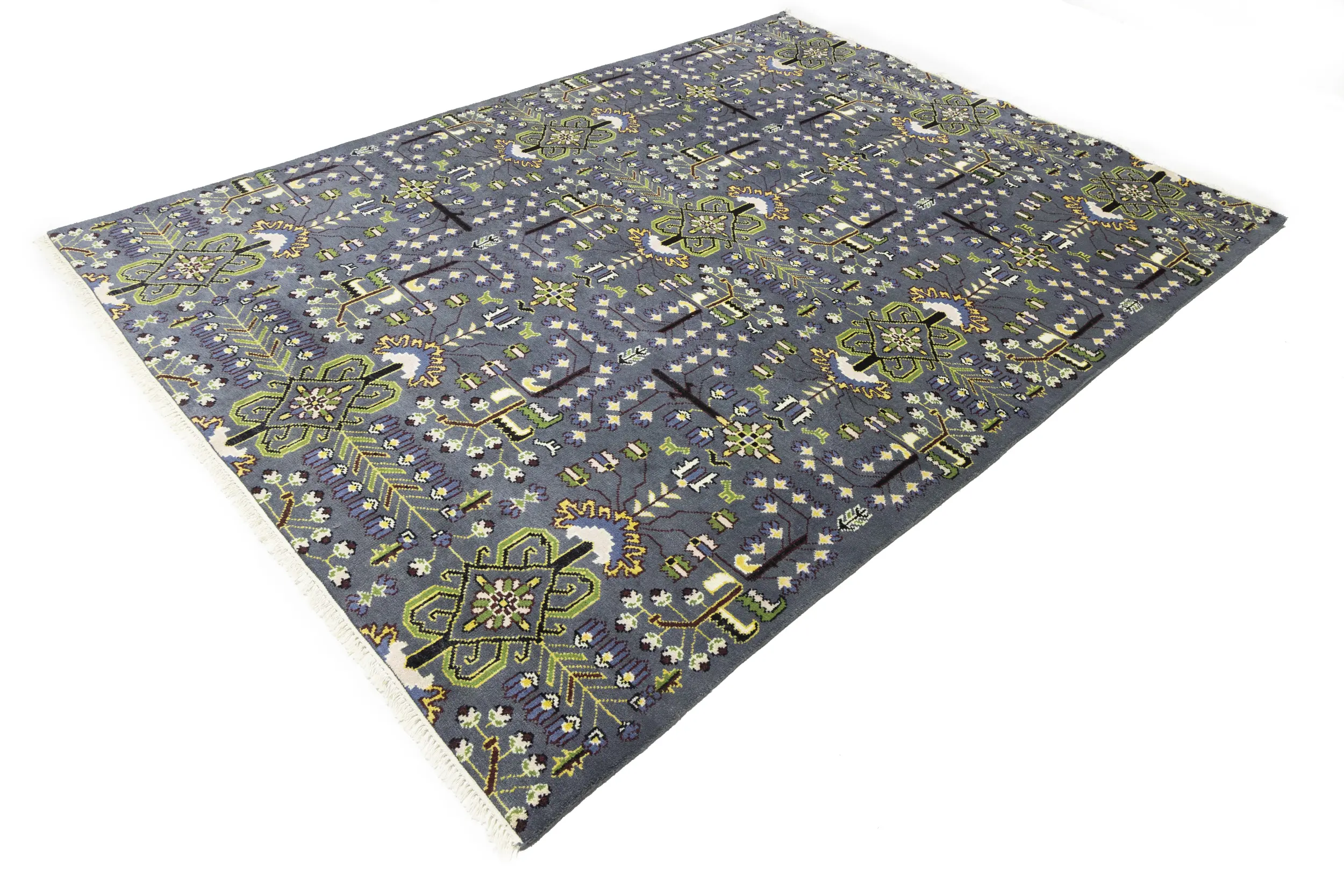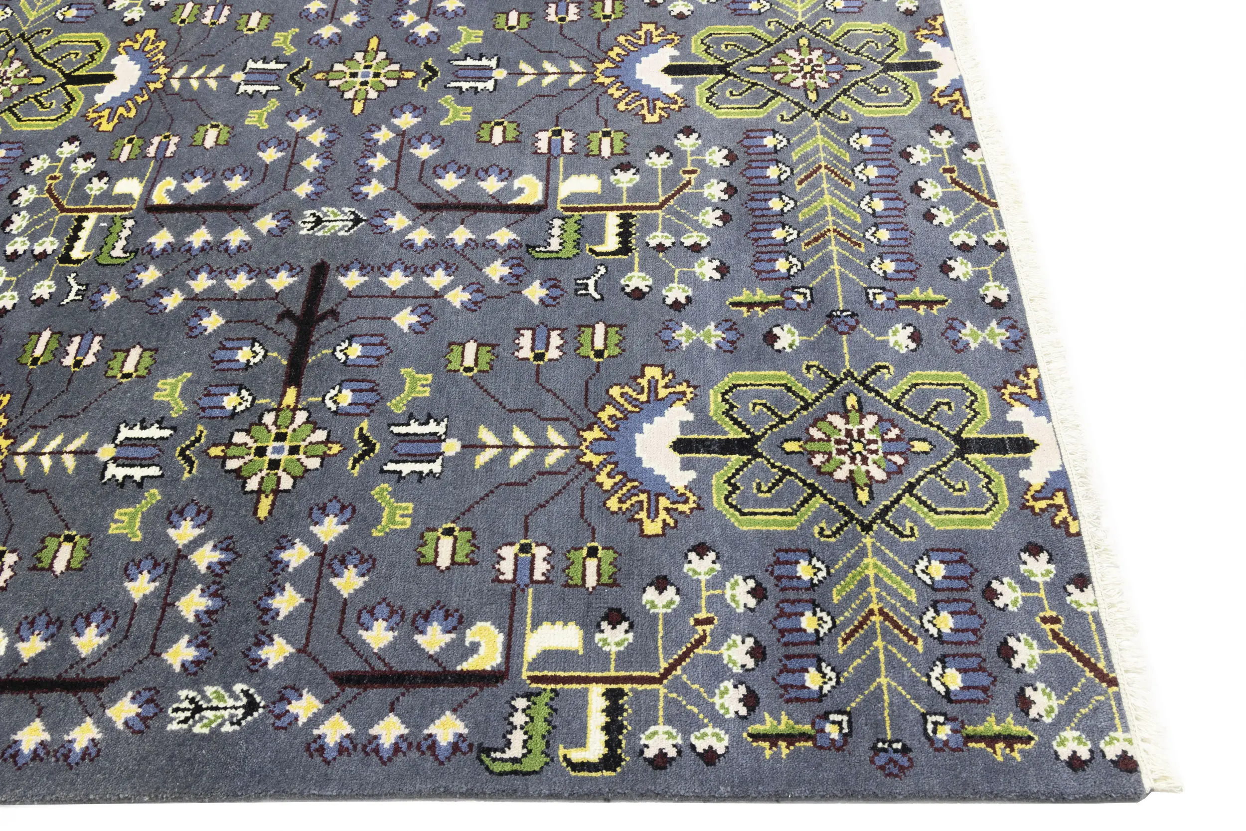 Handmade 9X12 gray oriental rug made with vegetable dyes (fine wool pile and cotton foundation), superior knot count, and appealing ancient designs. This Oriental rug never will go out of style and would be among your most valuable treasures.