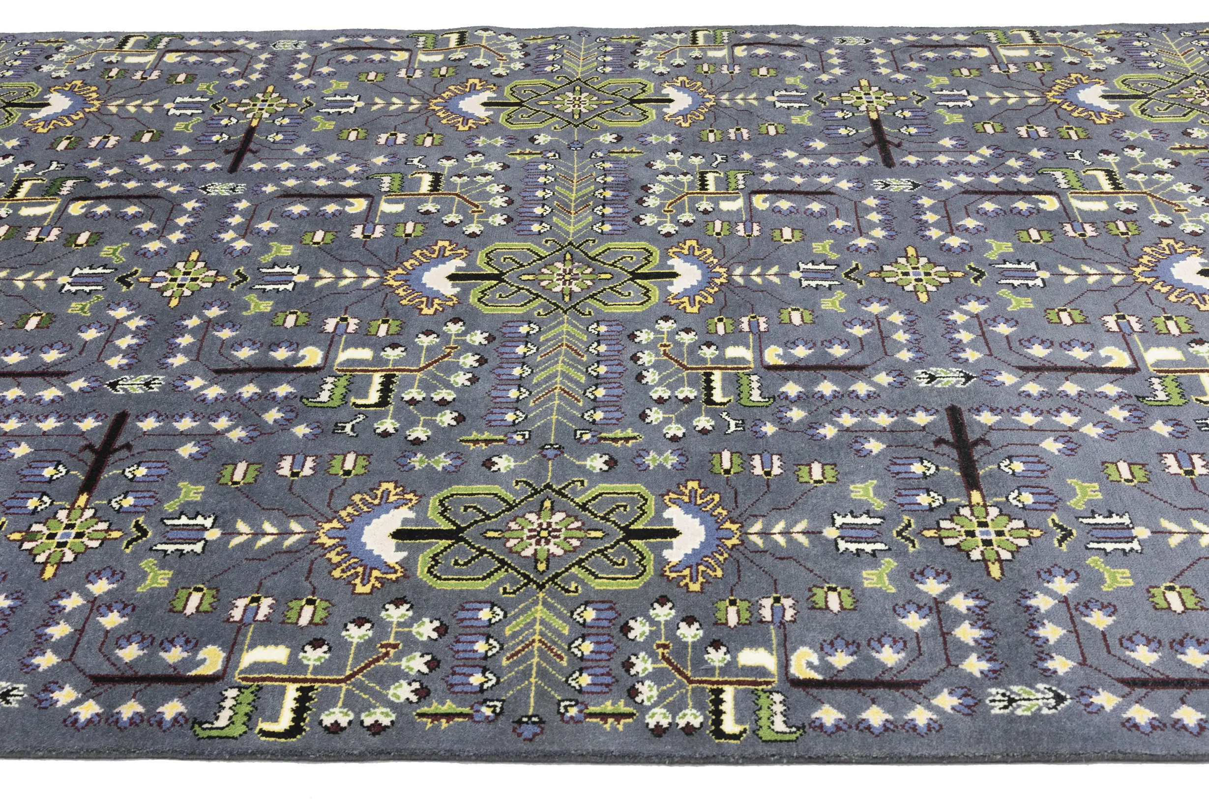 This genuine 9X12 gray new Oriental rug was made by the hands of gifted weavers inspired by a variety of spectacular artistic designs, to recreate the aged look of the original piece with a richness of color and ornately patterned background field. What set this vintage style Oriental area rug from the others are the material and dye used (wool pile and cotton foundation), knot count, ancient designs, fantastic grades, and its regional historical connection: it has deep roots, from the story of the people who produced it to the meaning of the symbols and colors displayed across its canvas that have been praised for centuries. This Indian home décor carpet will be completely cozy and inviting that never will go out of style! Also, this Oriental rug would be among your most valuable treasures, it is a great investment that accrues value over time, and it will last for generations because was woven with high-quality, all-natural wool. Environmentally friendly, opulent yet affordable; this rug will give you a thorough amount of character to help define your living space with elegance and warmth that will capture the eyes and attention of your audience (homeowners, designers, decorators, family and friends).
