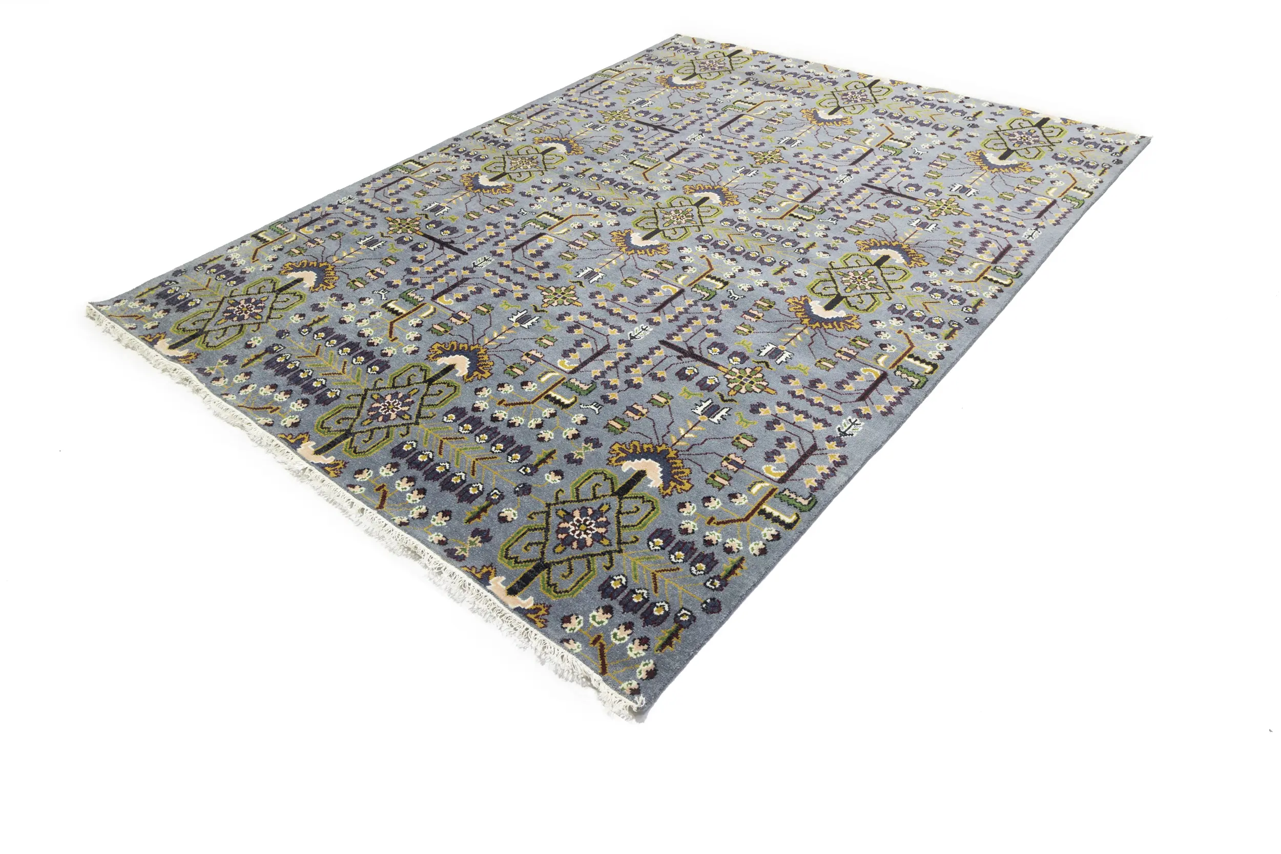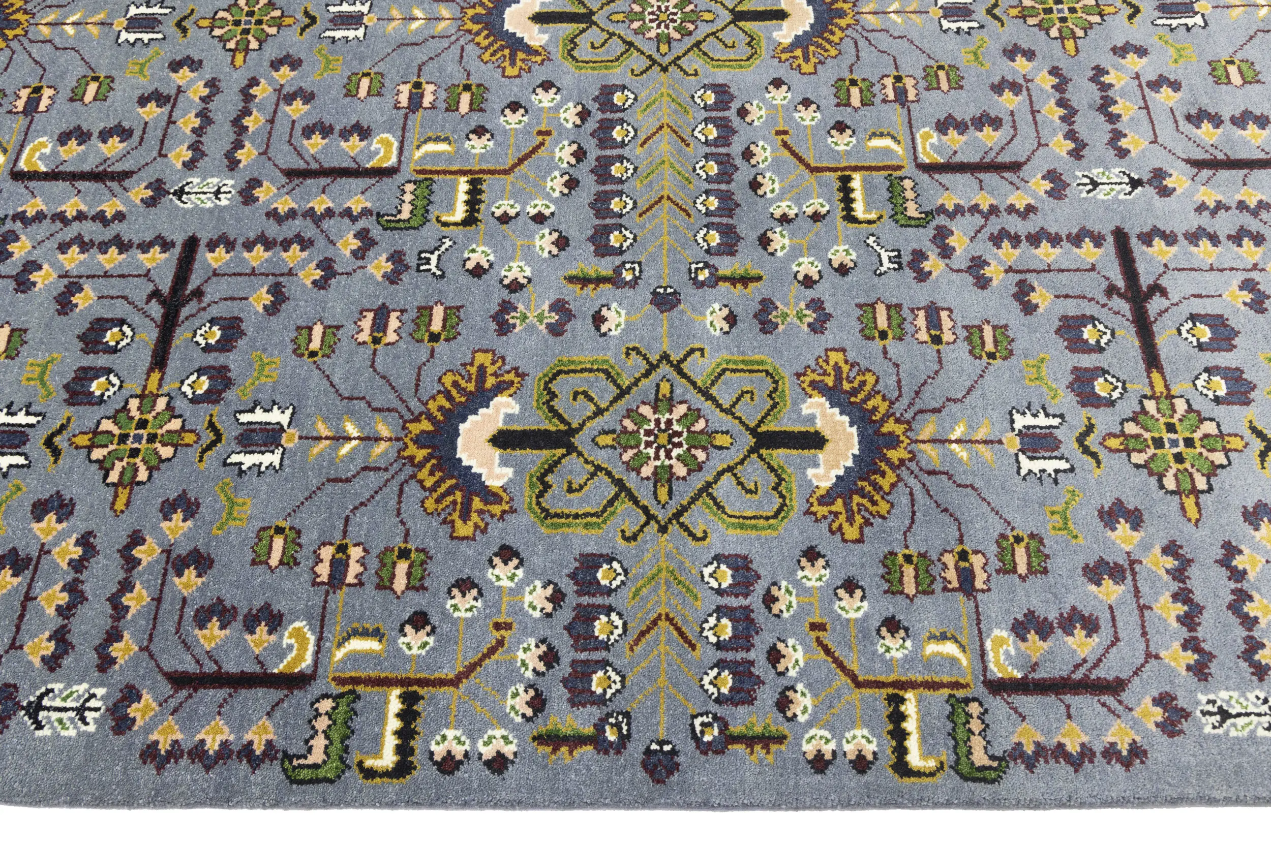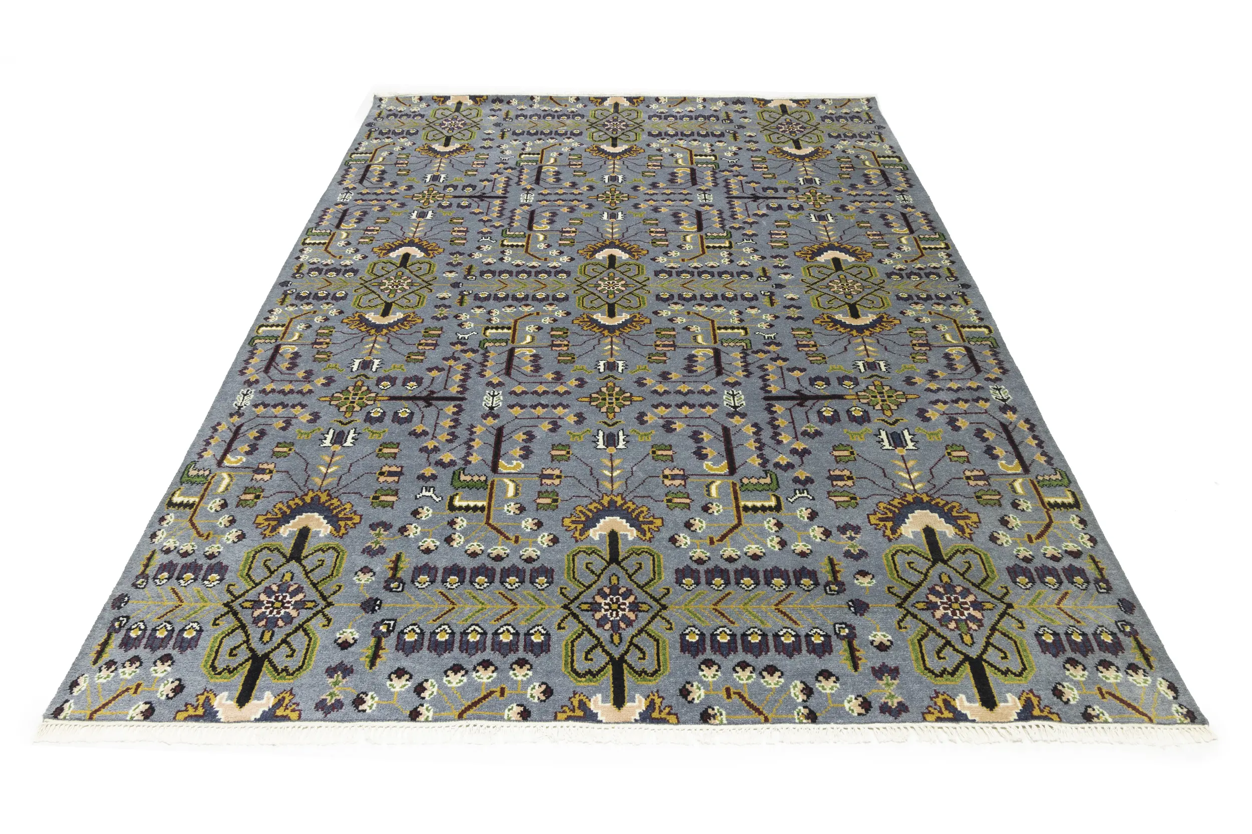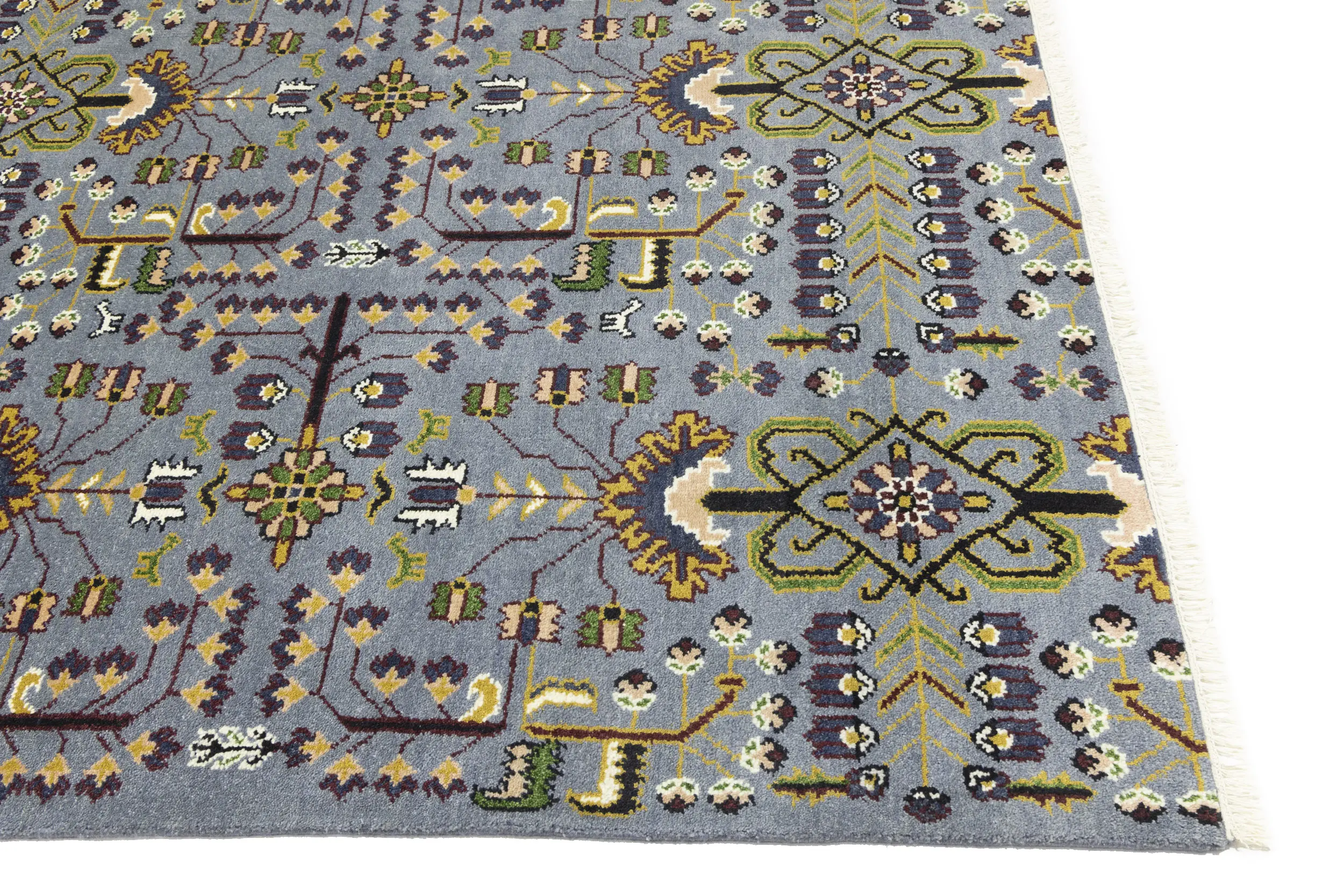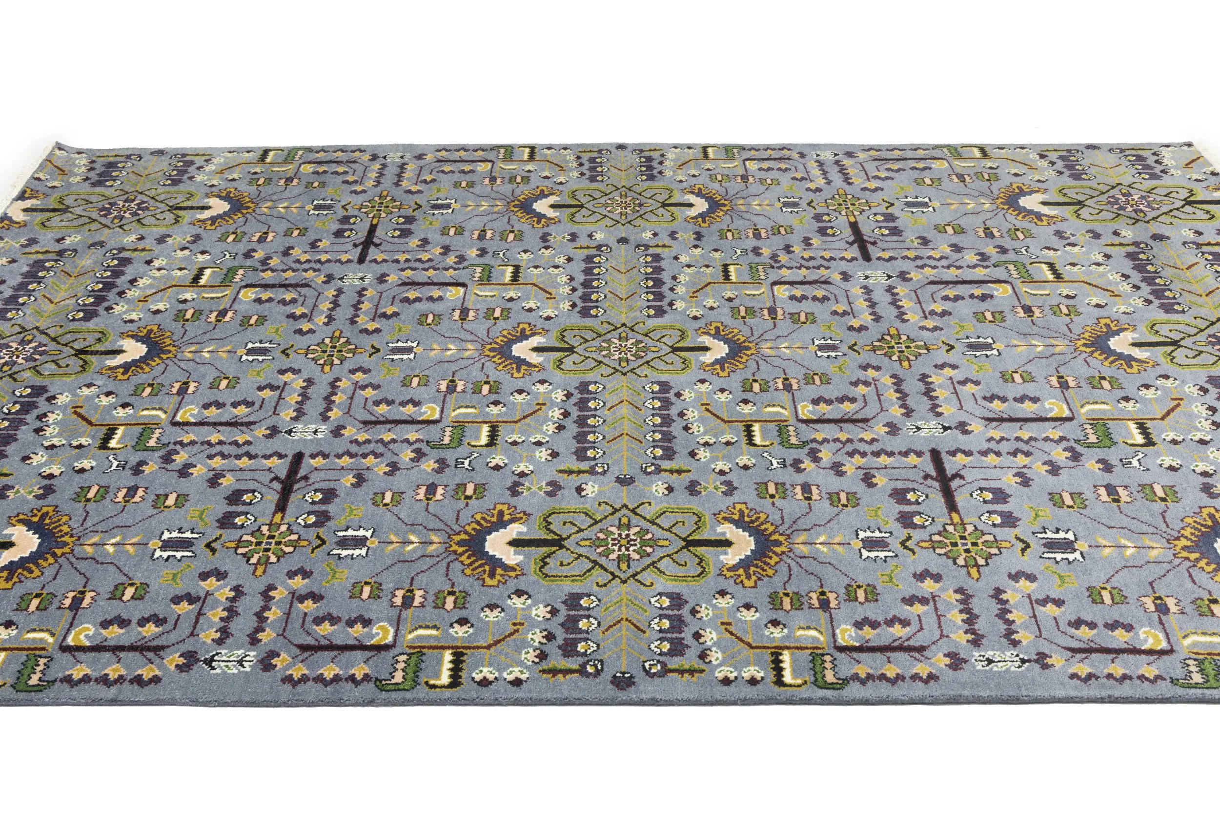 Handmade 9X12 gray oriental rug made with vegetable dyes (fine wool pile and cotton foundation), superior knot count, and appealing ancient designs. This Oriental rug never will go out of style and would be among your most valuable treasures.