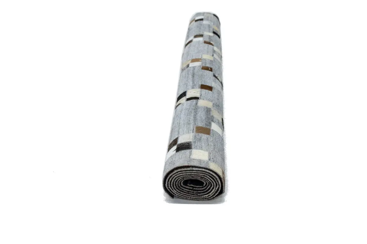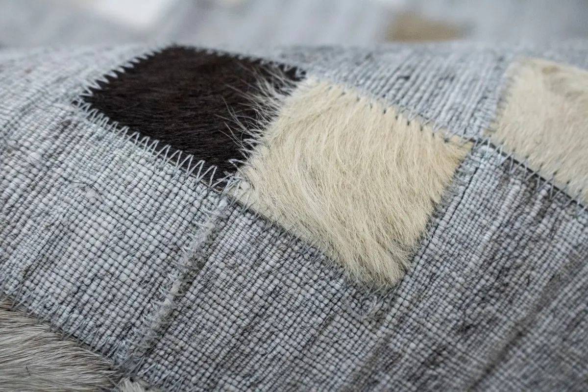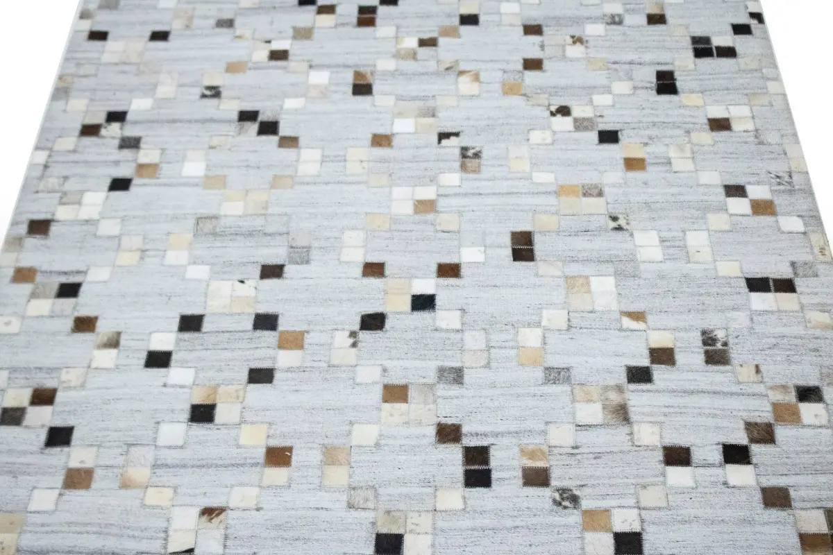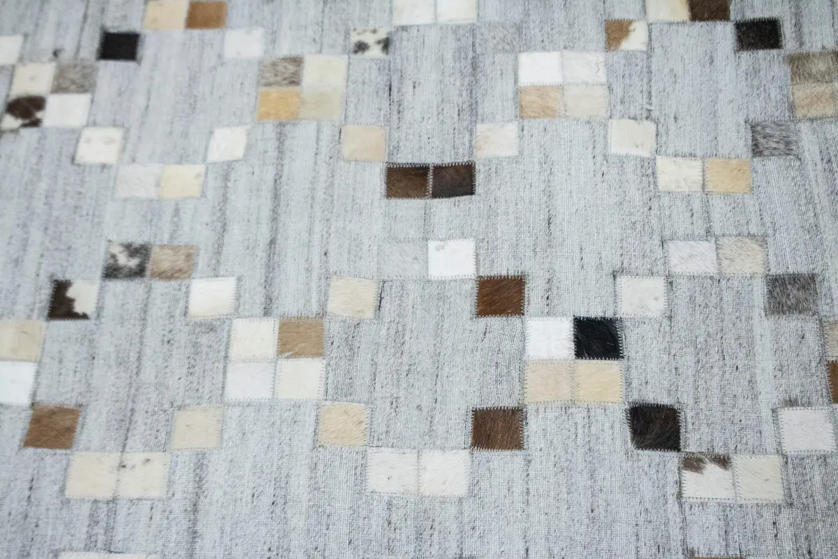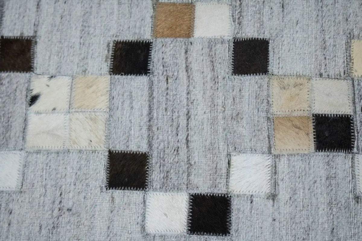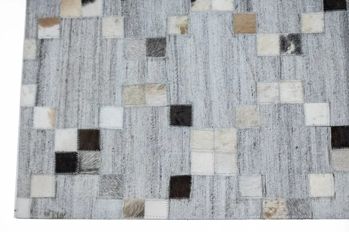 Gray Geometric 4X6 Cowhide Patchwork Modern Rug