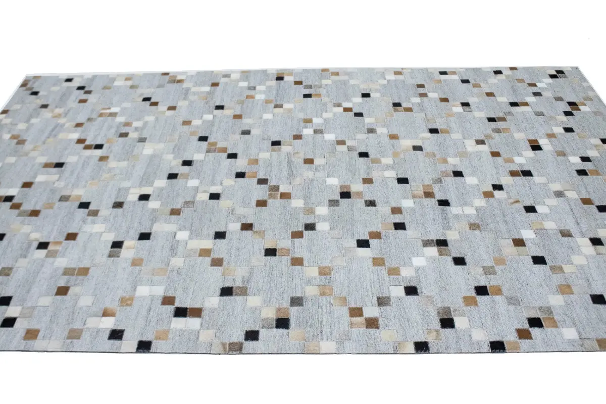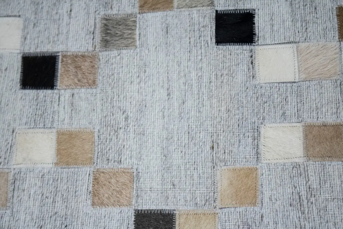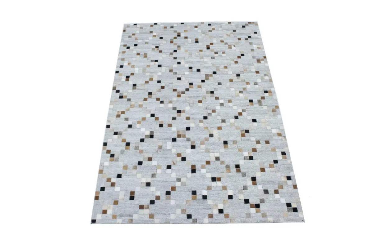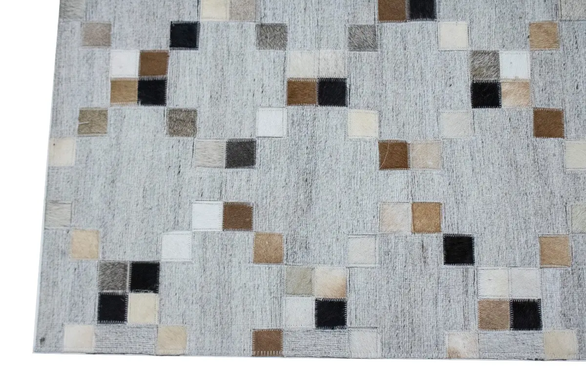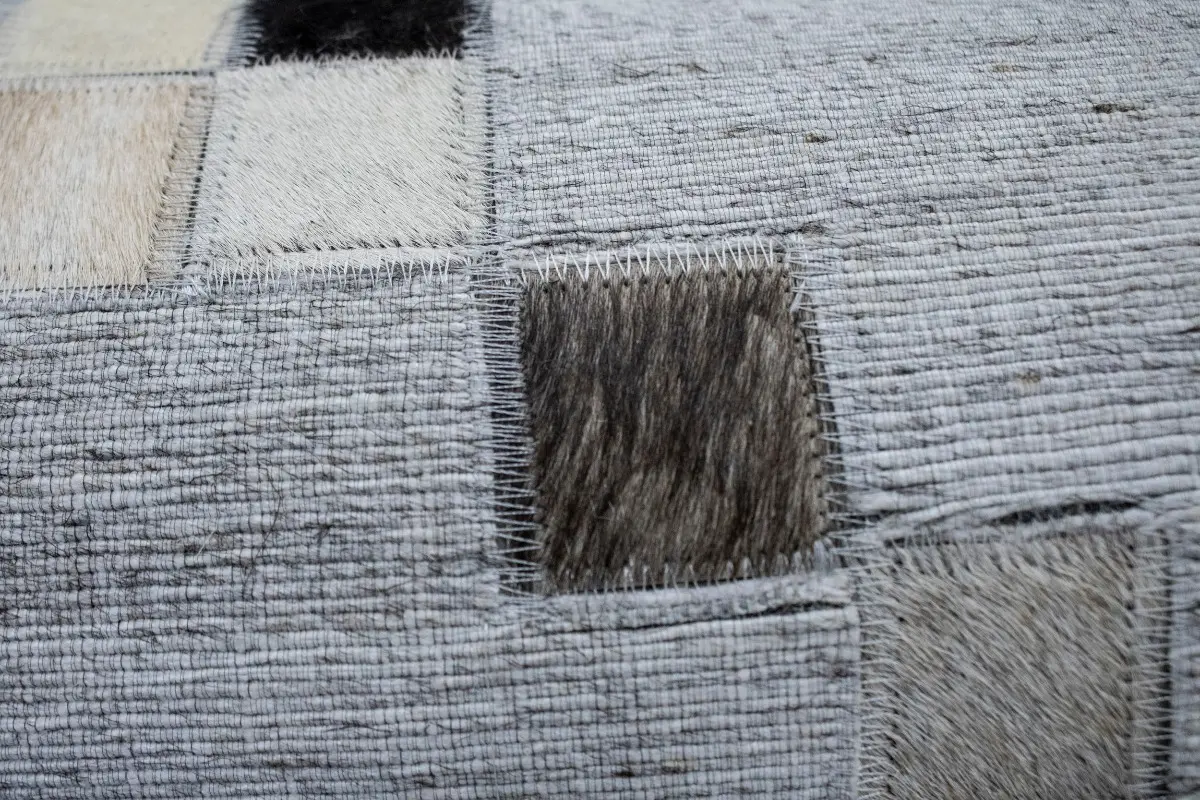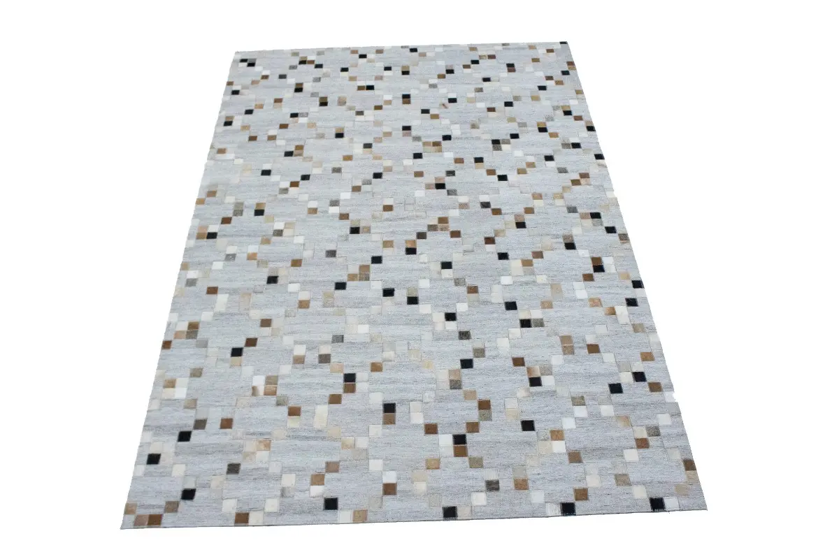 Gray Geometric Modern Cowhide 5X8 Patchwork Leather Rug Contemporary Carpet
