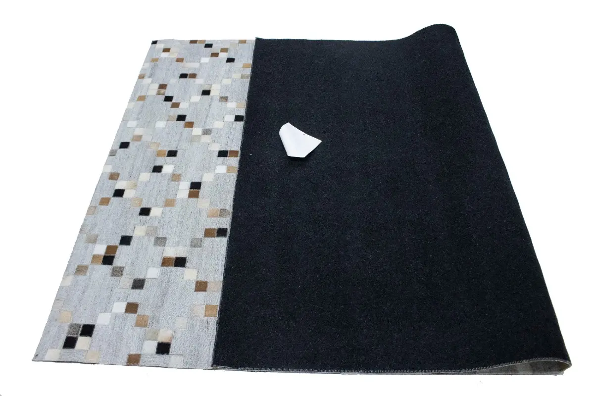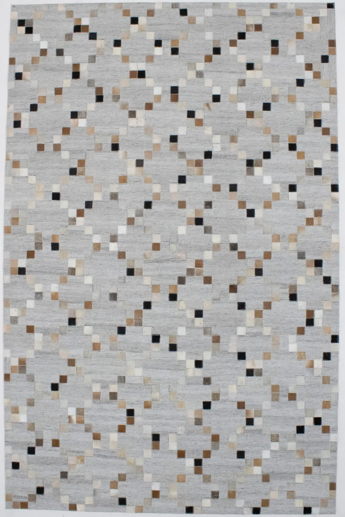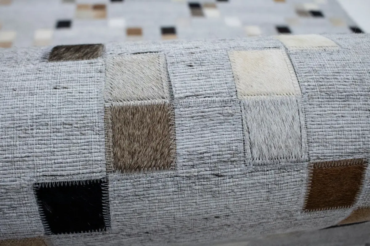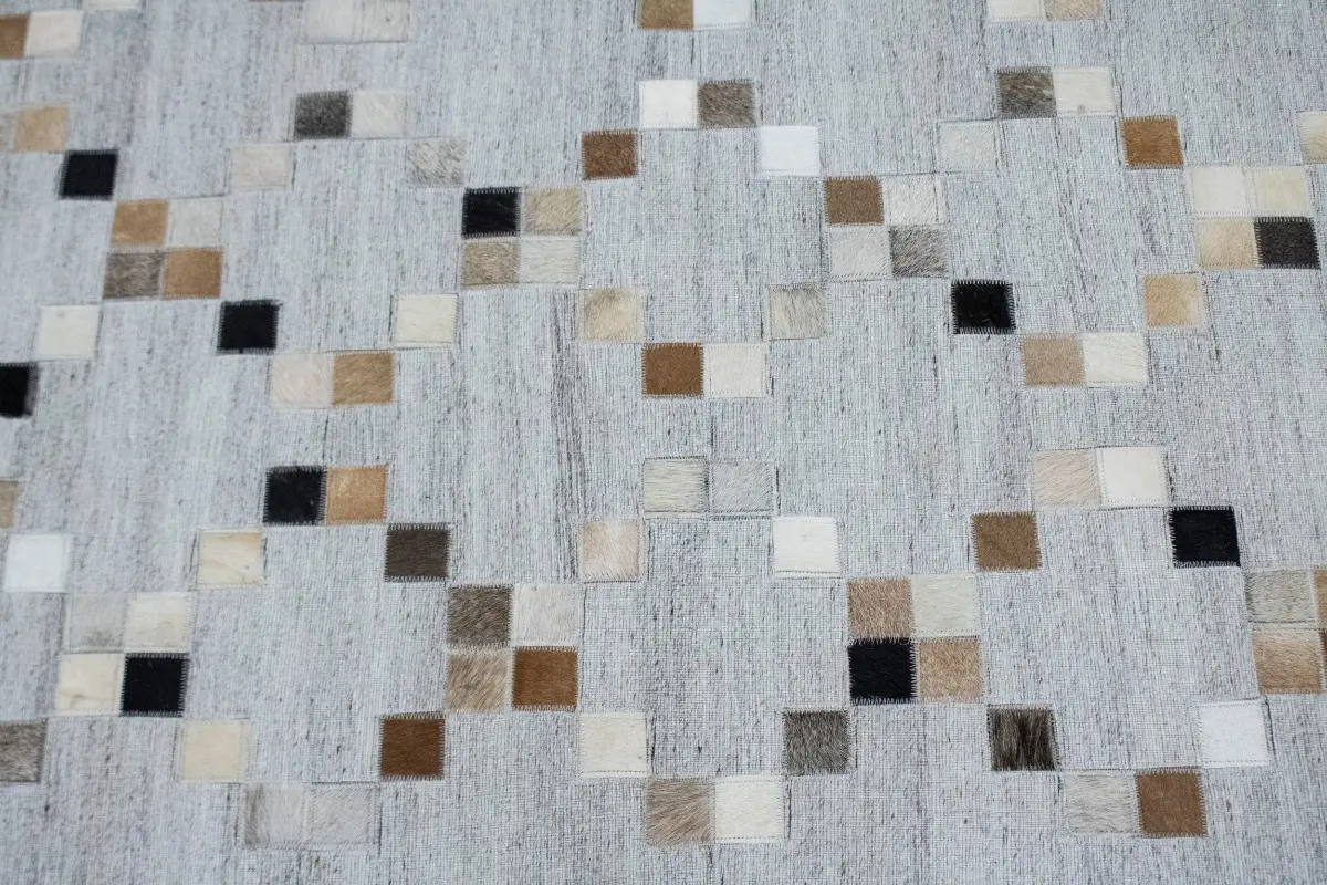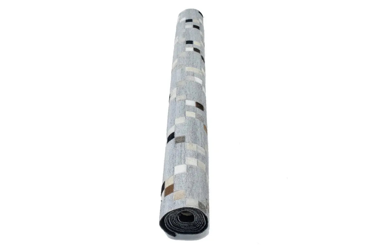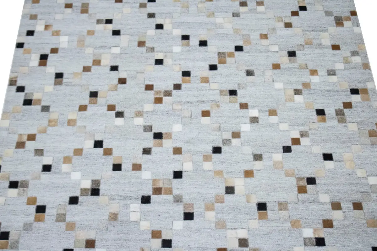 Gray Geometric Modern Cowhide 5X8 Patchwork Leather Rug Contemporary Carpet