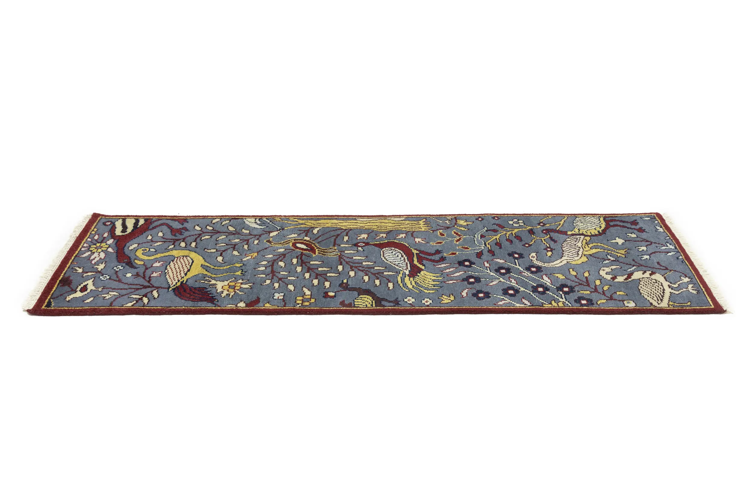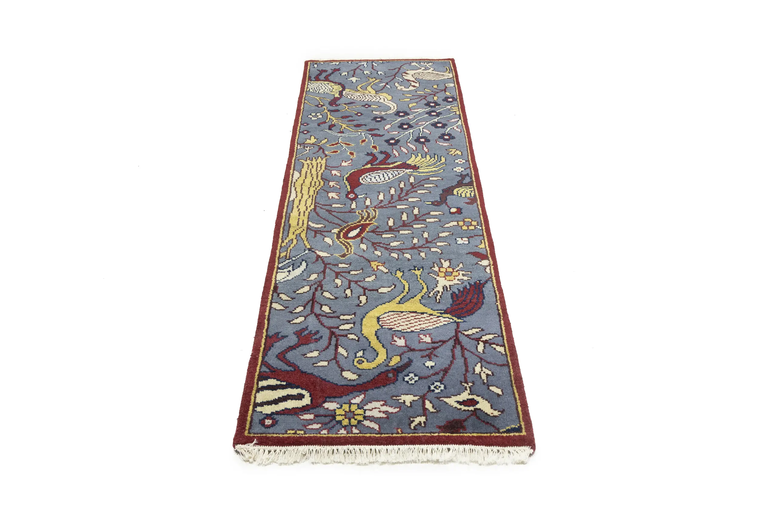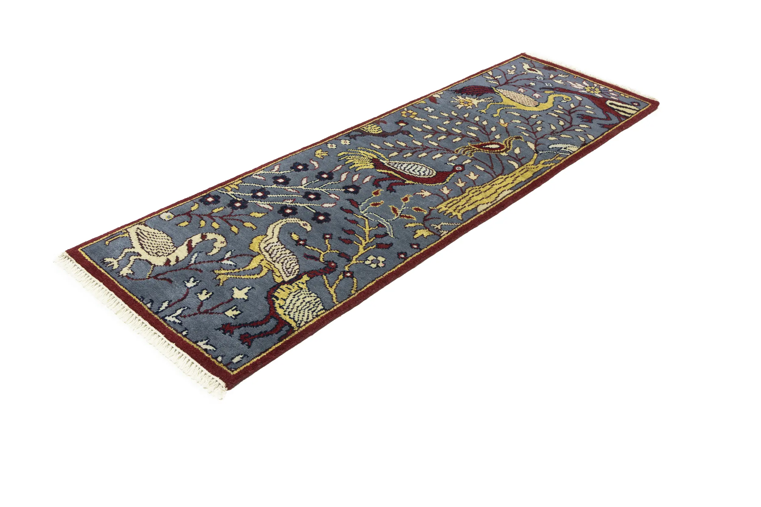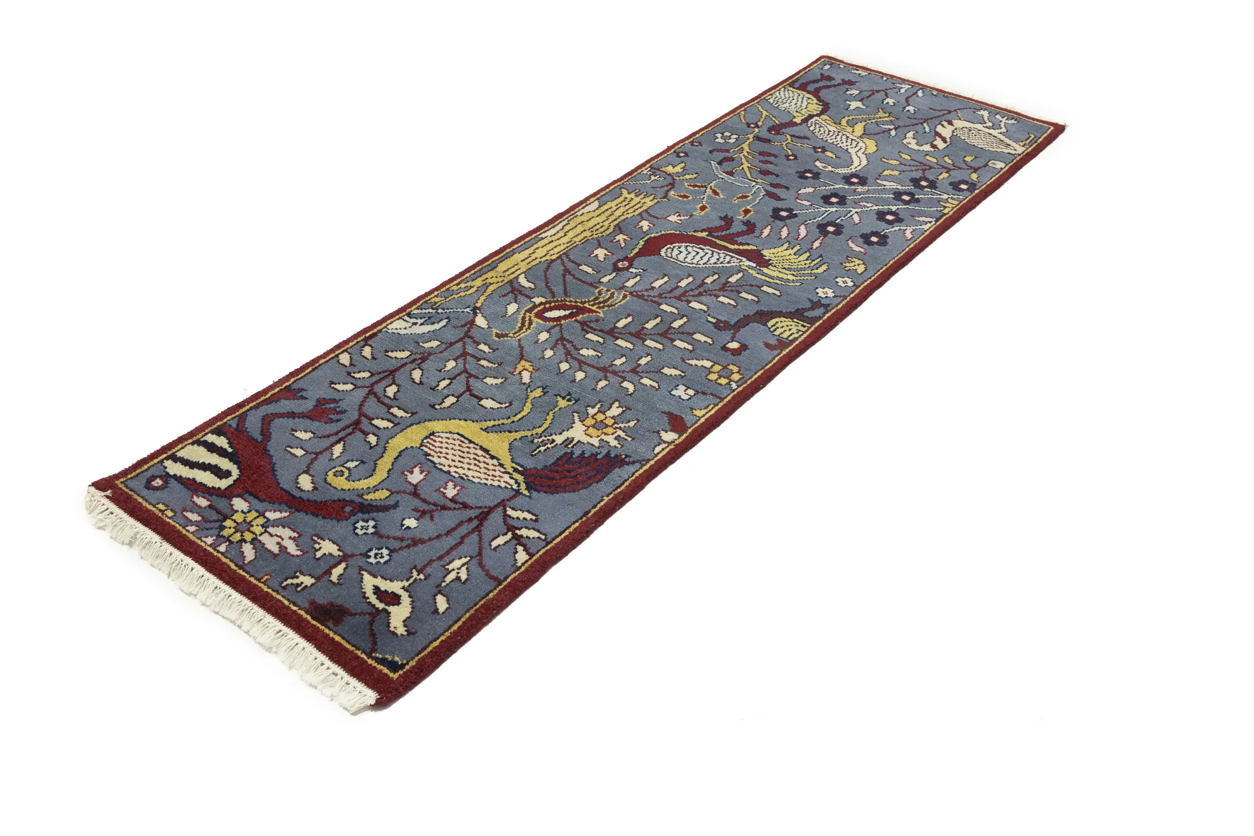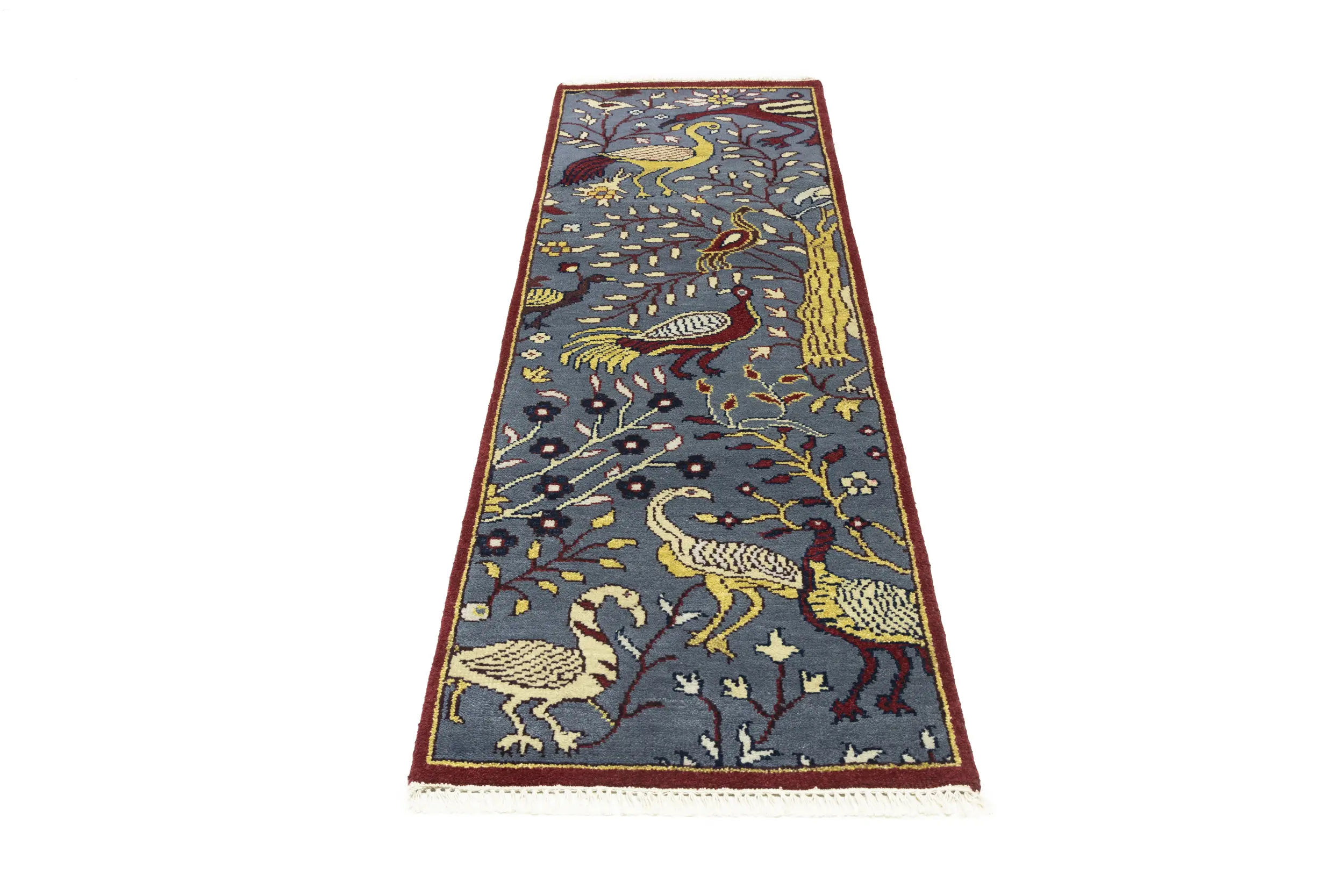 Handmade 2'5X8 gray Oriental runner made with vegetable dyes (fine wool pile and cotton foundation), superior knot count, and appealing ancient designs. This Oriental runner never will go out of style and would be among your most valuable treasures.