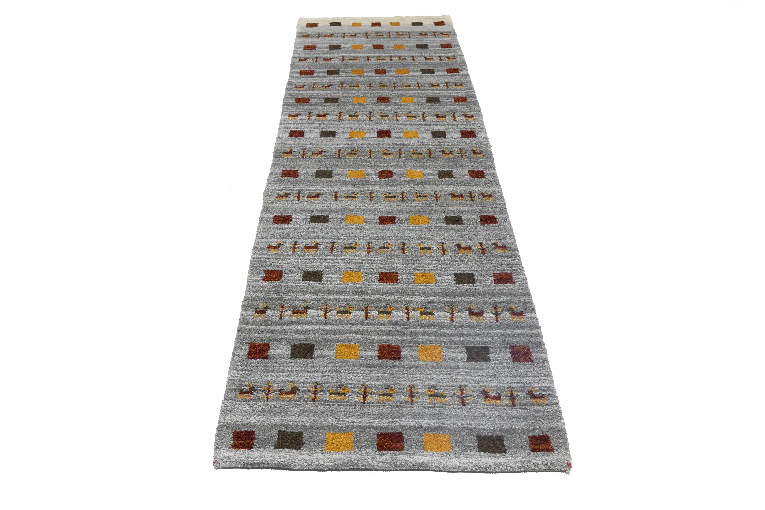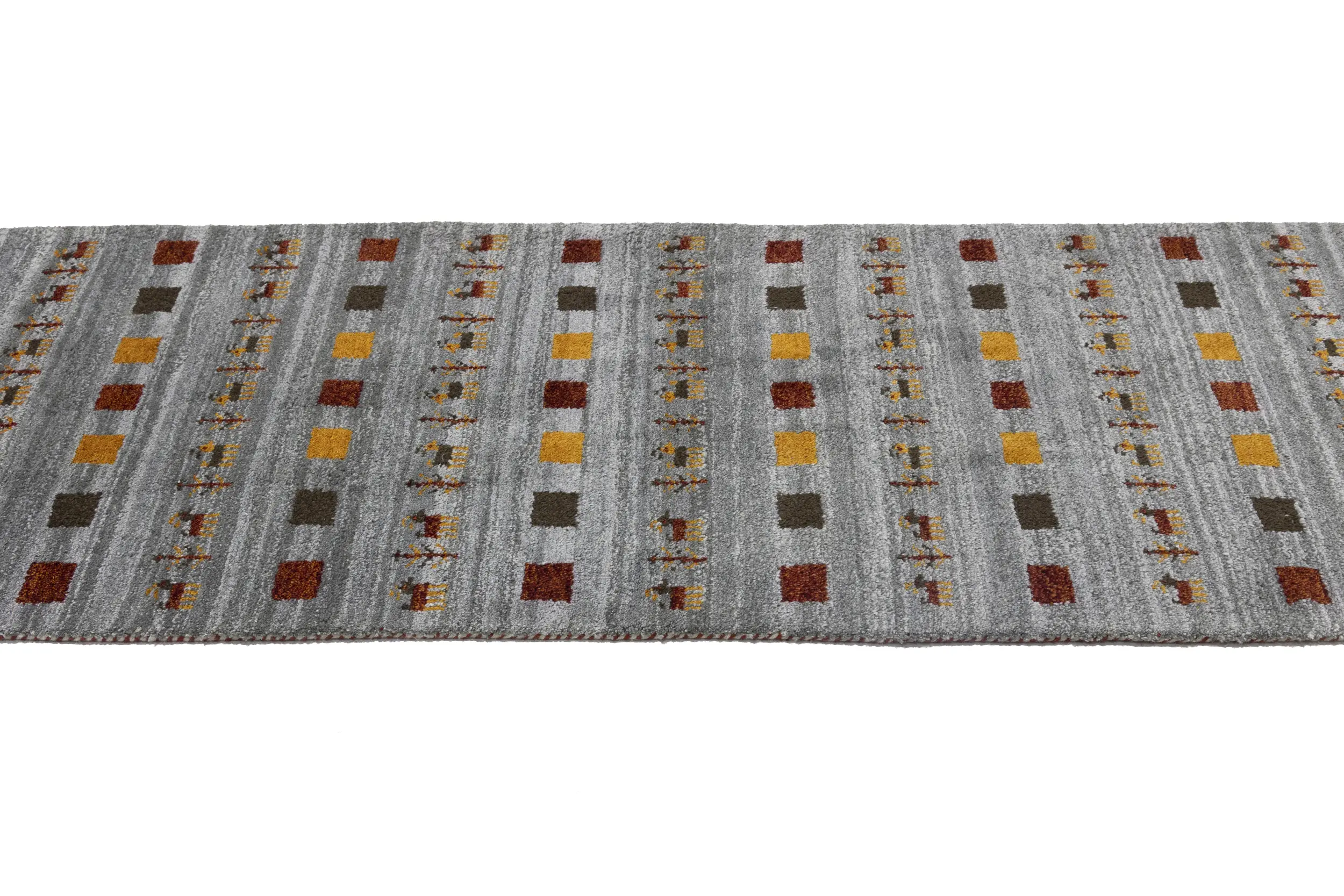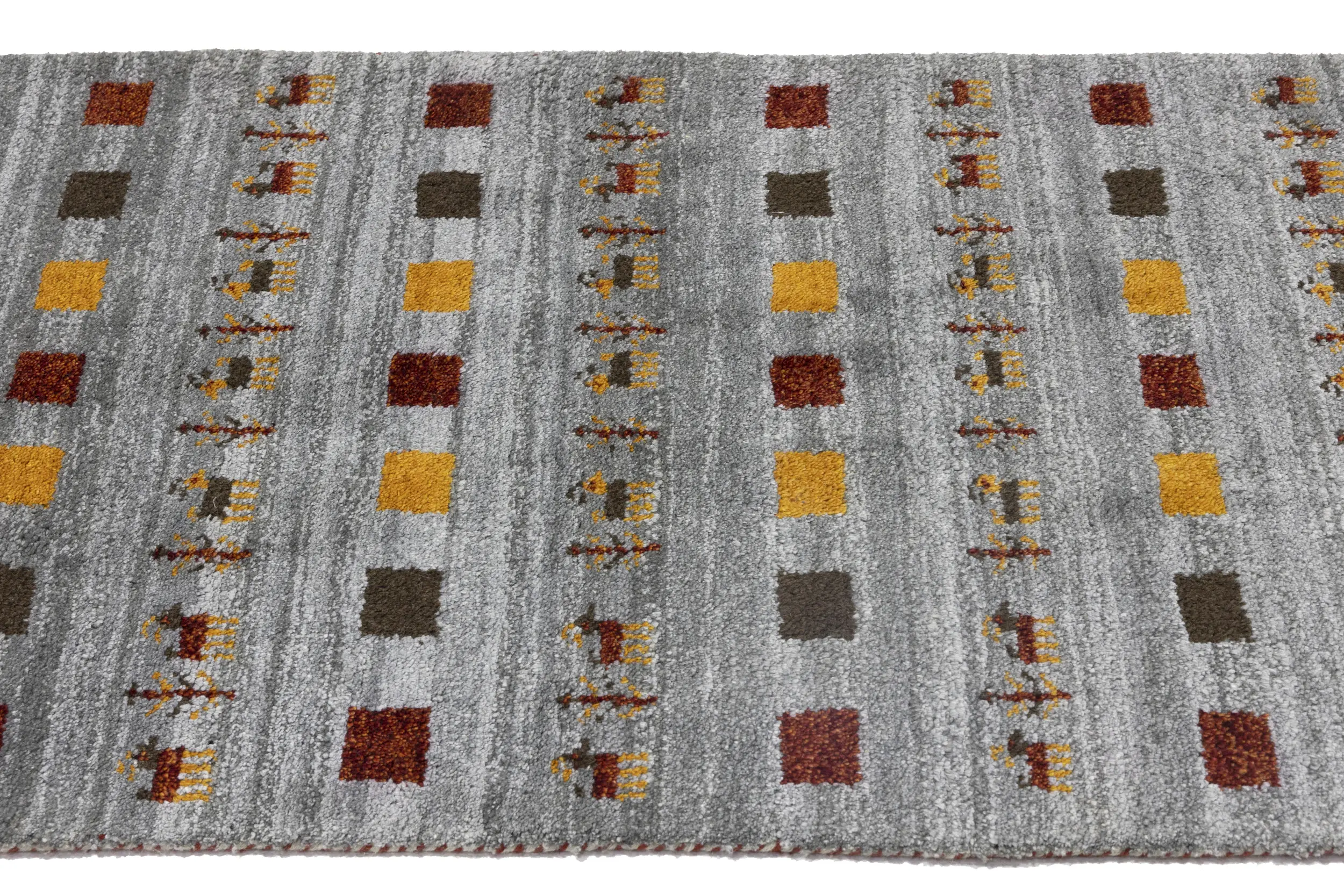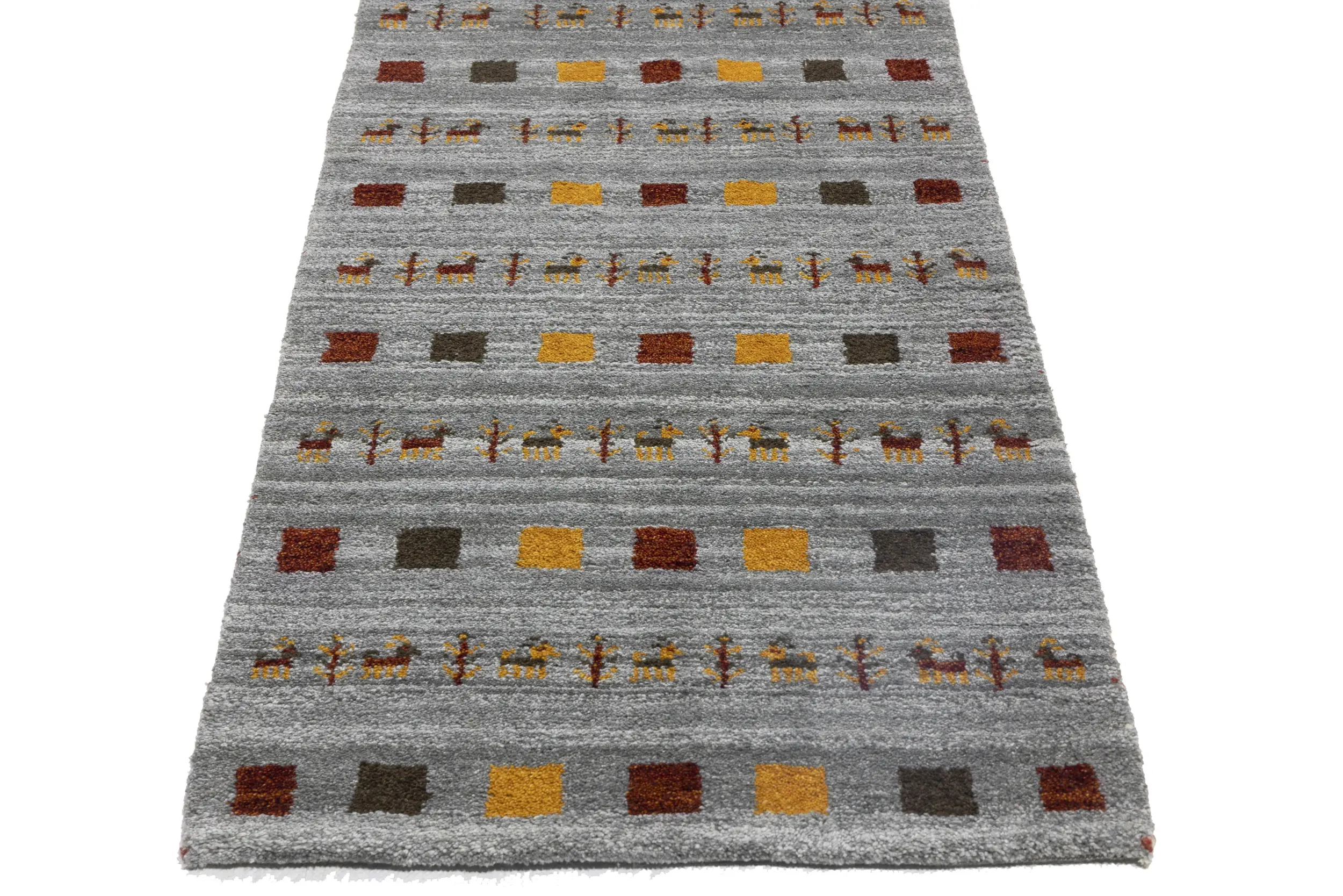 Gray Pictorial Tribal 3X10 Indo-Gabbeh Oriental Runner Rug