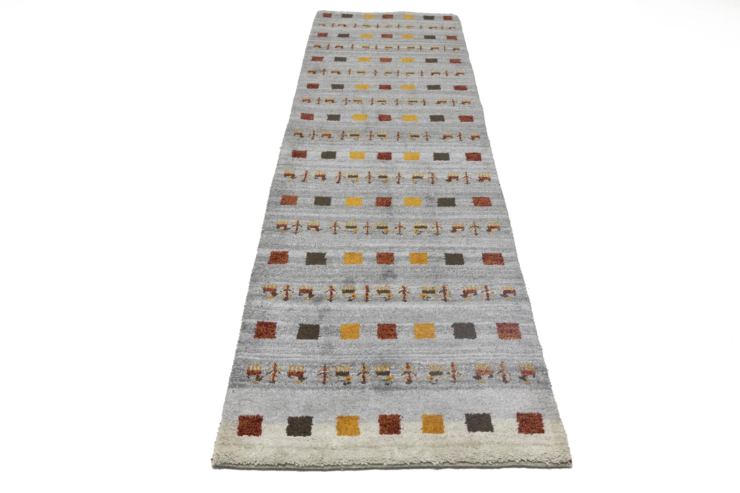 This genuine 3X10 gray new Oriental runner was made by the hands of gifted weavers inspired by a variety of spectacular artistic designs, to recreate the aged look of the original piece with a richness of color and ornately patterned background field. What set this vintage style Oriental area runner from the others are the material and dye used (wool pile and cotton foundation), knot count, ancient designs, fantastic grades, and its regional historical connection: it has deep roots, from the story of the people who produced it to the meaning of the symbols and colors displayed across its canvas that have been praised for centuries. This Indian home décor carpet will be completely cozy and inviting that never will go out of style! Also, this Oriental rug would be among your most valuable treasures, it is a great investment that accrues value over time, and it will last for generations because was woven with high-quality, all-natural wool. Environmentally friendly, opulent yet affordable; this runner will give you a thorough amount of character to help define your living space with elegance and warmth that will capture the eyes and attention of your audience (homeowners, designers, decorators, family and friends). OT-7951