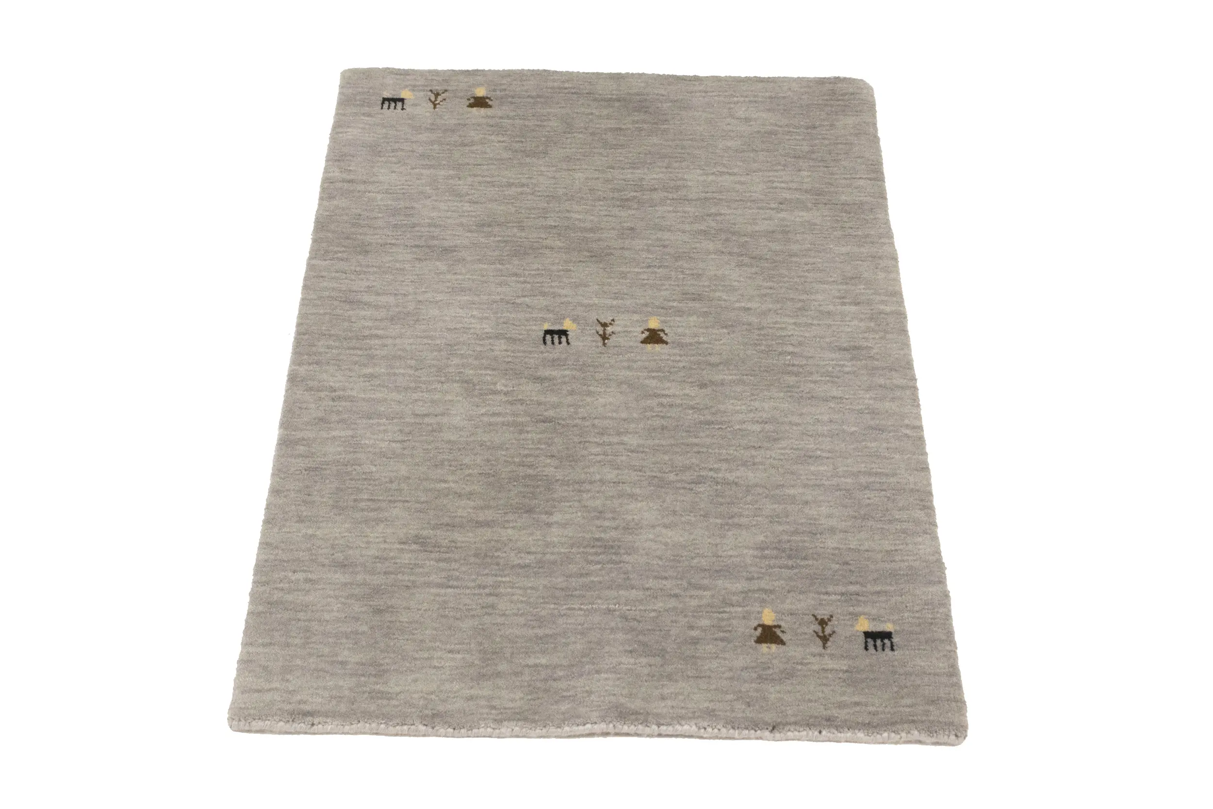 Gray Tribal 2X3 Gabbeh Modern Rug