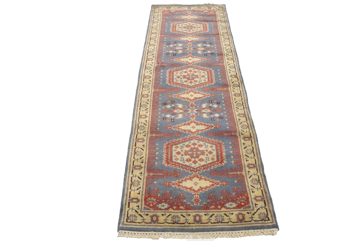 Hand Knotted 3X8 gray Oriental runner made with vegetable dyes (fine wool pile and cotton foundation), exceptional knot count, and appealing ancient designs. This Oriental runner never will go out of style and would be among your most valuable treasures.