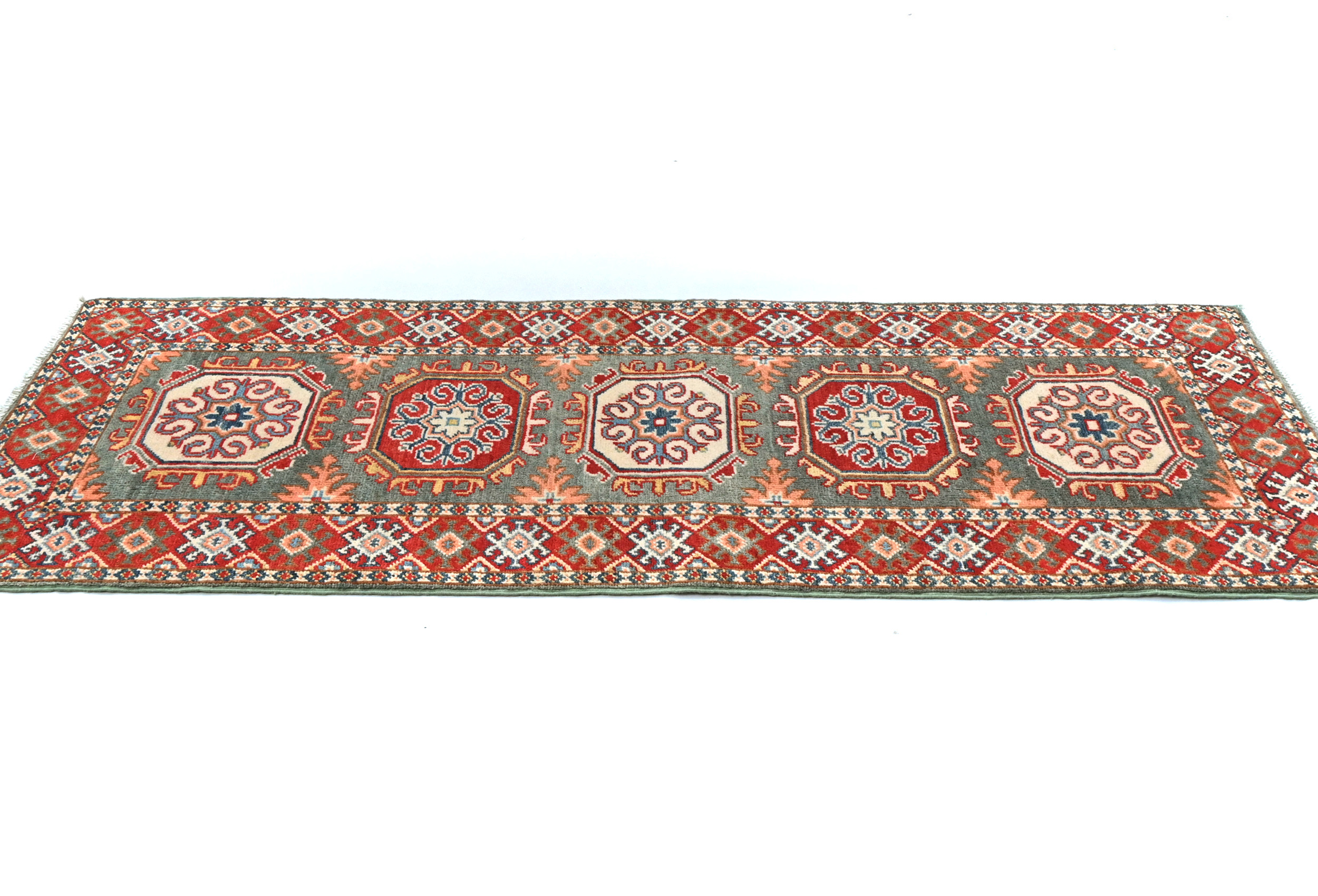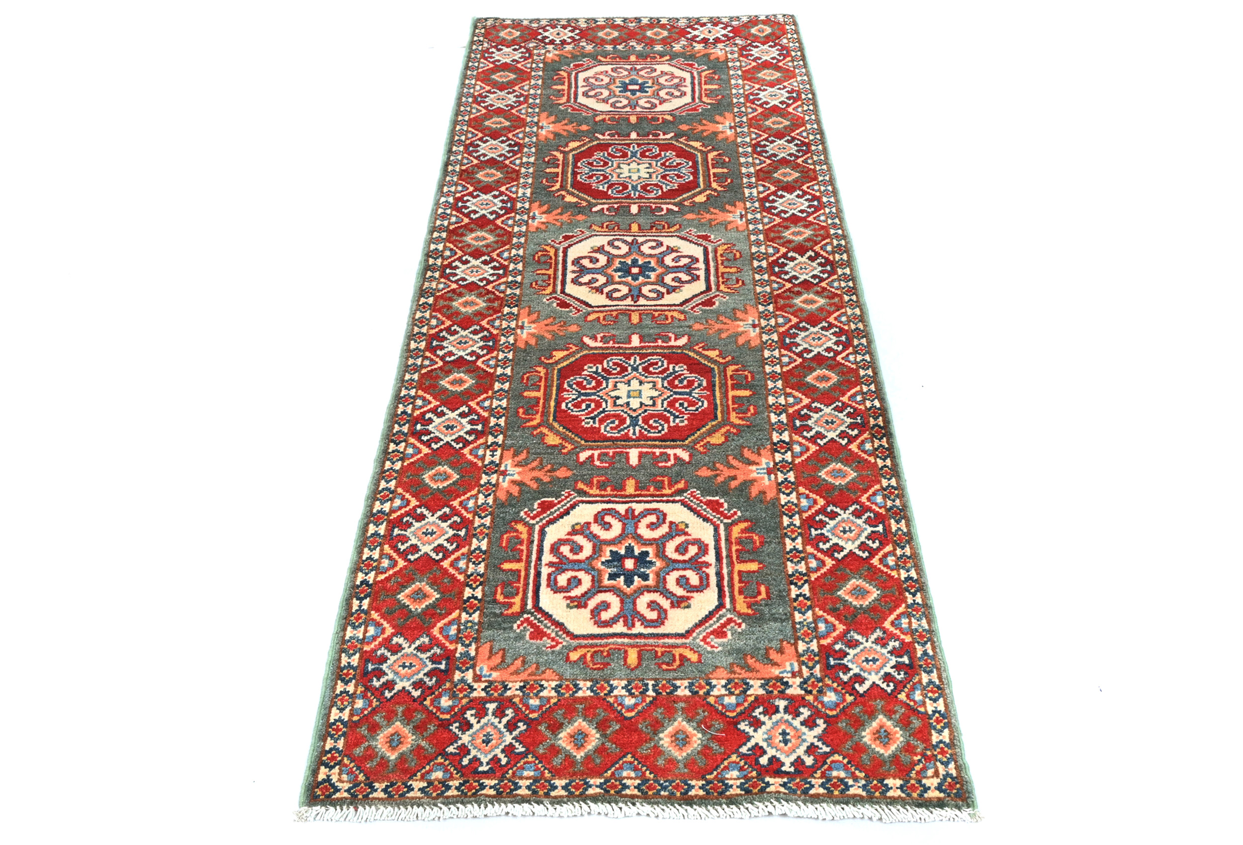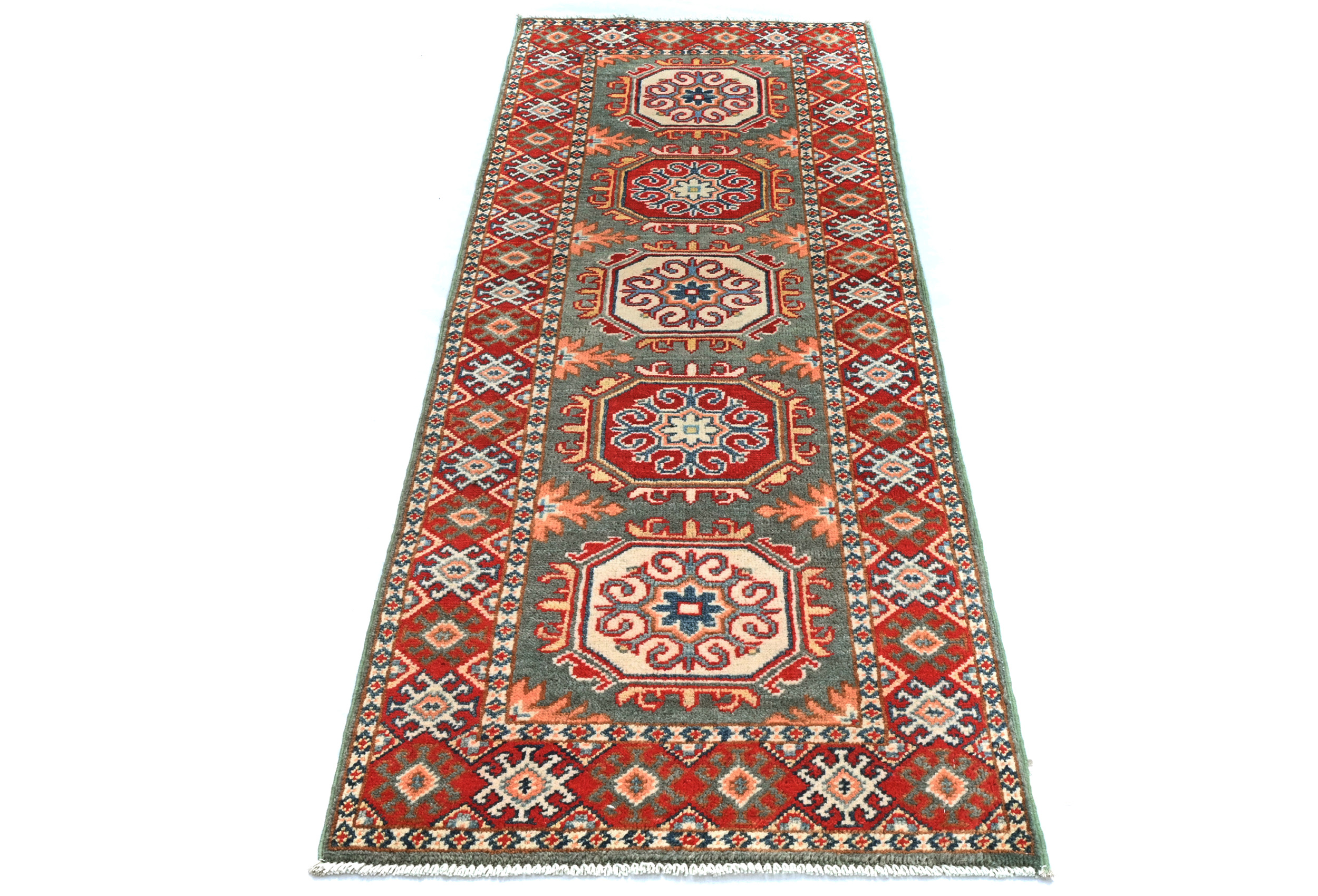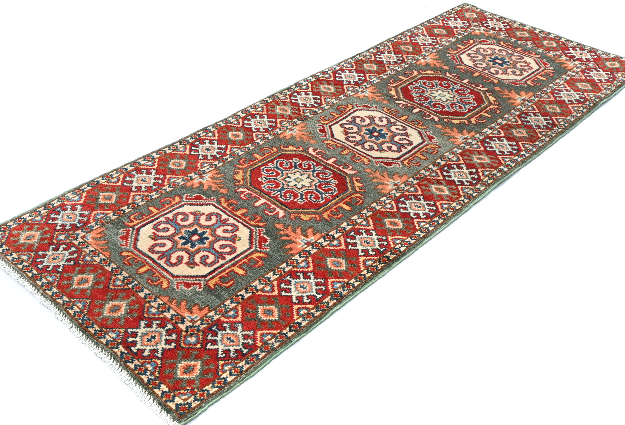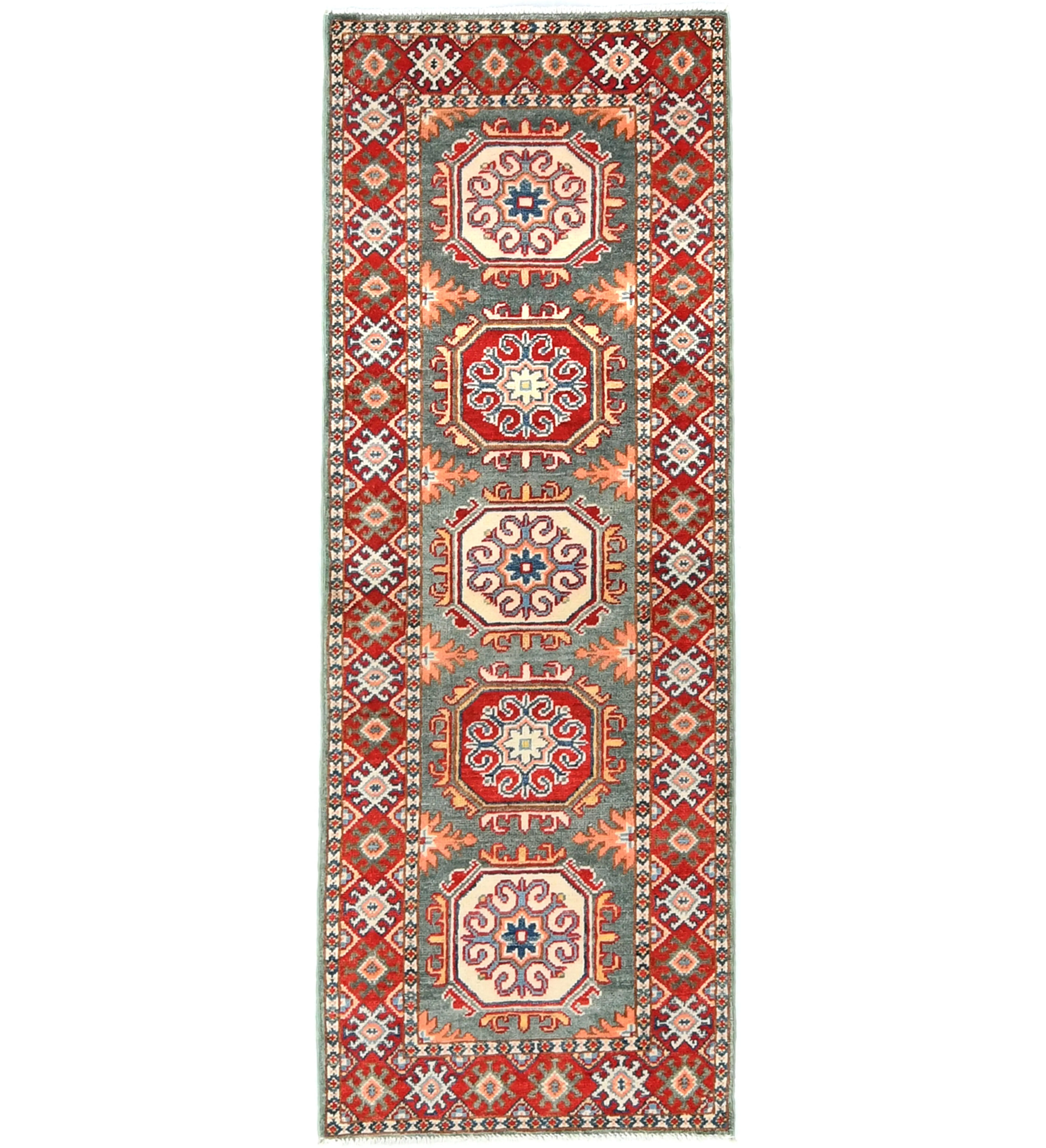 Gray Tribal Geometric 2X5'5 Kazak Pakistan Oriental Runner Rug