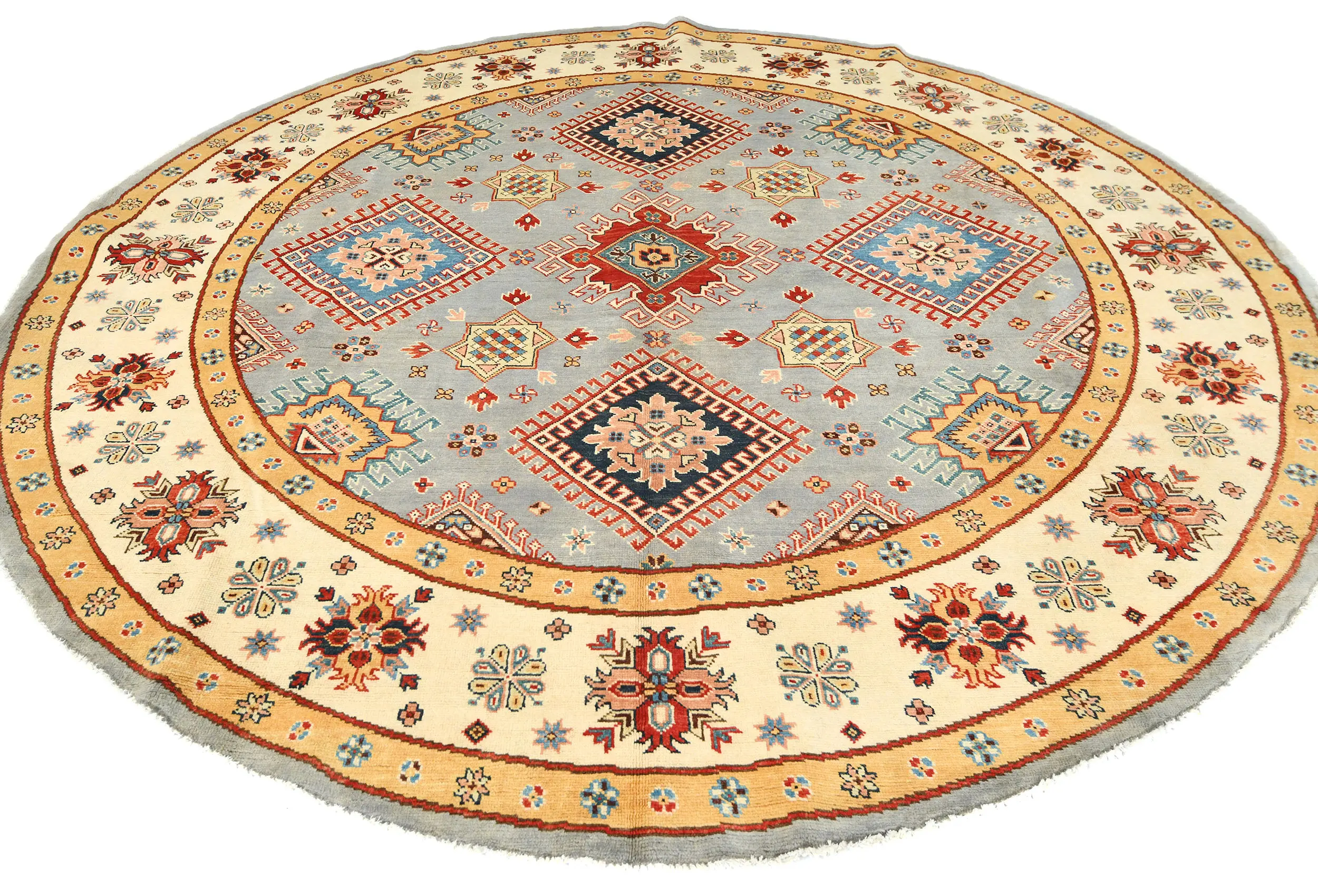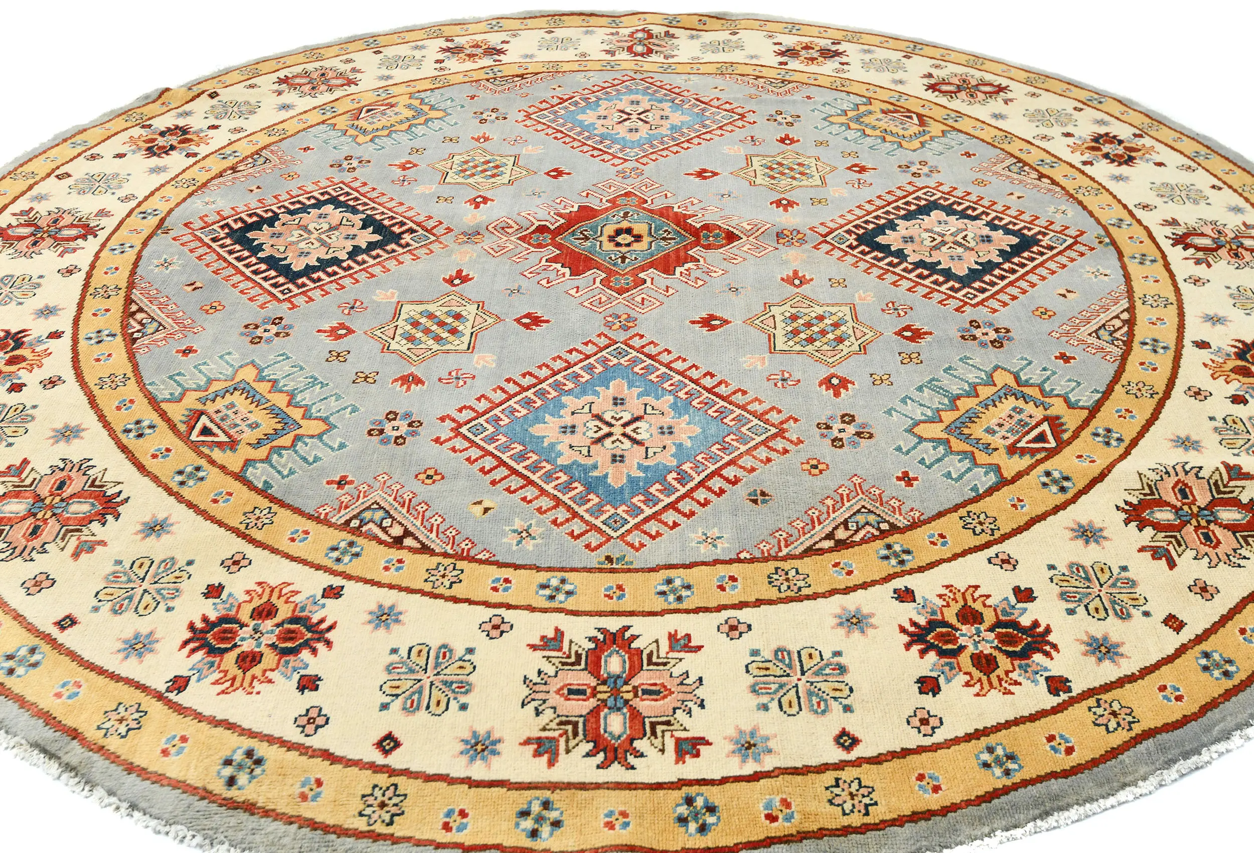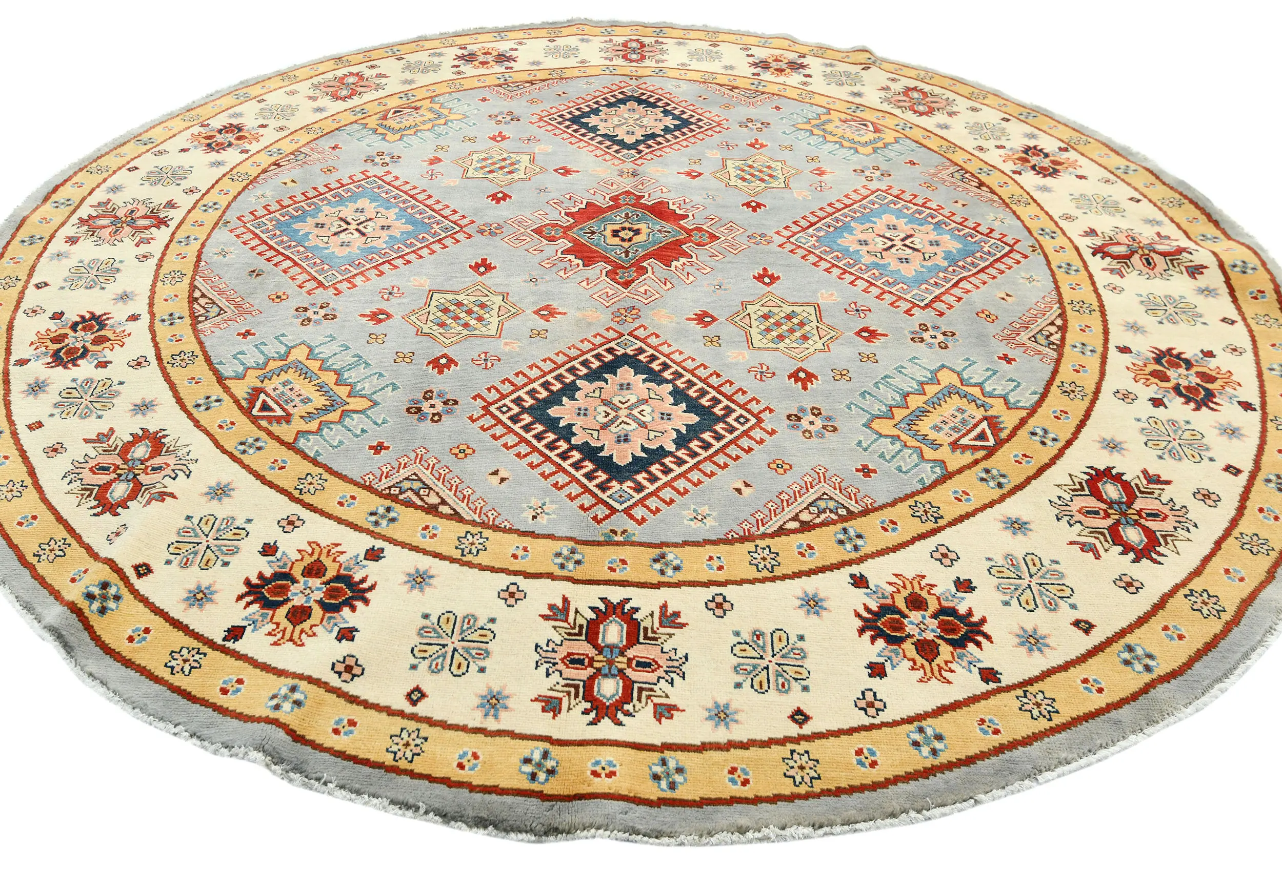 Hand Knotted 8X8 Gray Oriental Round rug made with vegetable dyes (fine wool pile and cotton foundation), exceptional knot count, and appealing ancient designs. This Oriental rug never will go out of style and would be among your most valuable treasures.