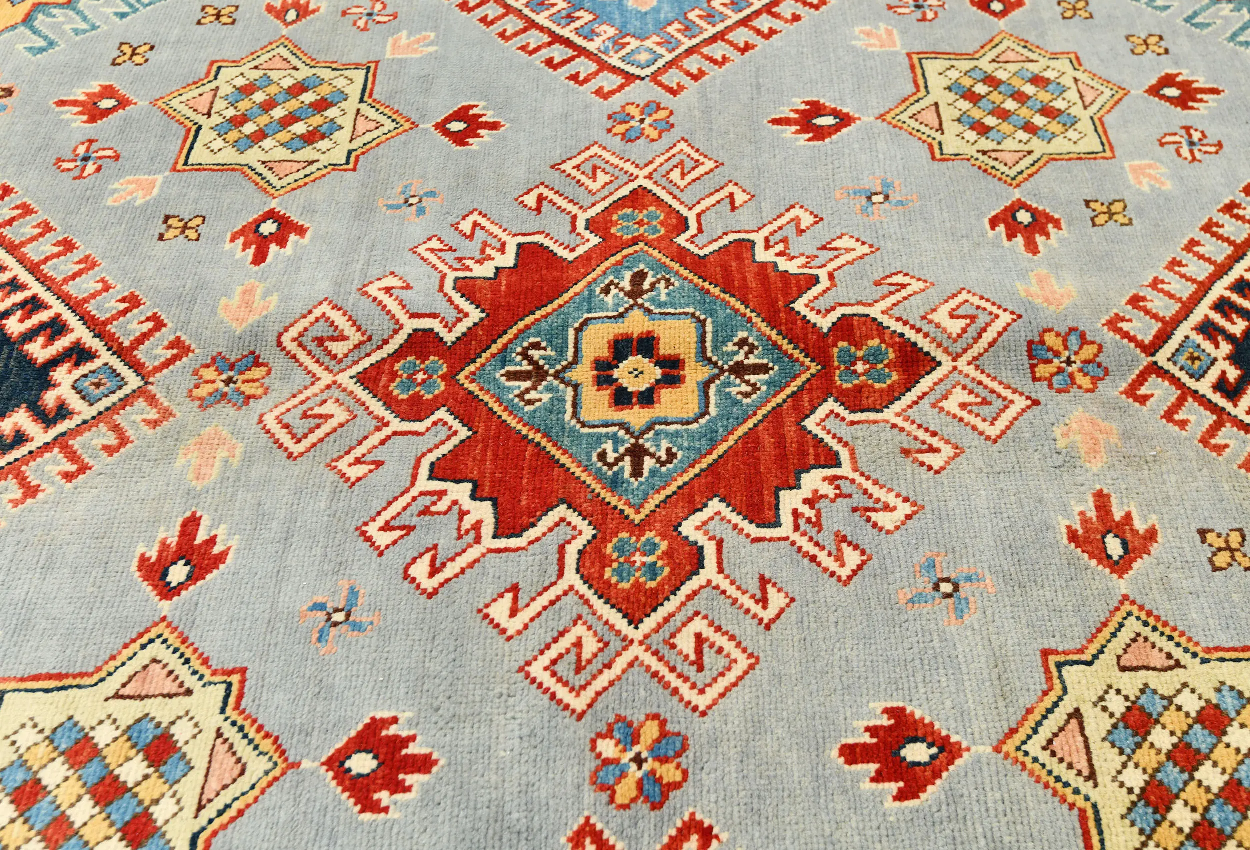 Gray Tribal Geometric 8X8 Kazak Oriental Rug