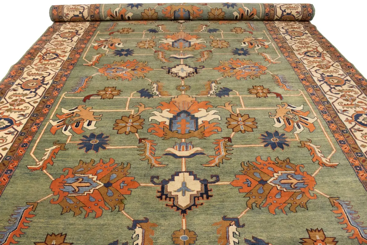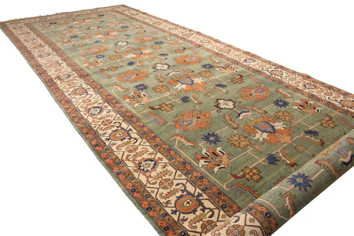 Green Floral 10X27 Heriz Sultanabad Persian Rug