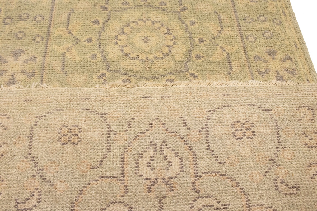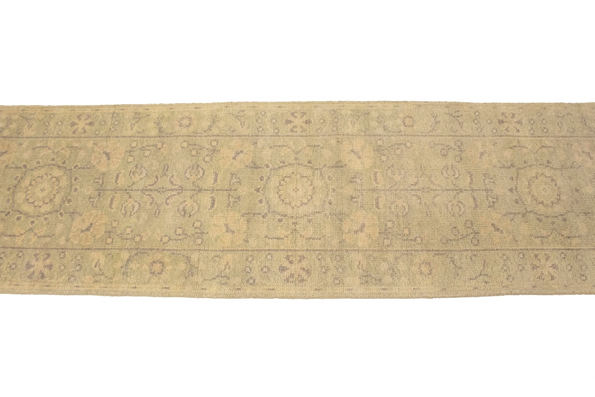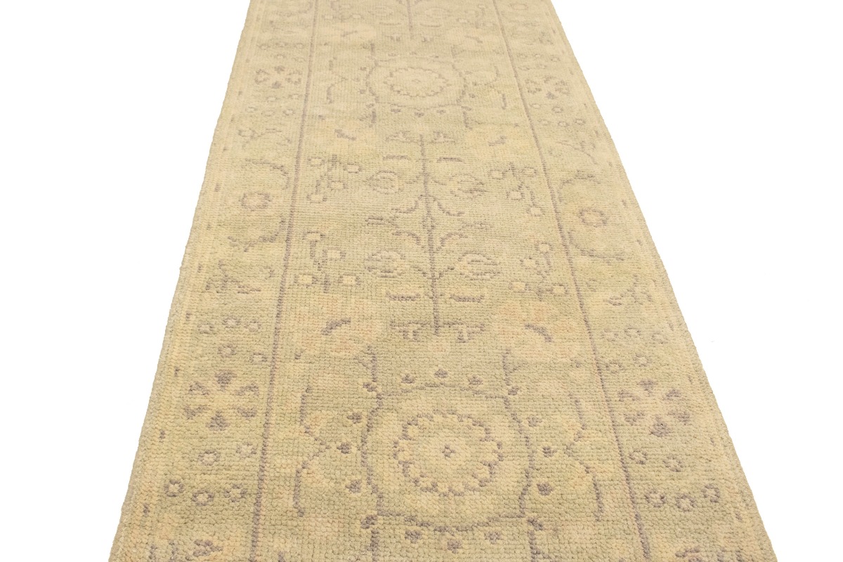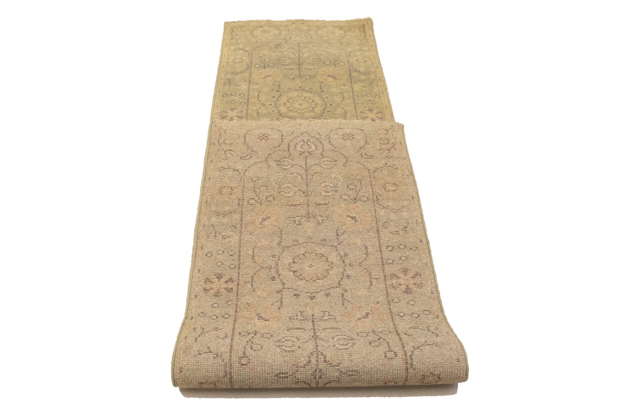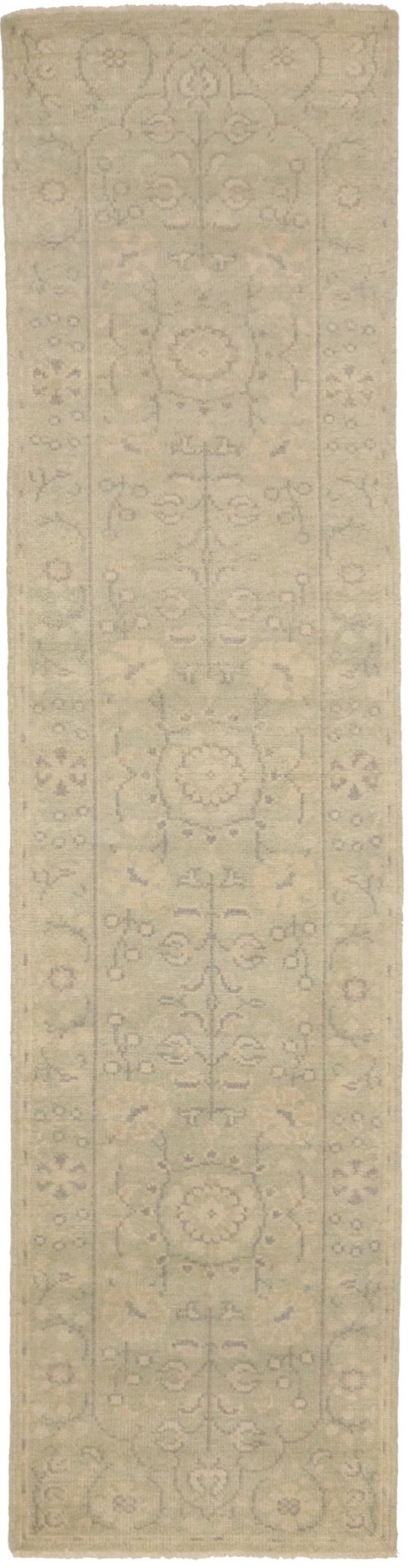 This authentic 2'4X9'9 green new Oriental runner was crafted by the hands of skilled weavers enthused by a variety of lovely artistic designs, to recreate the aged look of the unique piece with a richness of color and beautifully elaborated background field. What set this vintage style Oriental area runner from the others are the material and dye used (wool pile and cotton foundation), knot count, ancient designs, fantastic grades, and its regional historical connection: it has deep roots, from the story of the people who produced it to the meaning of the symbols and colors displayed across its canvas that have been praised for centuries. This Indian home décor carpet will be completely cozy and inviting that never will go out of style! Also, this Oriental rug would be among your most valuable treasures, it is a great investment that increase in value over time, and it will last for generations because was woven with high-quality, all-natural wool. Environmentally friendly, opulent yet affordable; this runner will give you a thorough amount of character to help define your living space with sophistication and warmth that will capture the eyes and attention of your audience (homeowners, designers, decorators, family and friends). OT-6734