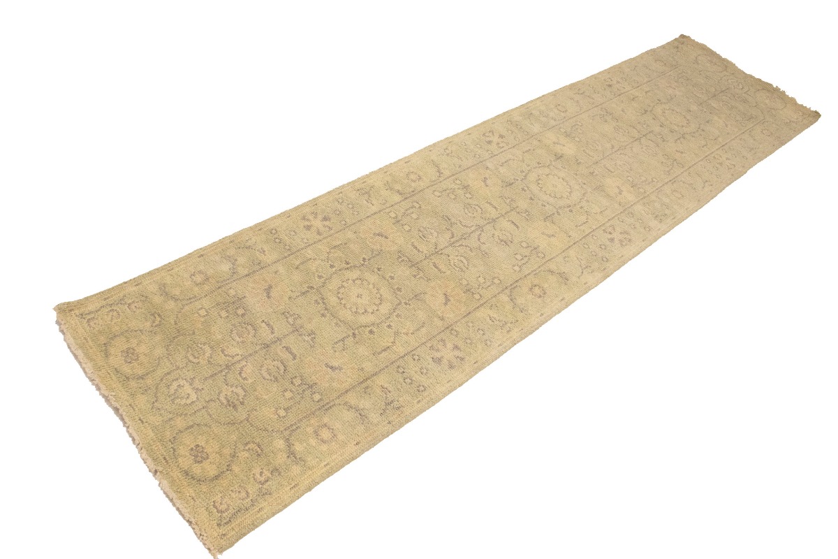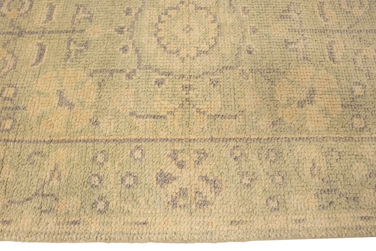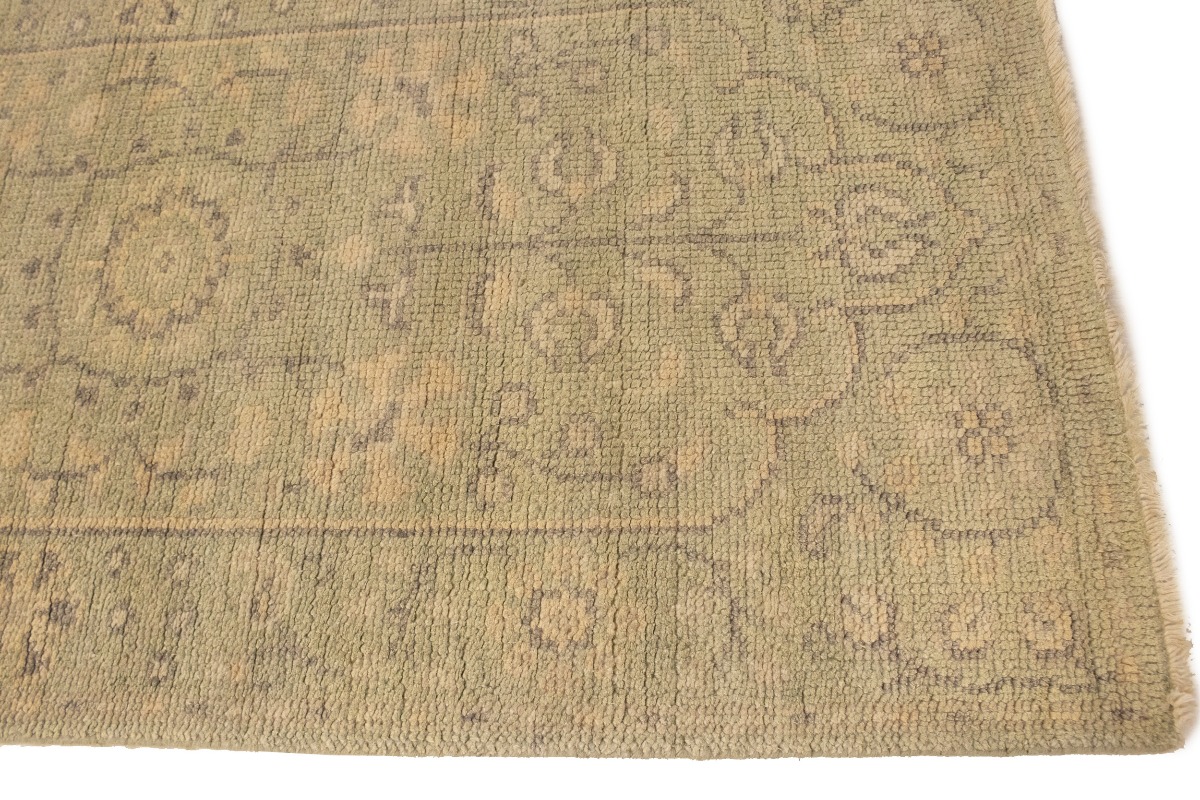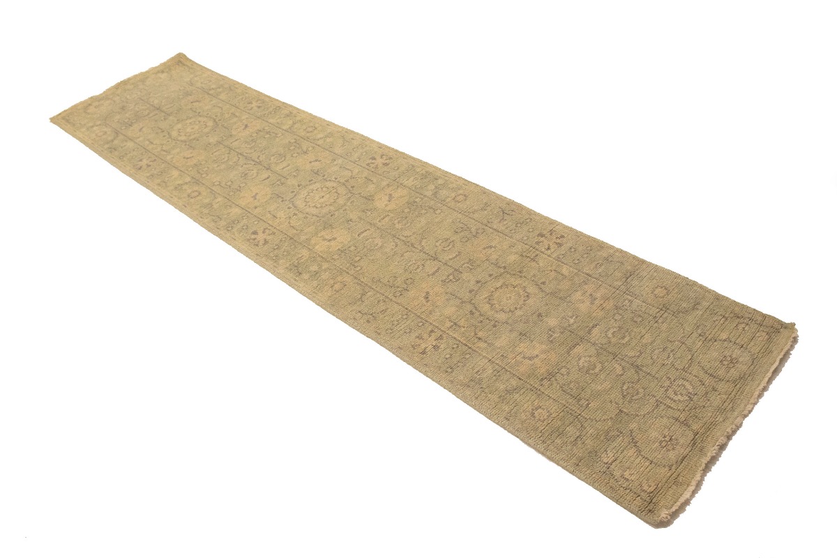 This authentic 2'4X9'9 green new Oriental runner was crafted by the hands of skilled weavers enthused by a variety of lovely artistic designs, to recreate the aged look of the unique piece with a richness of color and beautifully elaborated background field. What set this vintage style Oriental area runner from the others are the material and dye used (wool pile and cotton foundation), knot count, ancient designs, fantastic grades, and its regional historical connection: it has deep roots, from the story of the people who produced it to the meaning of the symbols and colors displayed across its canvas that have been praised for centuries. This Indian home décor carpet will be completely cozy and inviting that never will go out of style! Also, this Oriental rug would be among your most valuable treasures, it is a great investment that increase in value over time, and it will last for generations because was woven with high-quality, all-natural wool. Environmentally friendly, opulent yet affordable; this runner will give you a thorough amount of character to help define your living space with sophistication and warmth that will capture the eyes and attention of your audience (homeowners, designers, decorators, family and friends). OT-6734