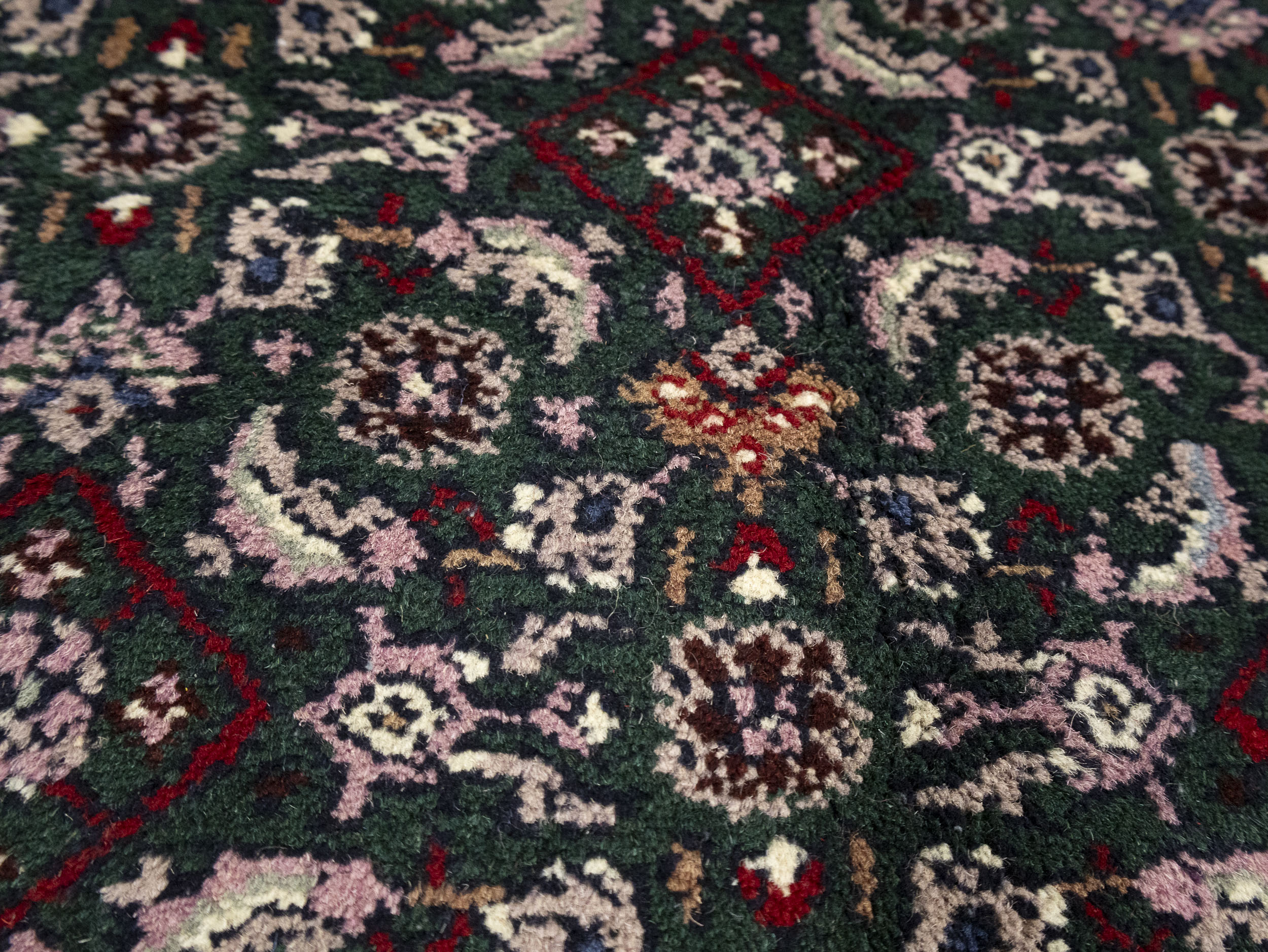 This authentic 9x12 green new Oriental rug was crafted by the hands of skilled weavers enthused by a variety of lovely artistic designs, to recreate the aged look of the unique piece with a richness of color and beautifully elaborated background field. What set this vintage style Oriental area rug from the others are the material and dye used (wool pile and cotton foundation), knot count, ancient designs, fantastic grades, and its regional historical connection: it has deep roots, from the story of the people who produced it to the meaning of the symbols and colors displayed across its canvas that have been praised for centuries. This Indian home décor carpet will be completely cozy and inviting that never will go out of style! Also, this Oriental rug would be among your most valuable treasures, it is a great investment that increase in value over time, and it will last for generations because was woven with high-quality, all-natural wool. Environmentally friendly, opulent yet affordable; this rug will give you a thorough amount of character to help define your living space with sophistication and warmth that will capture the eyes and attention of your audience (homeowners, designers, decorators, family and friends).
