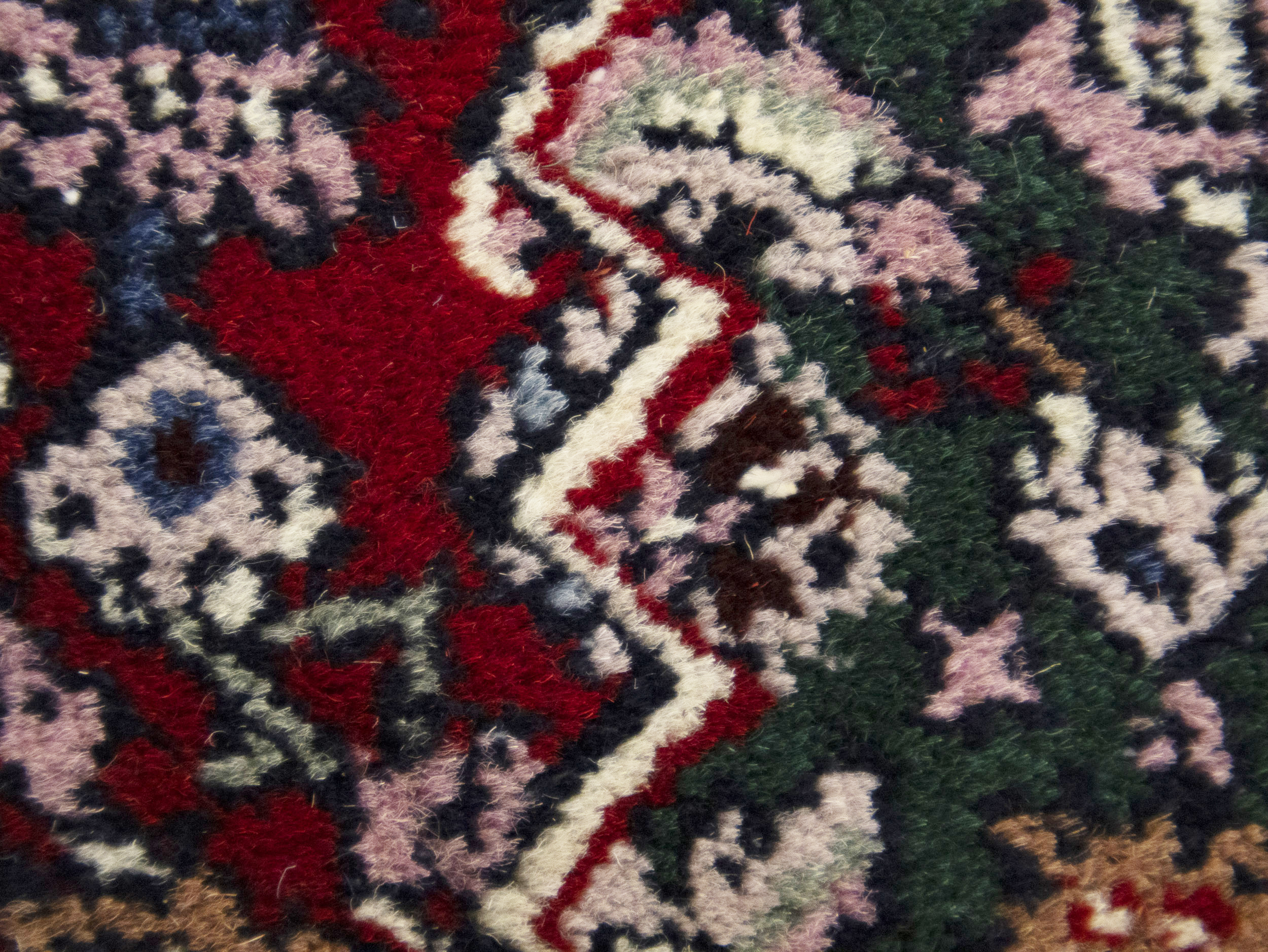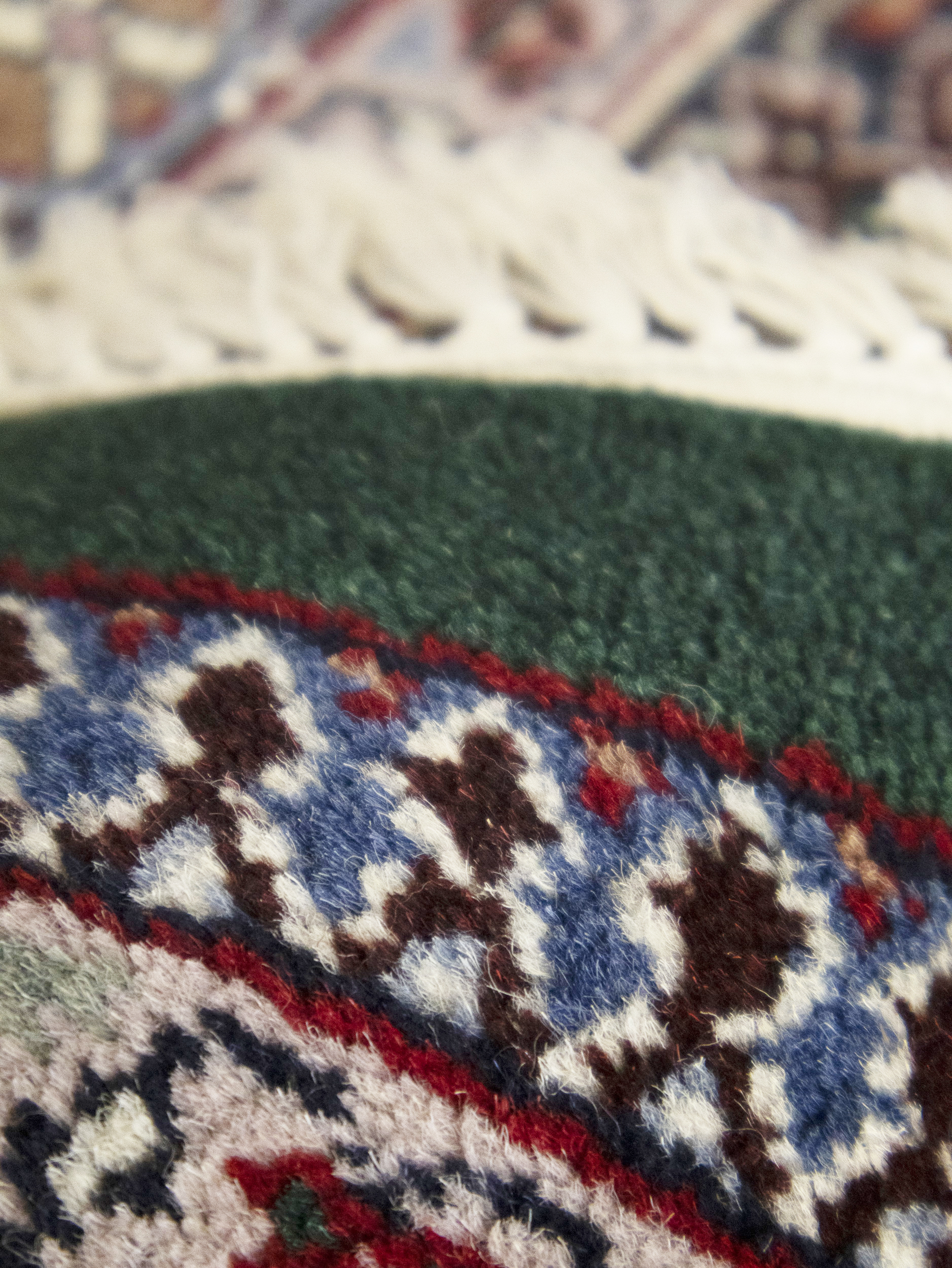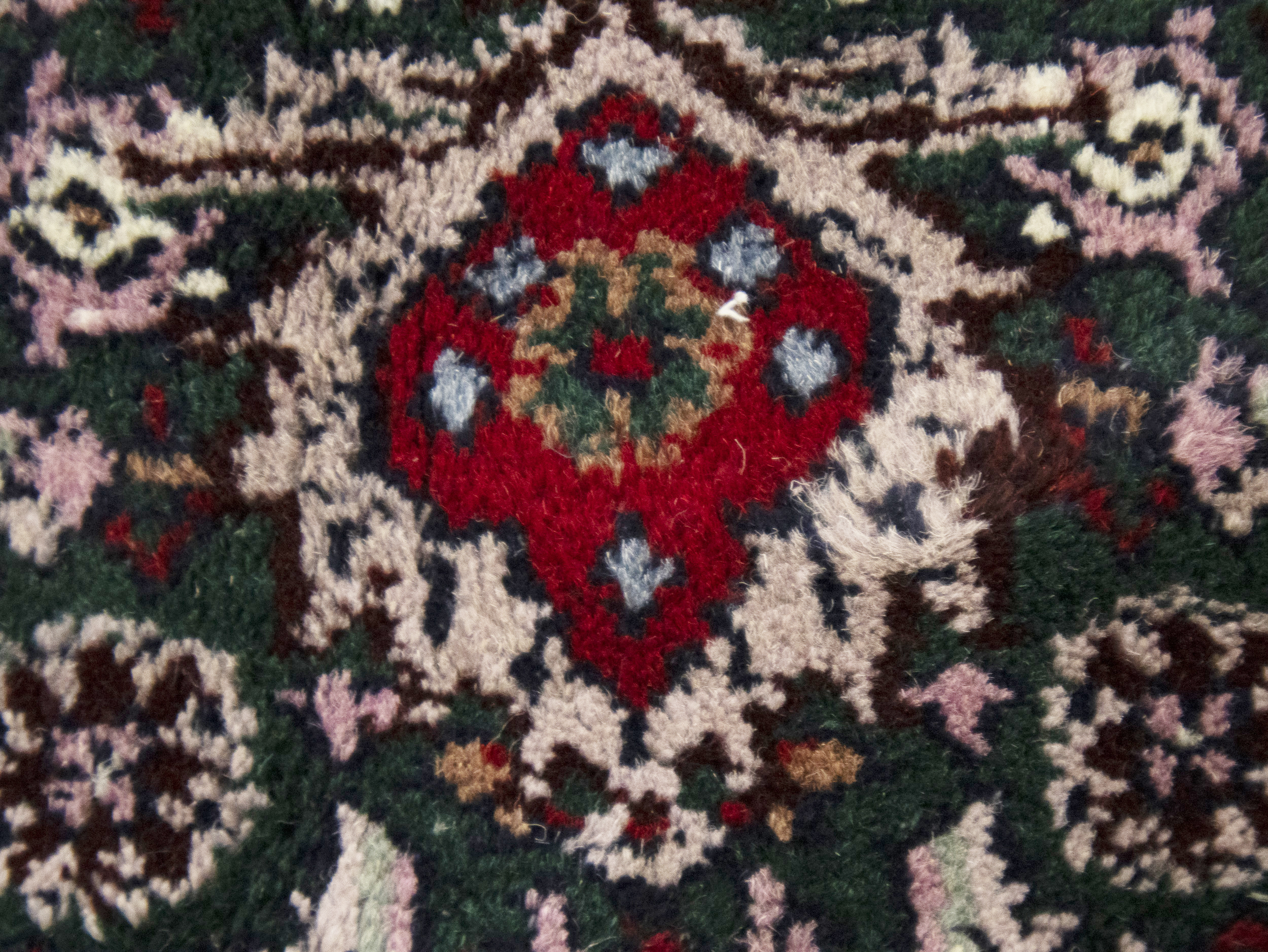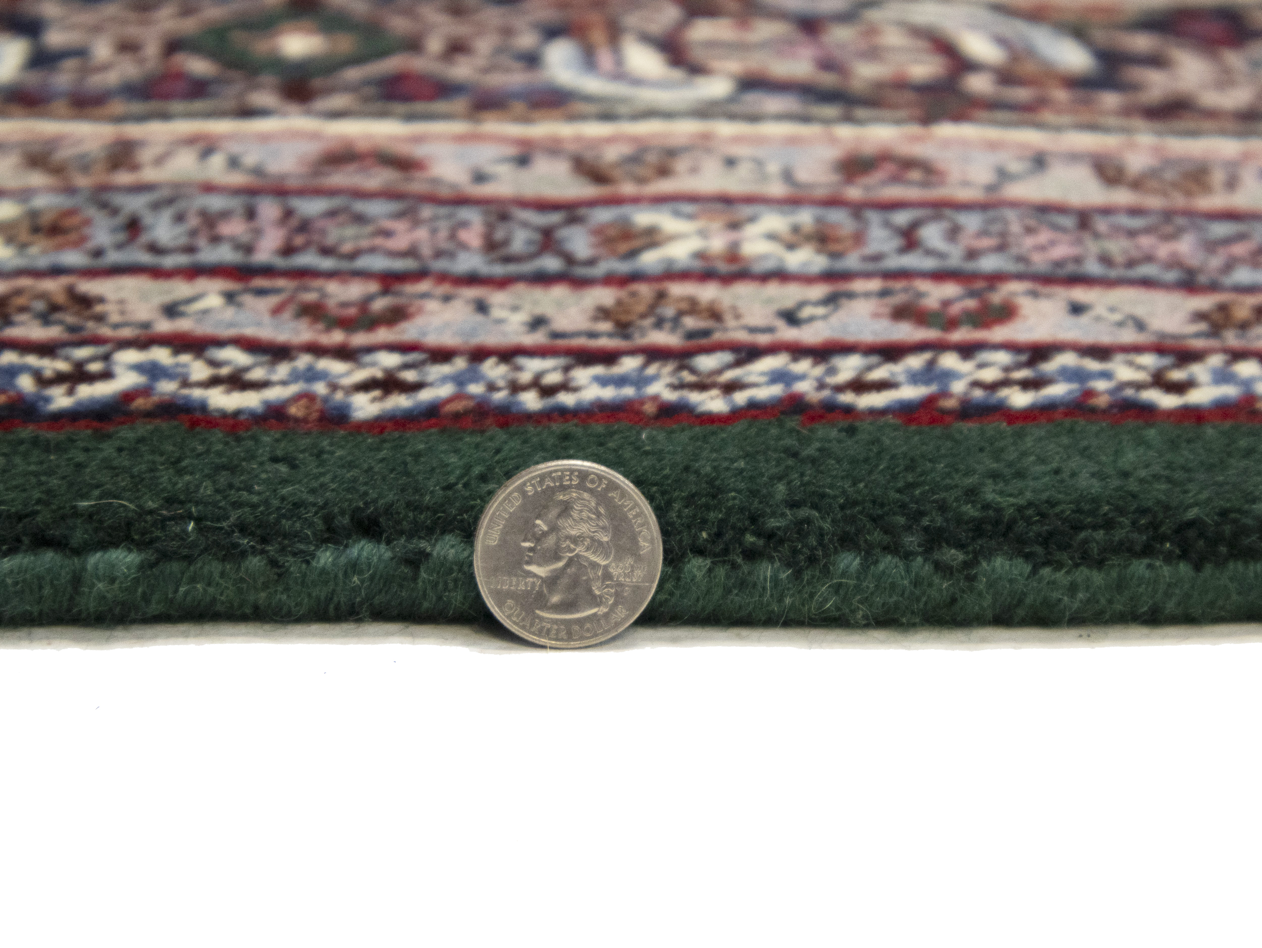 Handmade 9x12 green oriental rug made with vegetable dyes (fine wool pile and cotton foundation), exceptional knot count, and appealing ancient designs. This Oriental rug never will go out of style and would be among your most valuable treasures.