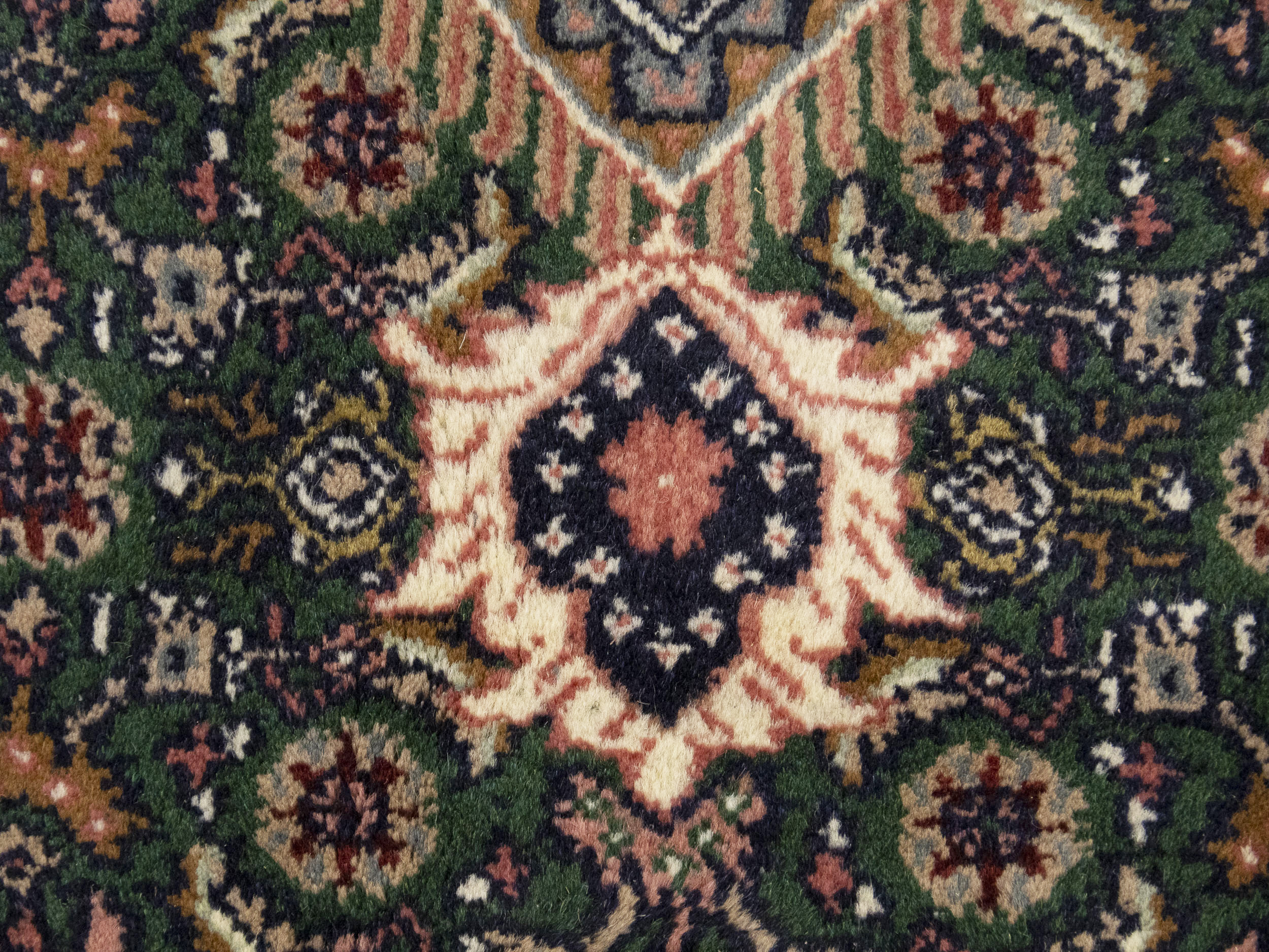 This original 9X12 Green new Oriental rug was finely knotted by the hands of weavers influenced by a variety of amazing artistic designs, to recreate the aged look of the exceptional piece with a richness of color and embellished background field. What set this vintage style Oriental area rug from the others are the material and dye used (wool pile and cotton foundation), knot count, antique designs, fantastic grades, and its regional historical connection: it has deep roots, from the story of the people who produced it to the meaning of the symbols and colors displayed across its canvas that have been praised for centuries. This Indian home décor carpet will be completely cozy and inviting that never will go out of style! Also, this Oriental rug would be among your most valuable treasures, it is a great investment that increase in value over time, and it will last a lifetime because was woven with high-quality, all-natural wool. Eco-friendly, opulent yet affordable; this rug will give you an extra pop of character to help define your home environment with luxury and warmth that will capture the eyes and attention of your audience (homeowners, designers, decorators, family and friends).