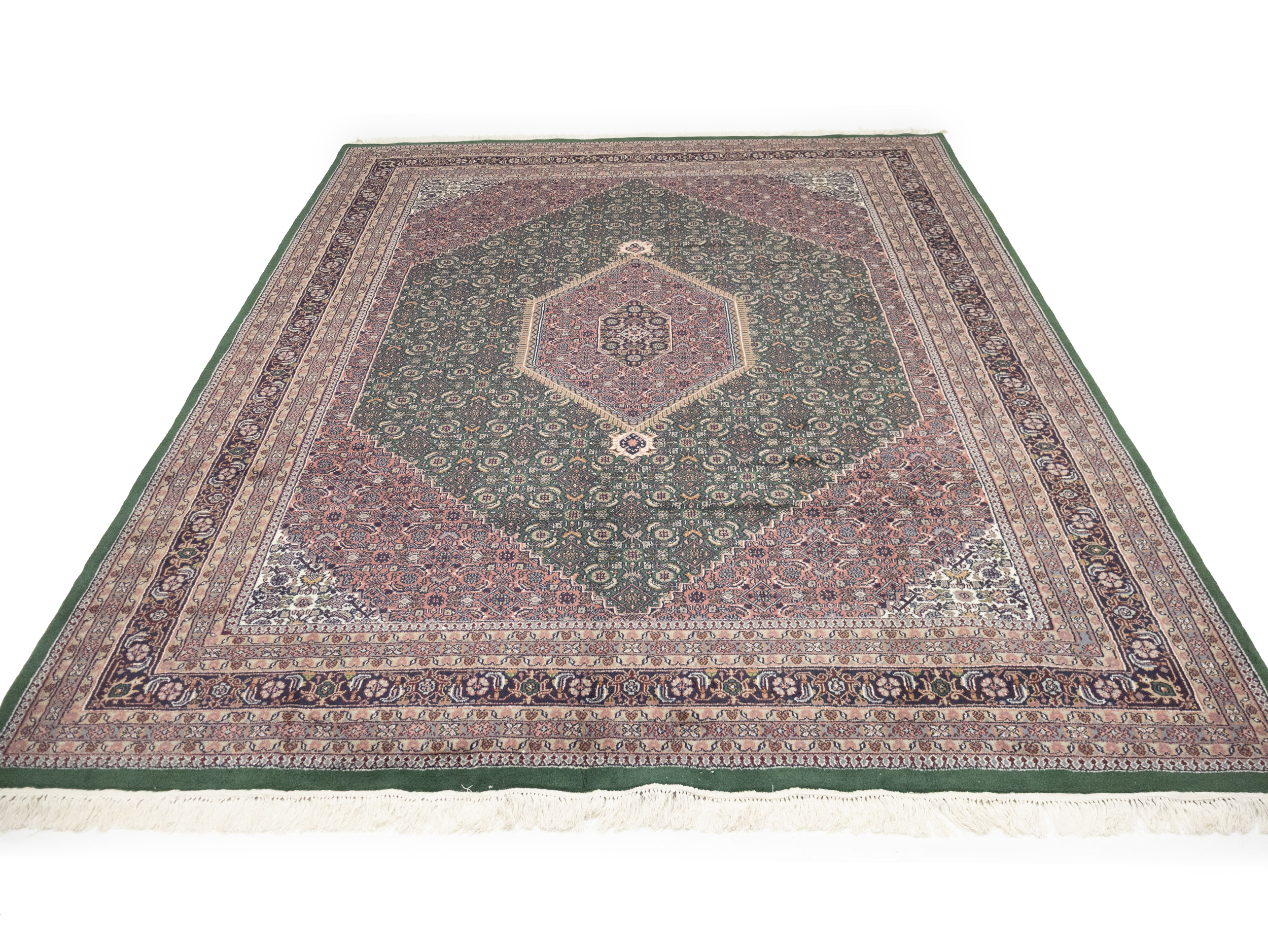 Green Floral Tribal 9X12 Indo-Bidjar Oriental Rug