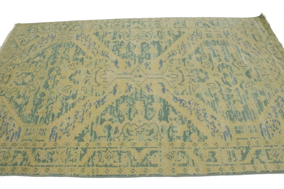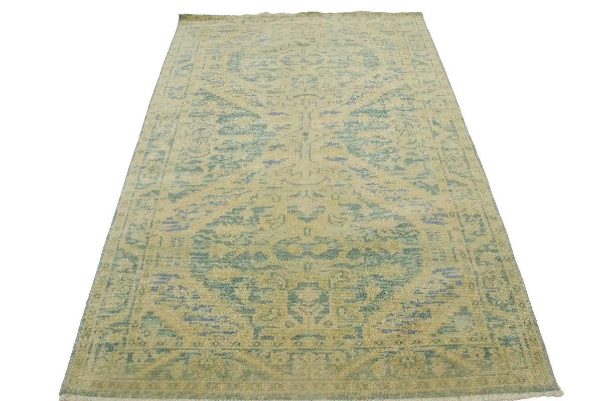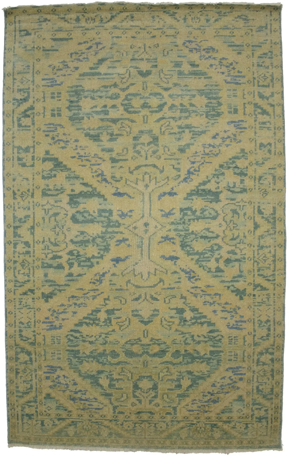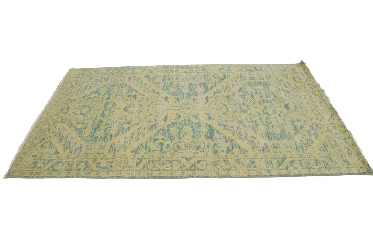This authentic 5X8 green new Oriental rug was crafted by the hands of skilled weavers enthused by a variety of lovely artistic designs, to recreate the aged look of the unique piece with a richness of color and beautifully elaborated background field. What set this vintage style Oriental area rug from the others are the material and dye used (wool pile and cotton foundation), knot count, ancient designs, fantastic grades, and its regional historical connection: it has deep roots, from the story of the people who produced it to the meaning of the symbols and colors displayed across its canvas that have been praised for centuries. This Indian home décor carpet will be completely cozy and inviting that never will go out of style! Also, this Oriental rug would be among your most valuable treasures, it is a great investment that increase in value over time, and it will last for generations because was woven with high-quality, all-natural wool. Environmentally friendly, opulent yet affordable; this rug will give you a thorough amount of character to help define your living space with sophistication and warmth that will capture the eyes and attention of your audience (homeowners, designers, decorators, family and friends). OT-6900