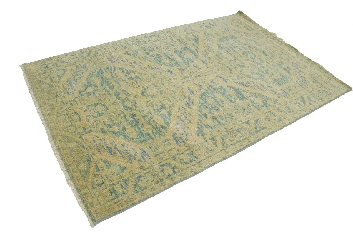 Handmade 5X8 green Oriental rug made with vegetable dyes (fine wool pile and cotton foundation), exceptional knot count, and appealing ancient designs. This Oriental rug never will go out of style and would be among your most valuable treasures.