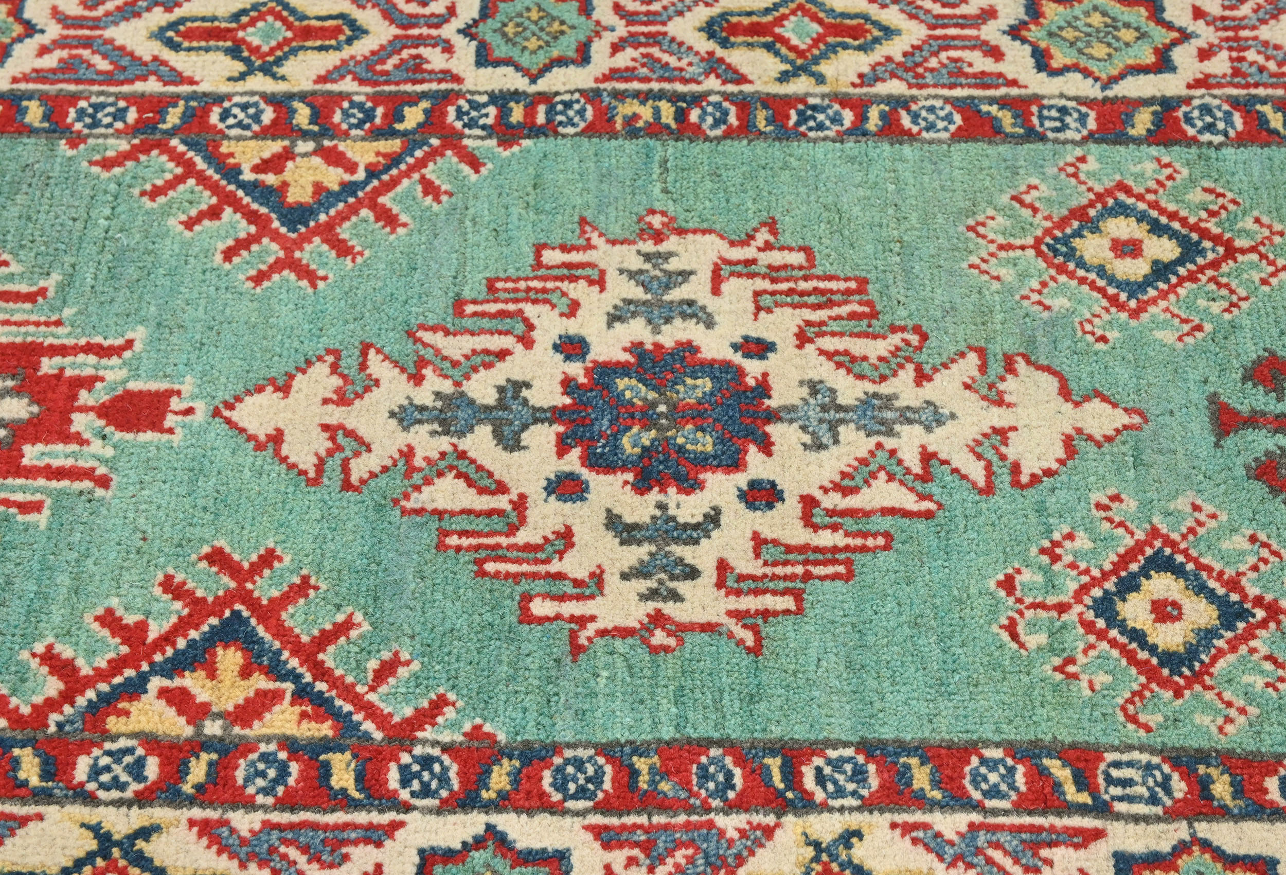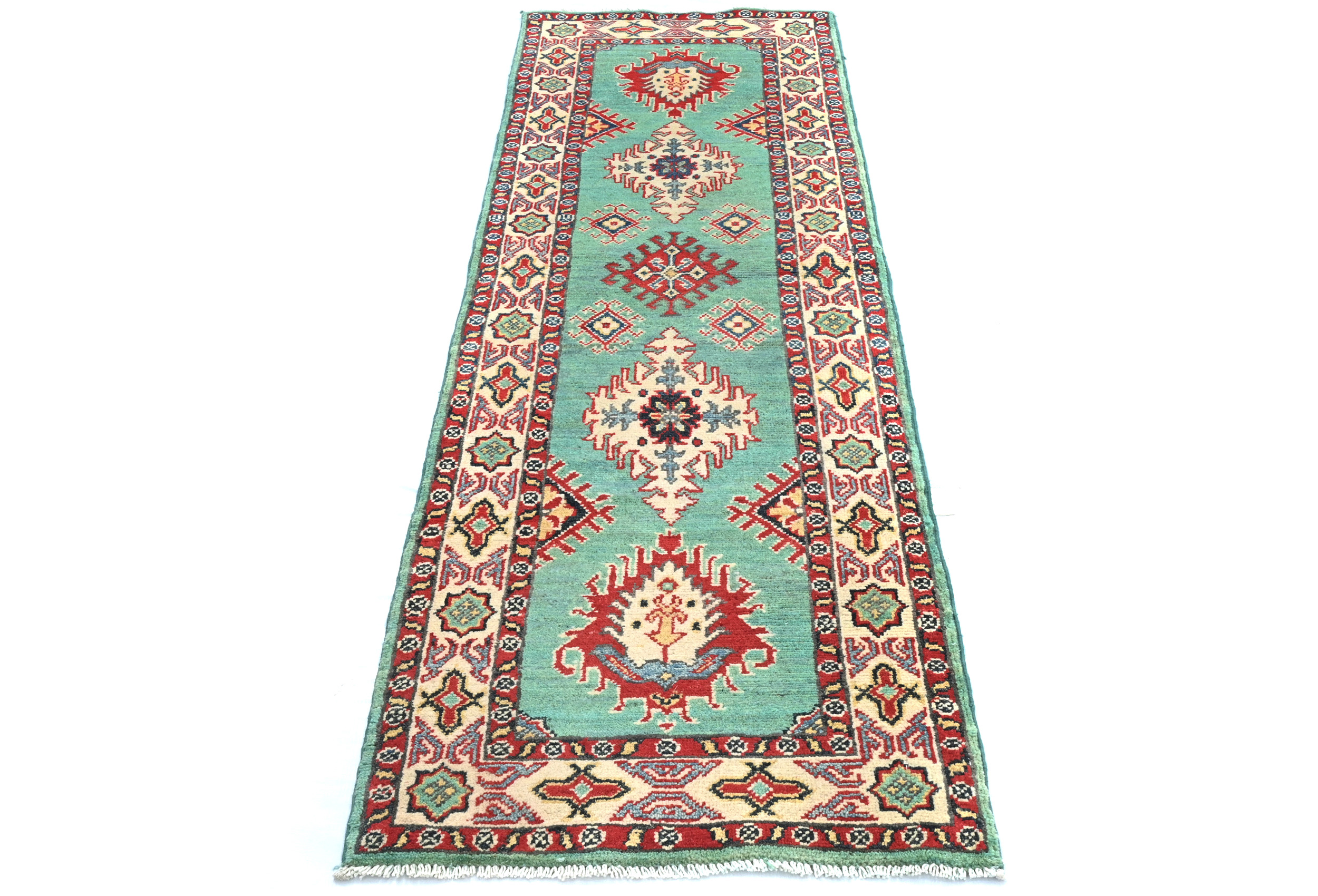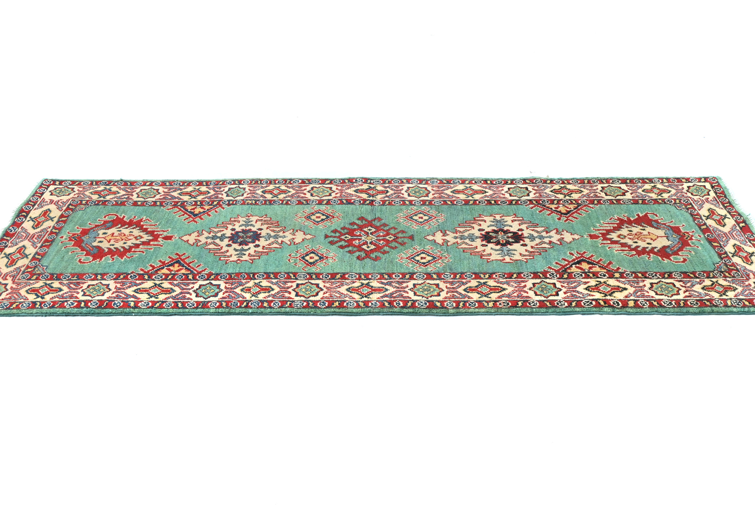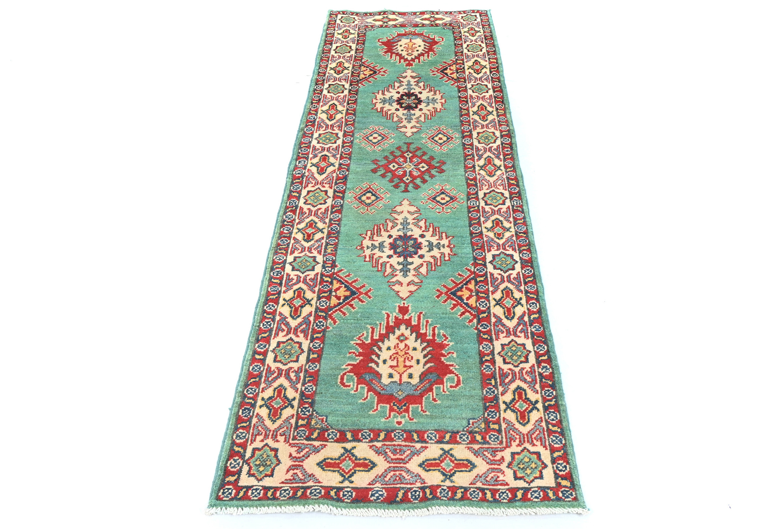 Green Tribal Geometric 2X6 Kazak Pakistan Oriental Runner Rug