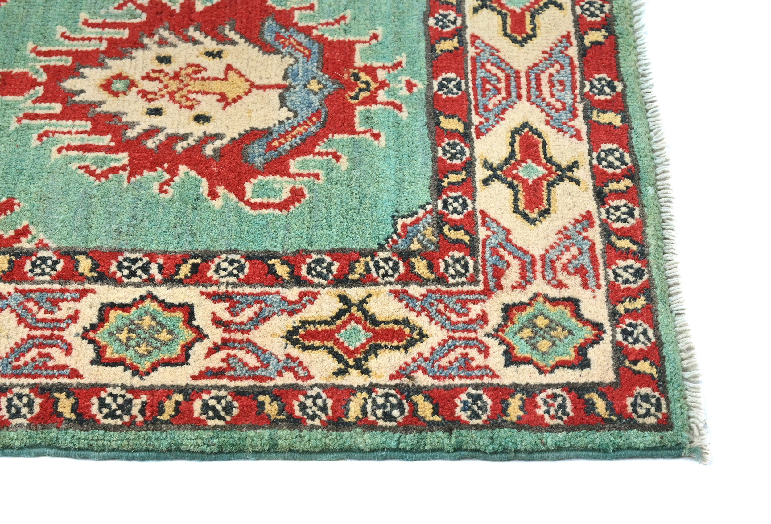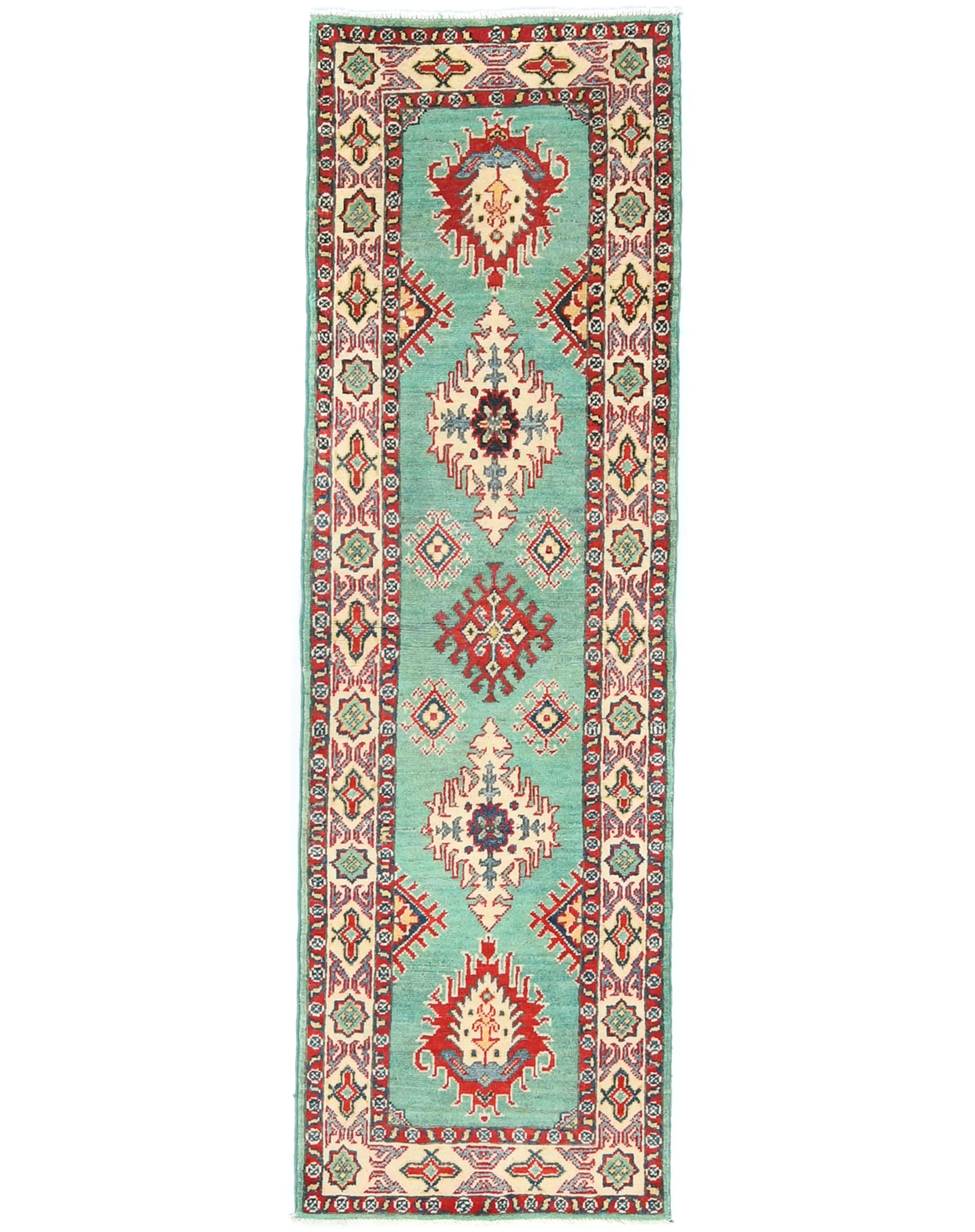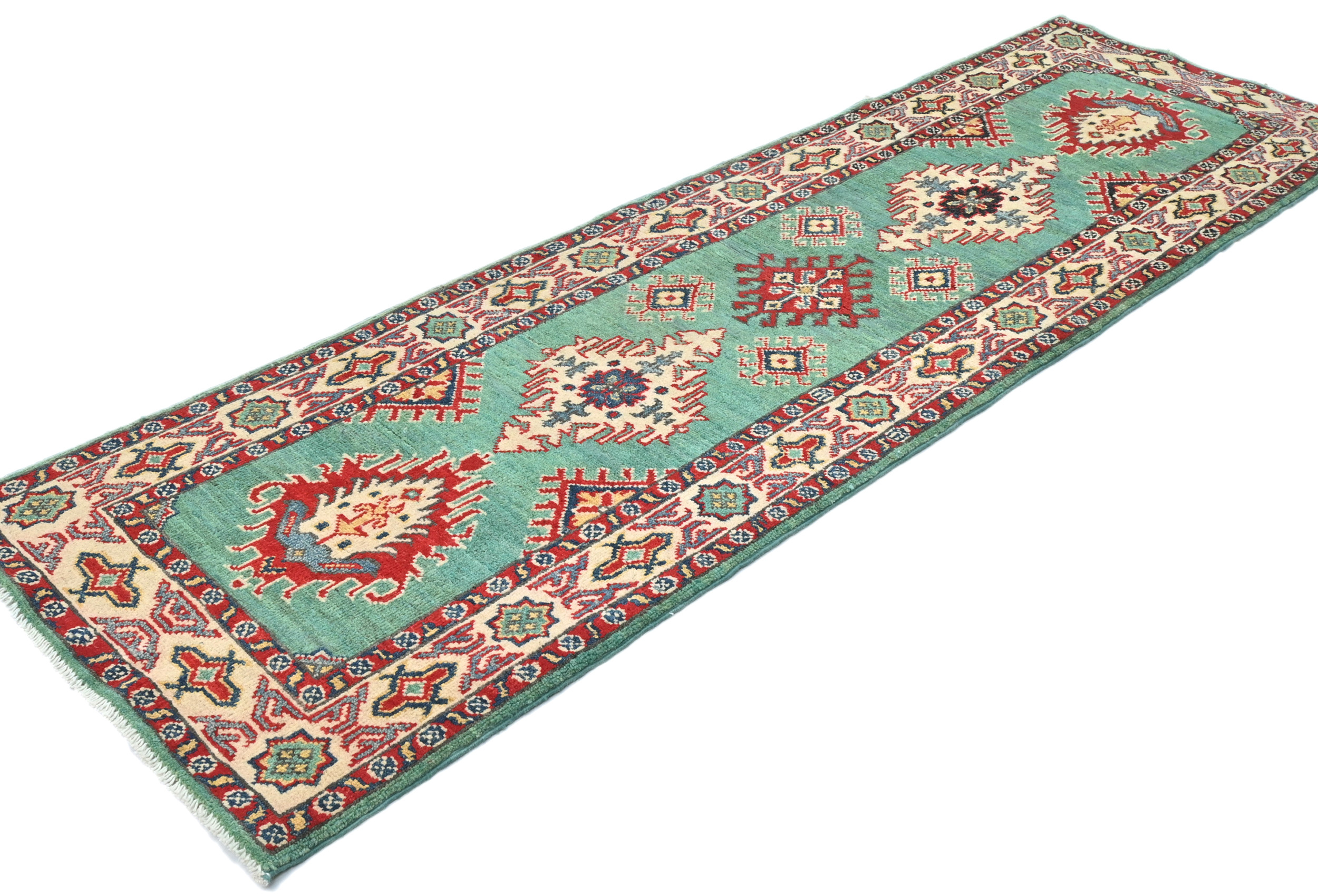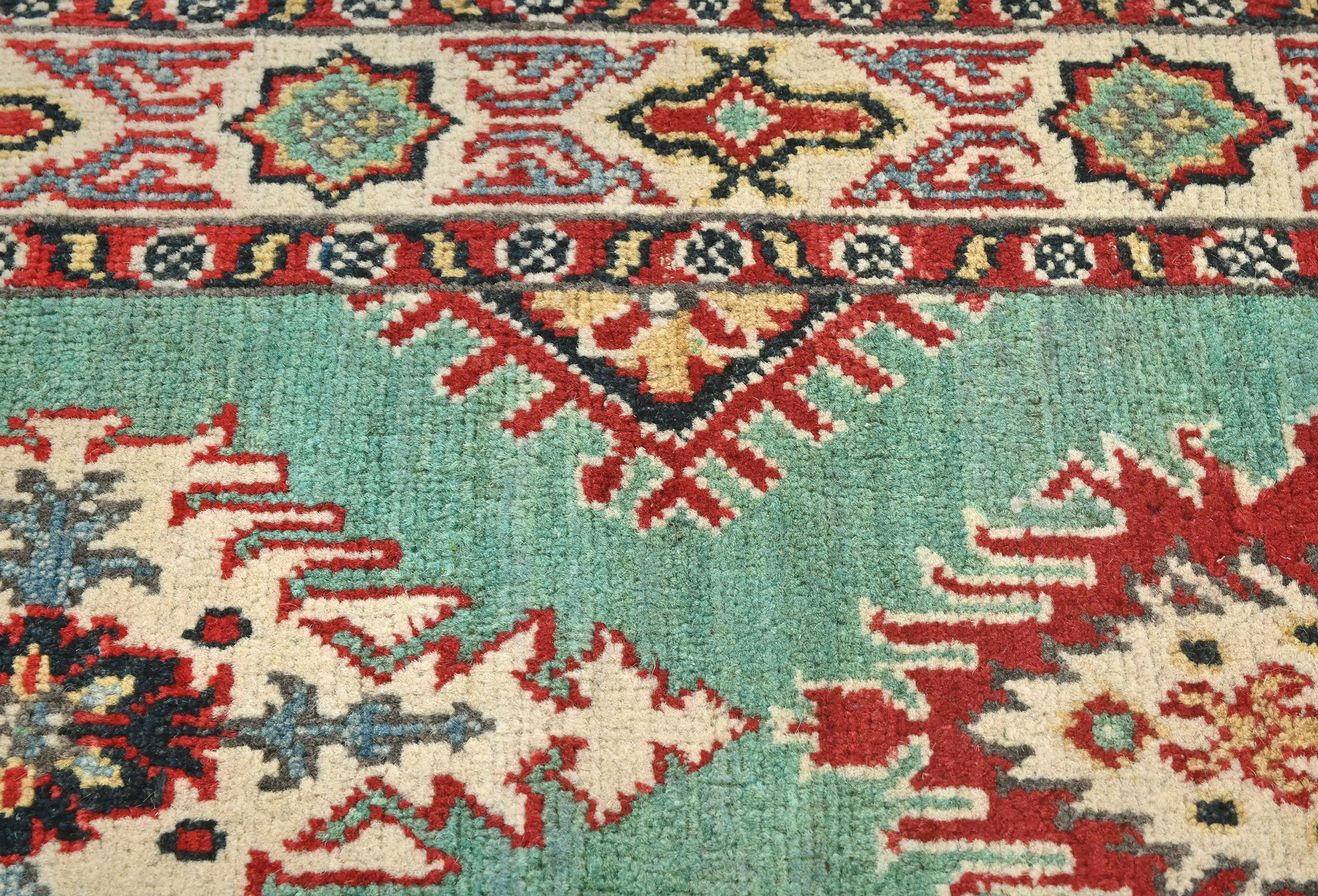 Green Tribal Geometric 2X6 Kazak Pakistan Oriental Runner Rug