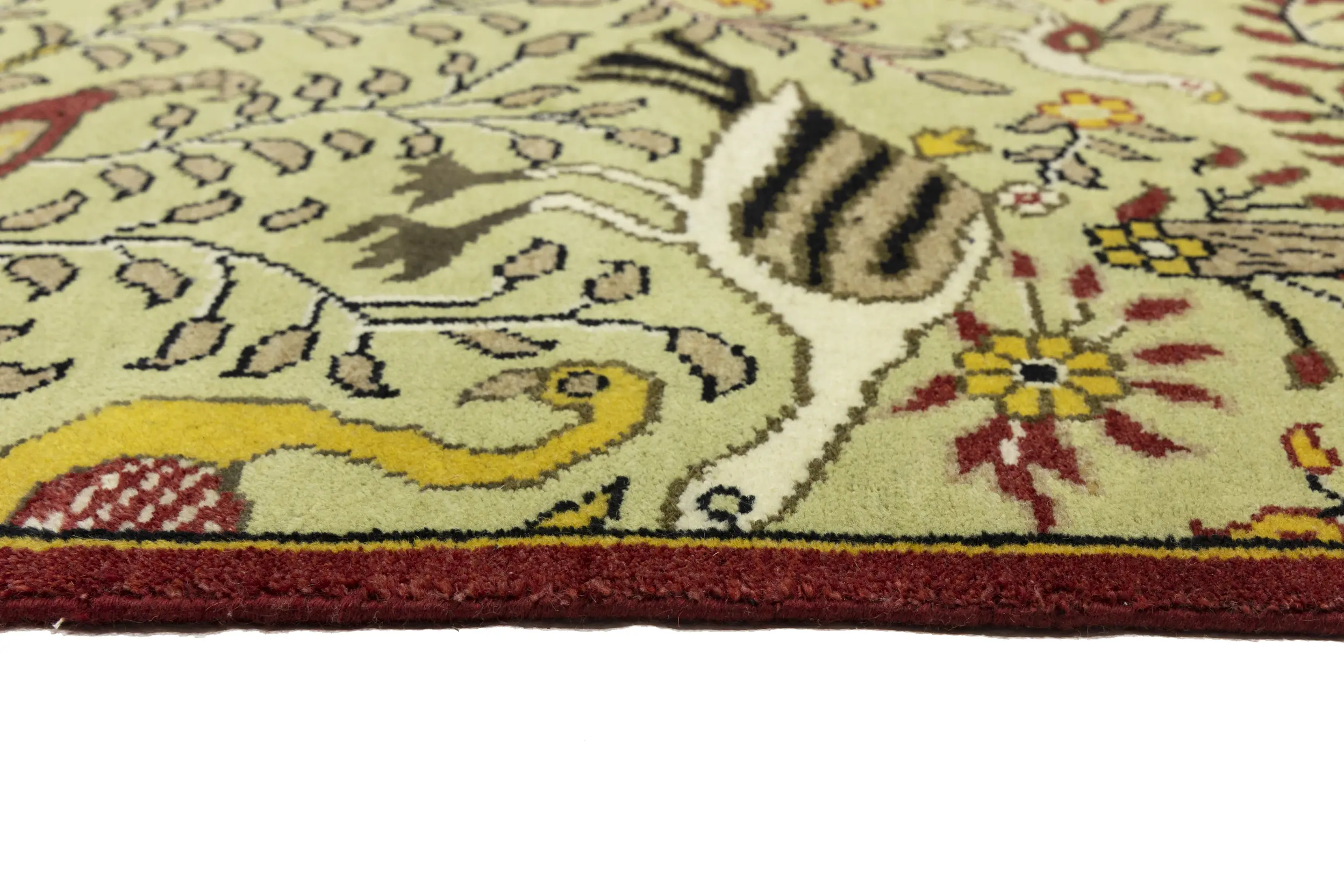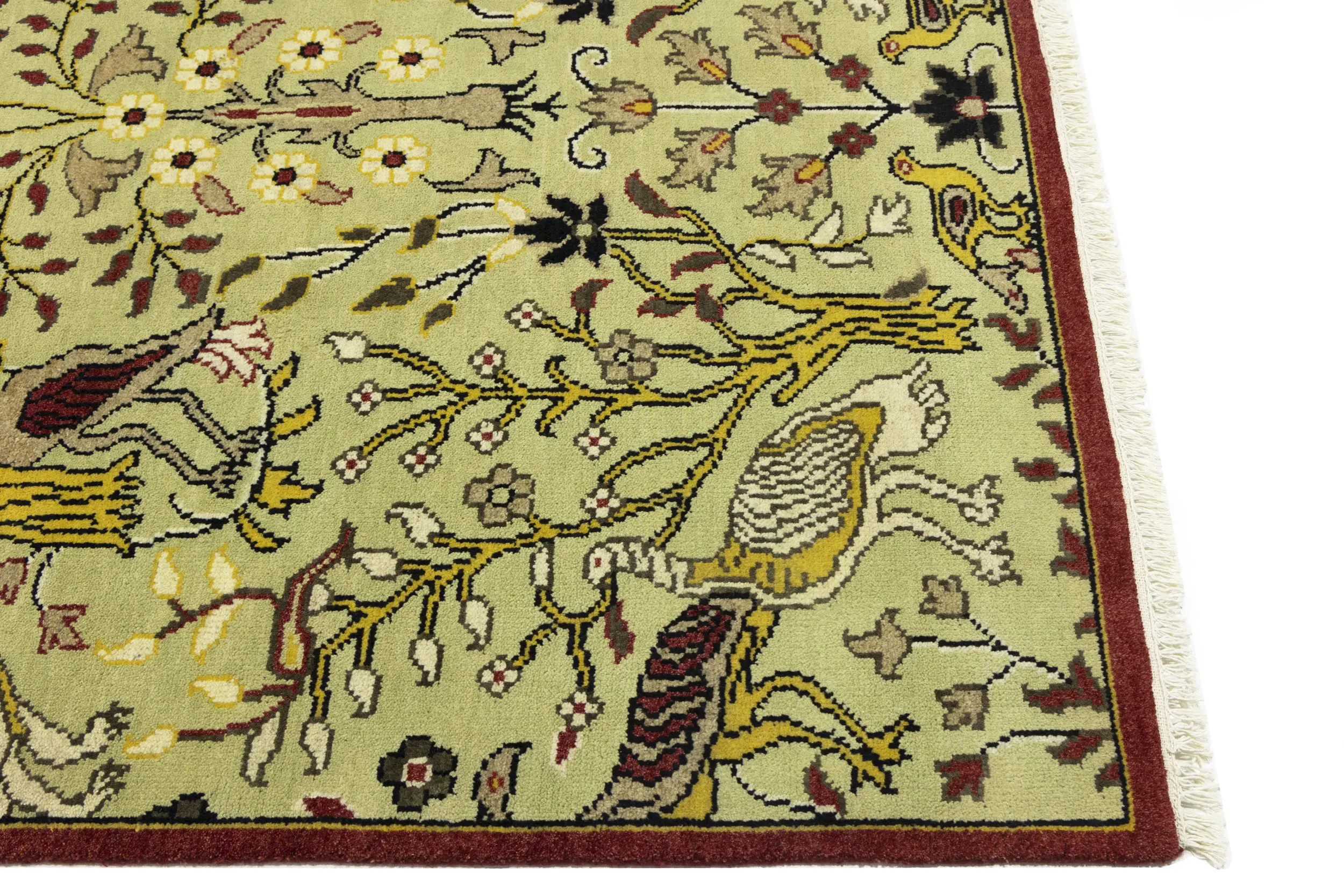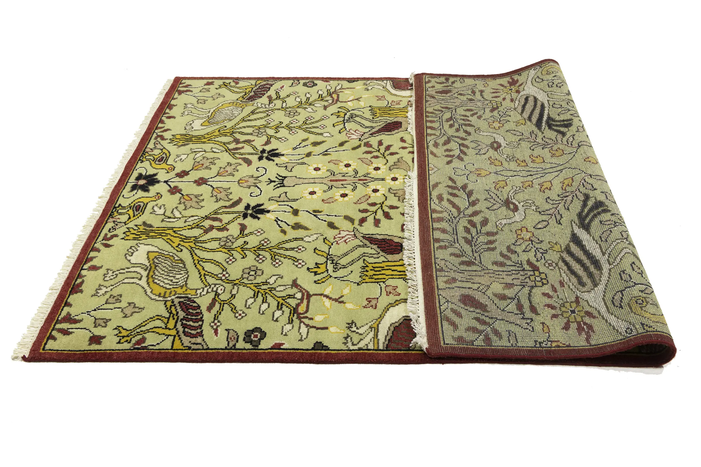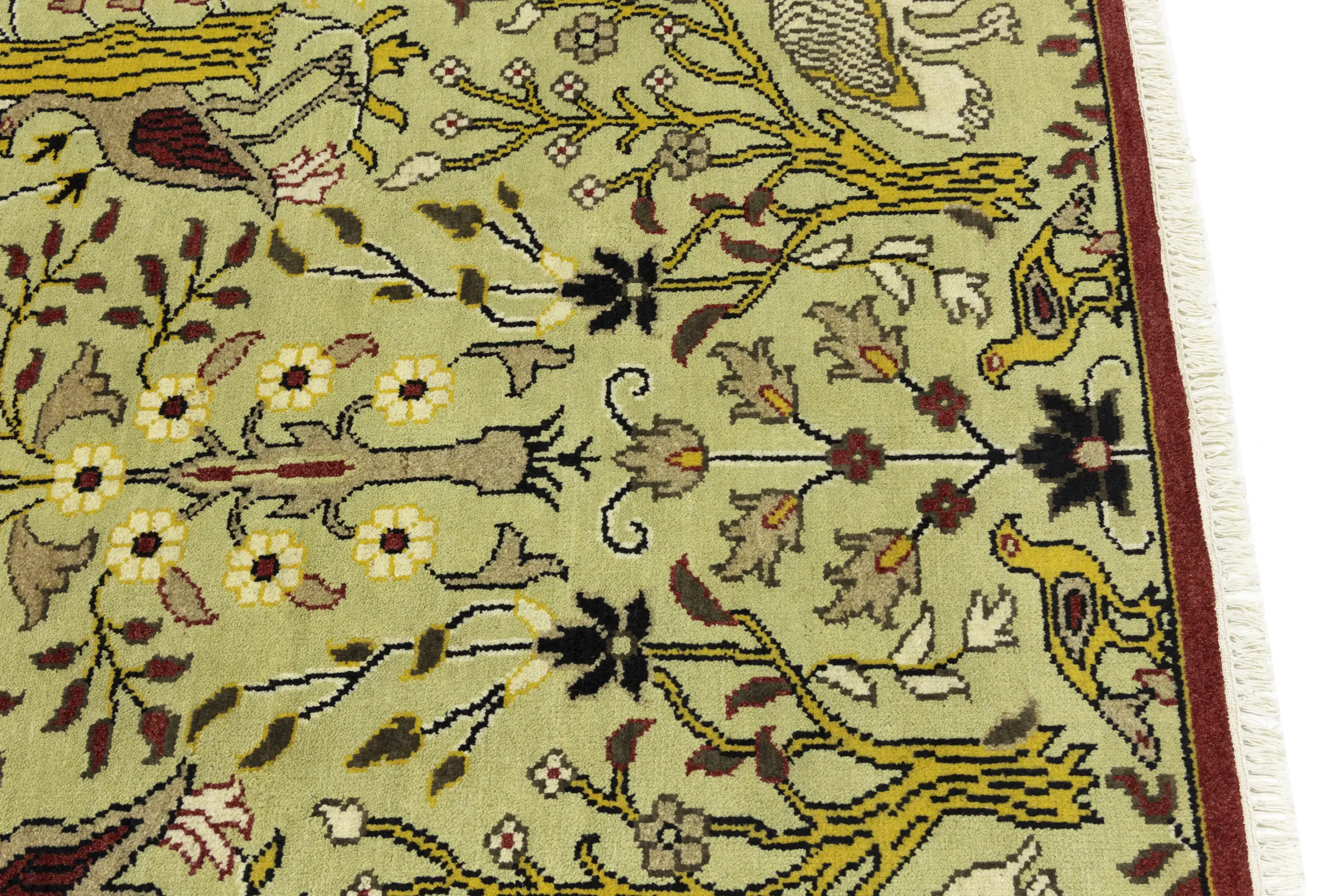 This genuine 6X9 beige new Oriental rug was made by the hands of gifted weavers inspired by a variety of spectacular artistic designs, to recreate the aged look of the original piece with a richness of color and ornately patterned background field. What set this vintage style Oriental area rug from the others are the material and dye used (wool pile and cotton foundation), knot count, ancient designs, fantastic grades, and its regional historical connection: it has deep roots, from the story of the people who produced it to the meaning of the symbols and colors displayed across its canvas that have been praised for centuries. This Indian home décor carpet will be completely cozy and inviting that never will go out of style! Also, this Oriental rug would be among your most valuable treasures, it is a great investment that accrues value over time, and it will last for generations because was woven with high-quality, all-natural wool. Environmentally friendly, opulent yet affordable; this rug will give you a thorough amount of character to help define your living space with elegance and warmth that will capture the eyes and attention of your audience (homeowners, designers, decorators, family and friends).