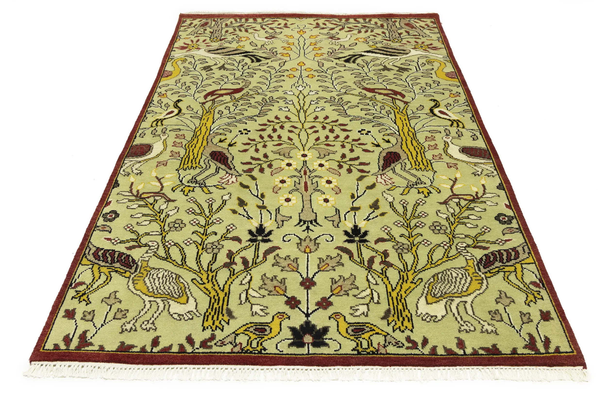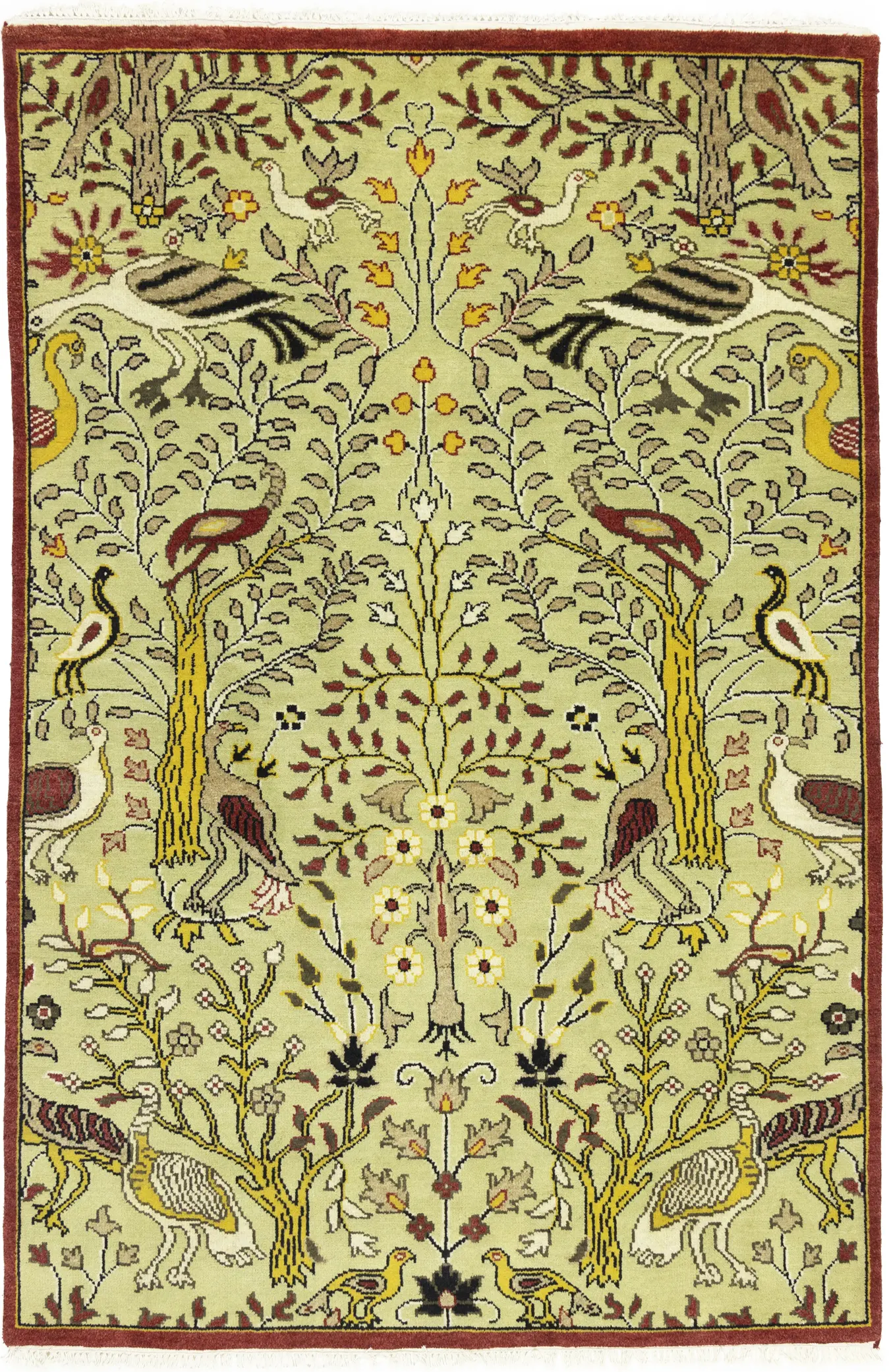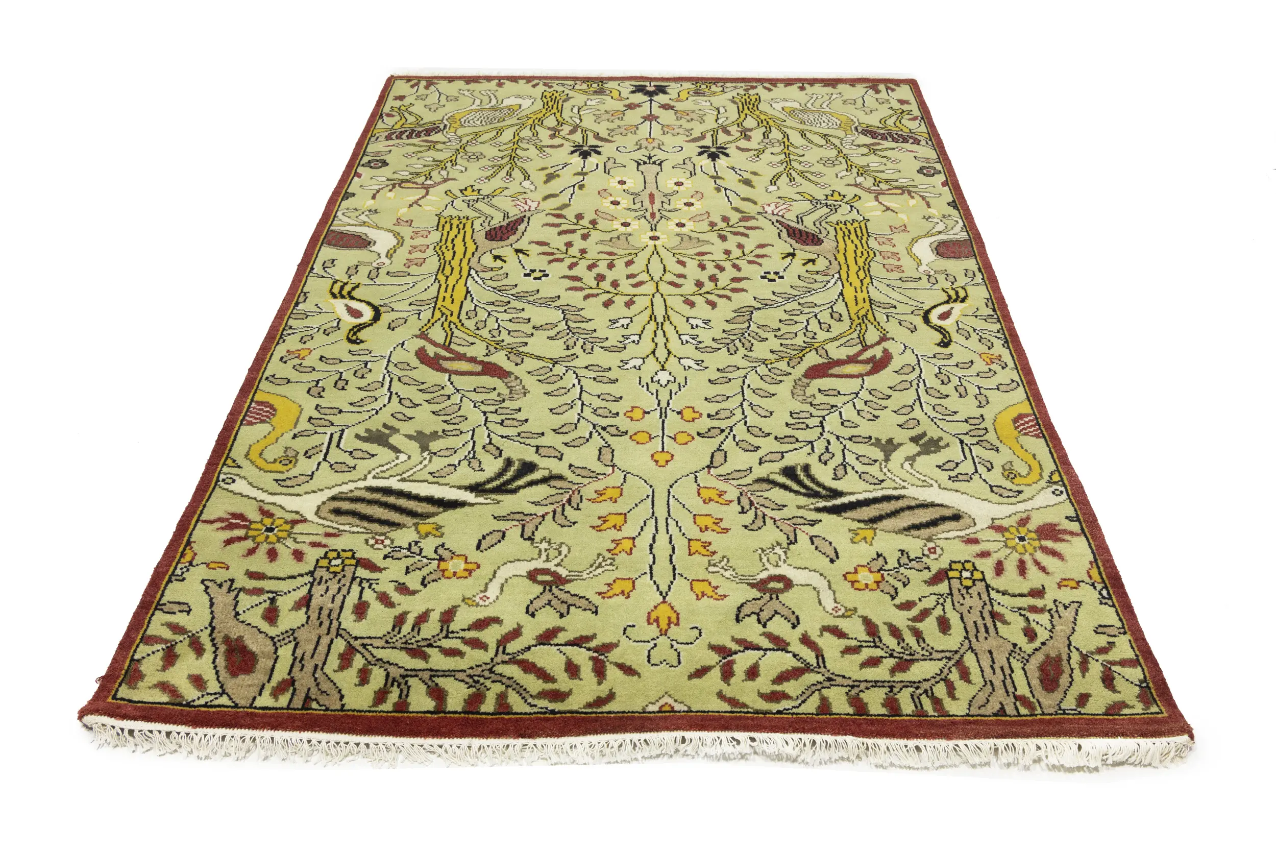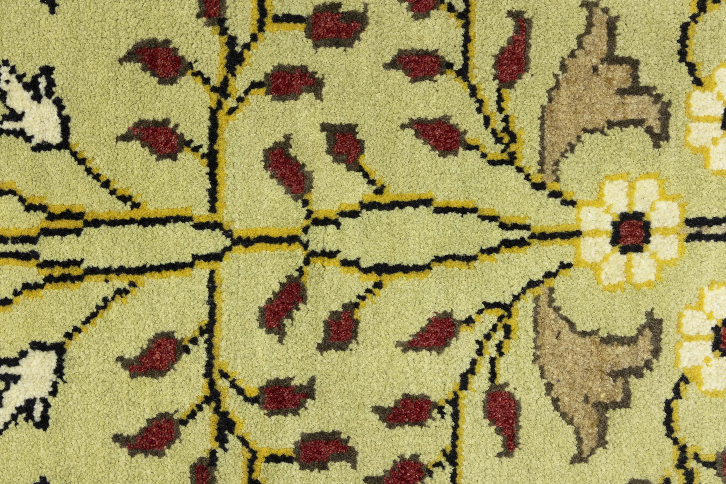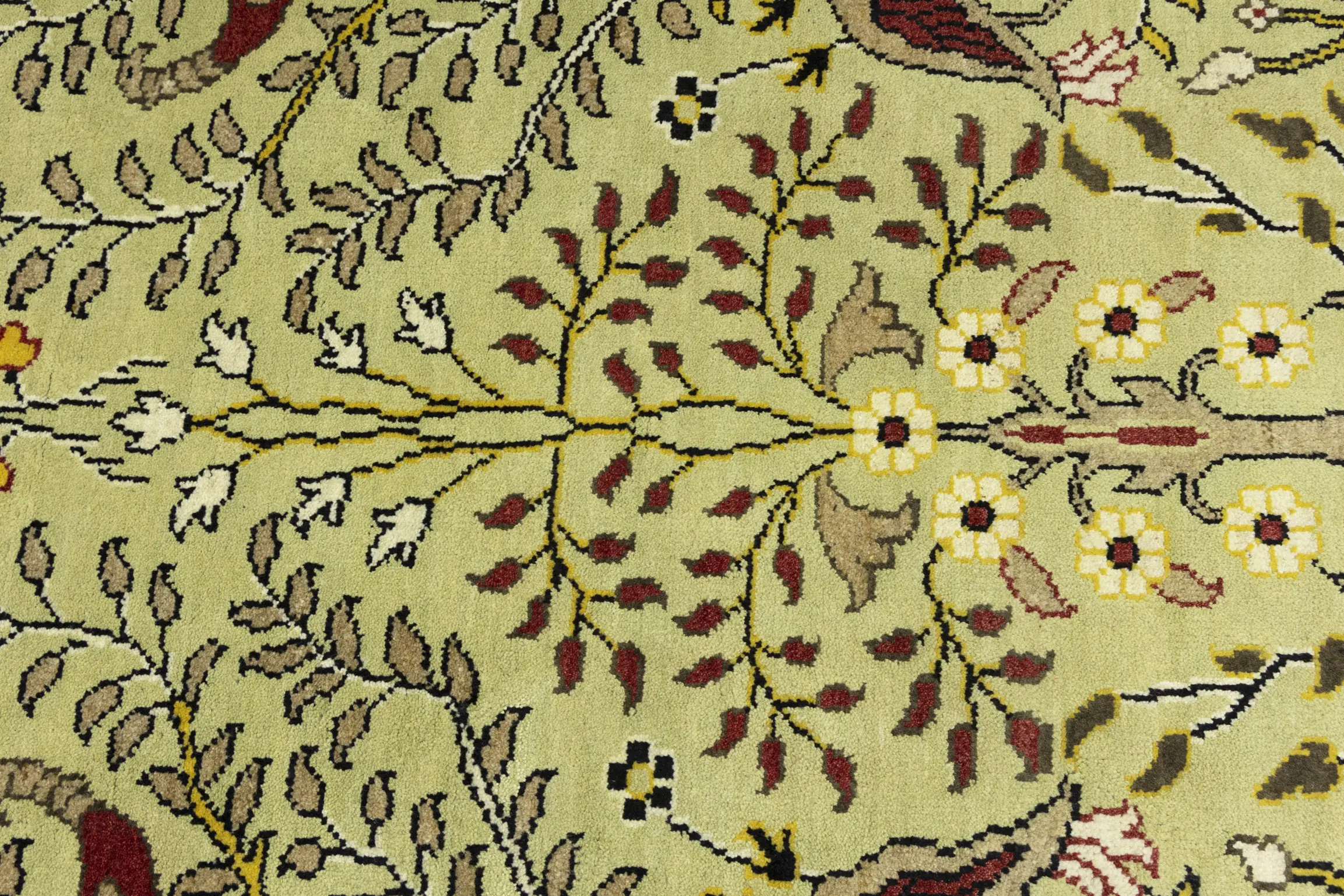 This genuine 6X9 beige new Oriental rug was made by the hands of gifted weavers inspired by a variety of spectacular artistic designs, to recreate the aged look of the original piece with a richness of color and ornately patterned background field. What set this vintage style Oriental area rug from the others are the material and dye used (wool pile and cotton foundation), knot count, ancient designs, fantastic grades, and its regional historical connection: it has deep roots, from the story of the people who produced it to the meaning of the symbols and colors displayed across its canvas that have been praised for centuries. This Indian home décor carpet will be completely cozy and inviting that never will go out of style! Also, this Oriental rug would be among your most valuable treasures, it is a great investment that accrues value over time, and it will last for generations because was woven with high-quality, all-natural wool. Environmentally friendly, opulent yet affordable; this rug will give you a thorough amount of character to help define your living space with elegance and warmth that will capture the eyes and attention of your audience (homeowners, designers, decorators, family and friends).