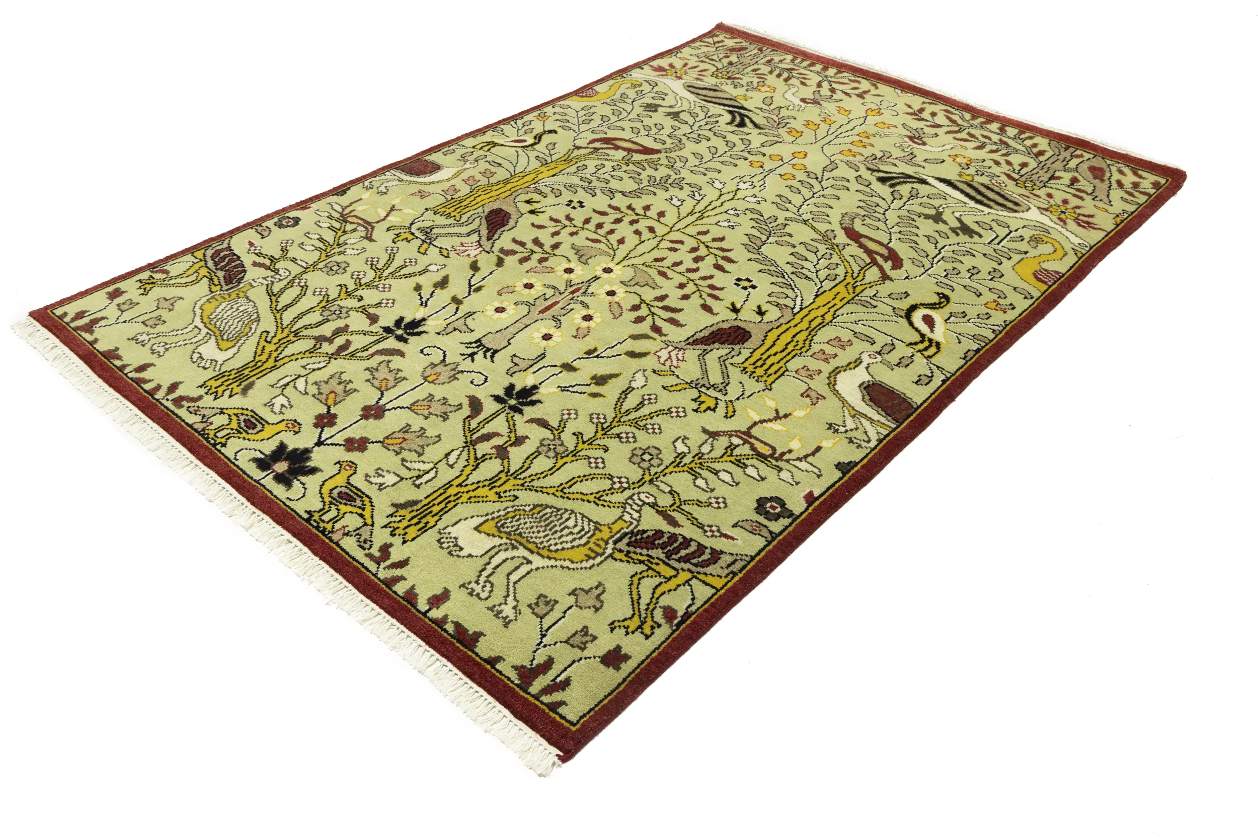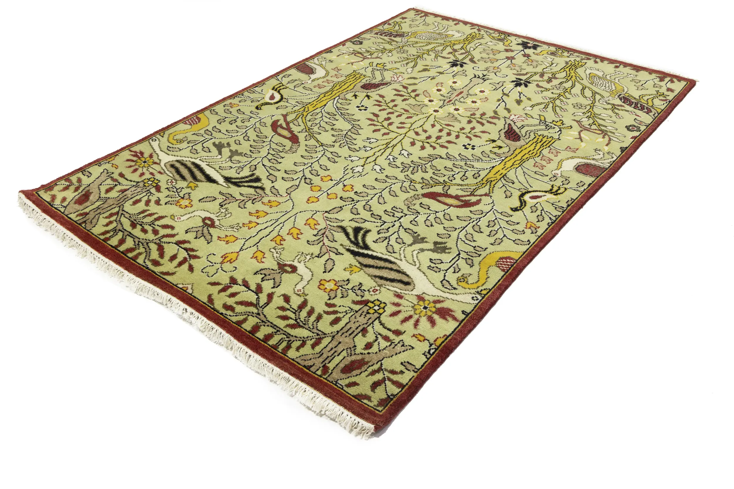 Greenish Beige Pictorial Tribal 6X9 Chobi Oriental Rug