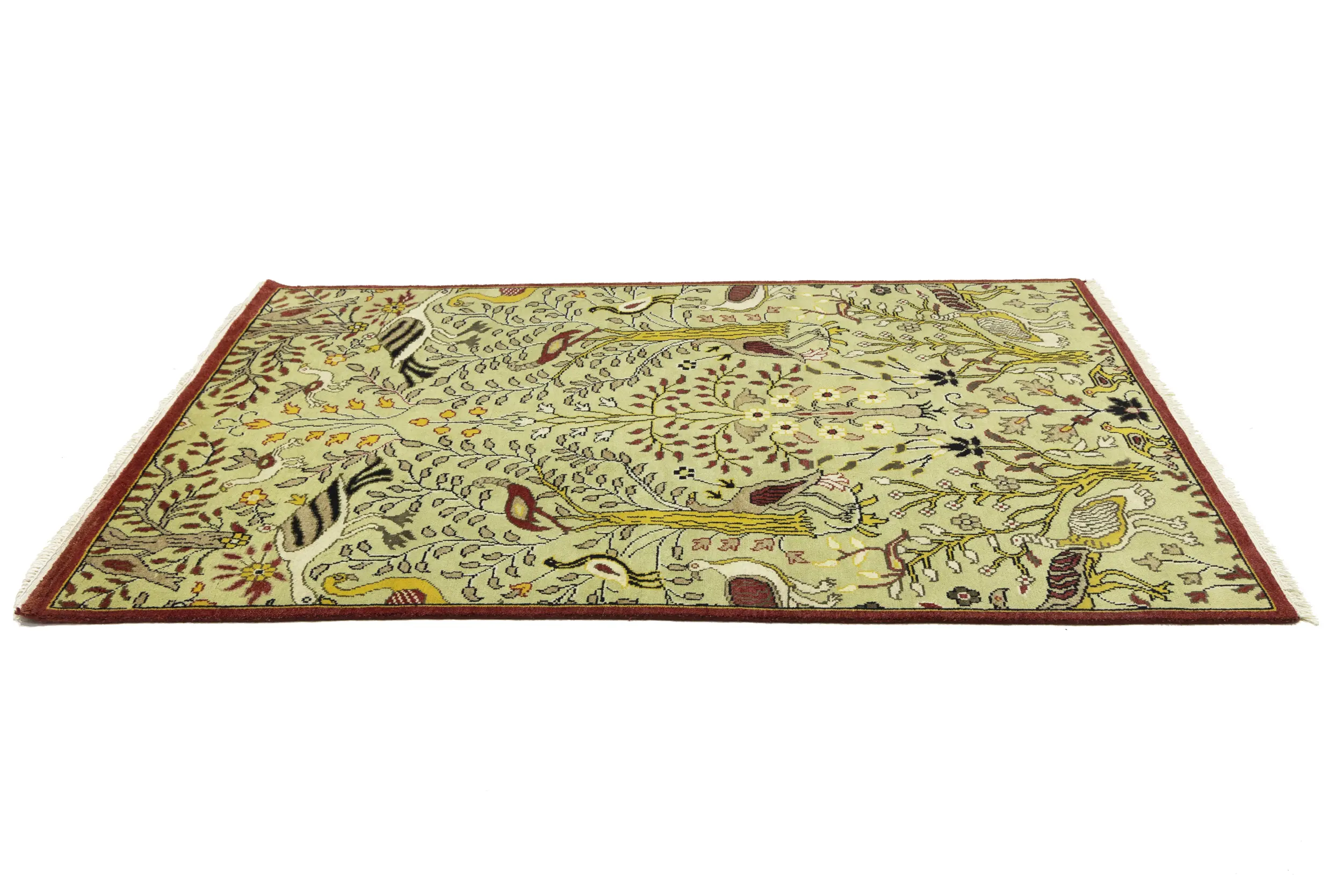 Handmade 6X9 beige oriental rug made with vegetable dyes (fine wool pile and cotton foundation), superior knot count, and appealing ancient designs. This Oriental rug never will go out of style and would be among your most valuable treasures.