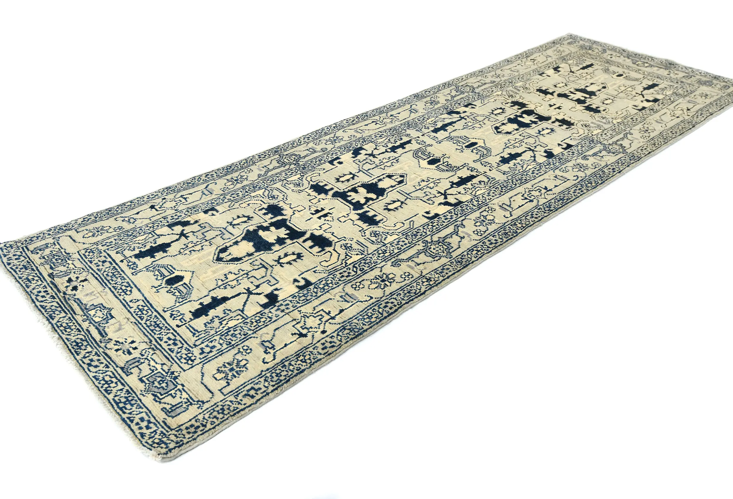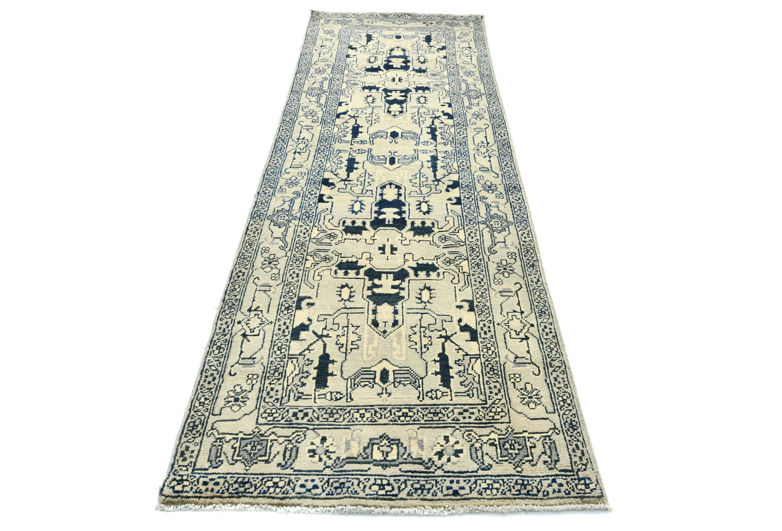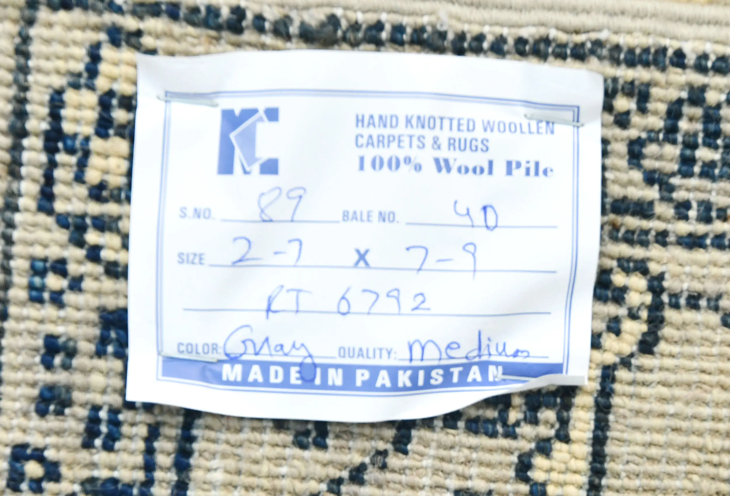 Hand Knotted 3X8 Greige oriental Runner rug made with vegetable dyes (fine wool pile and cotton foundation), superior knot count, and appealing ancient designs. This Oriental rug never will go out of style and would be among your most valuable treasures.