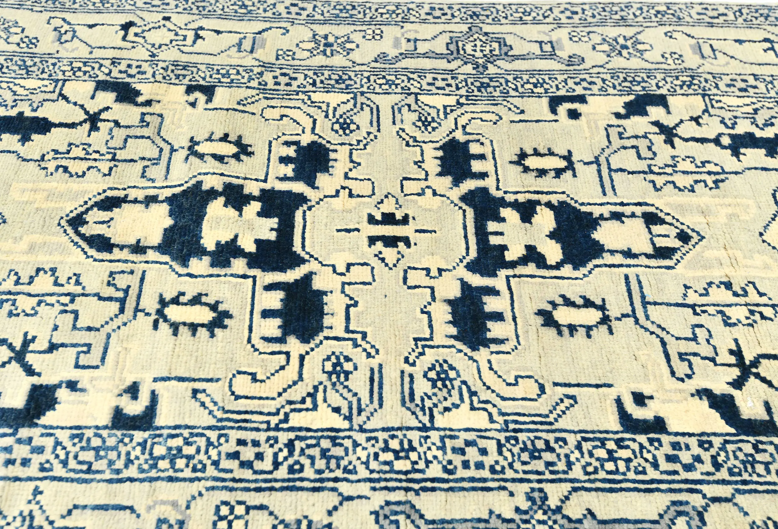 Greige Geometric 3X8 Heriz Serapi Oriental Runner Rug