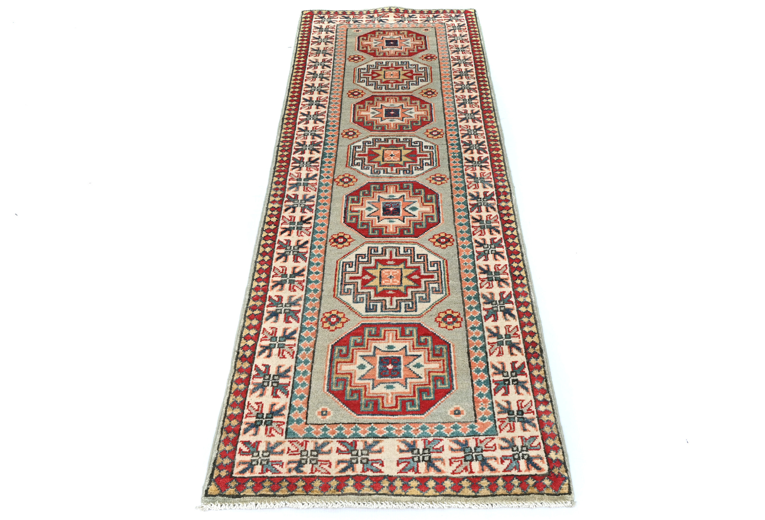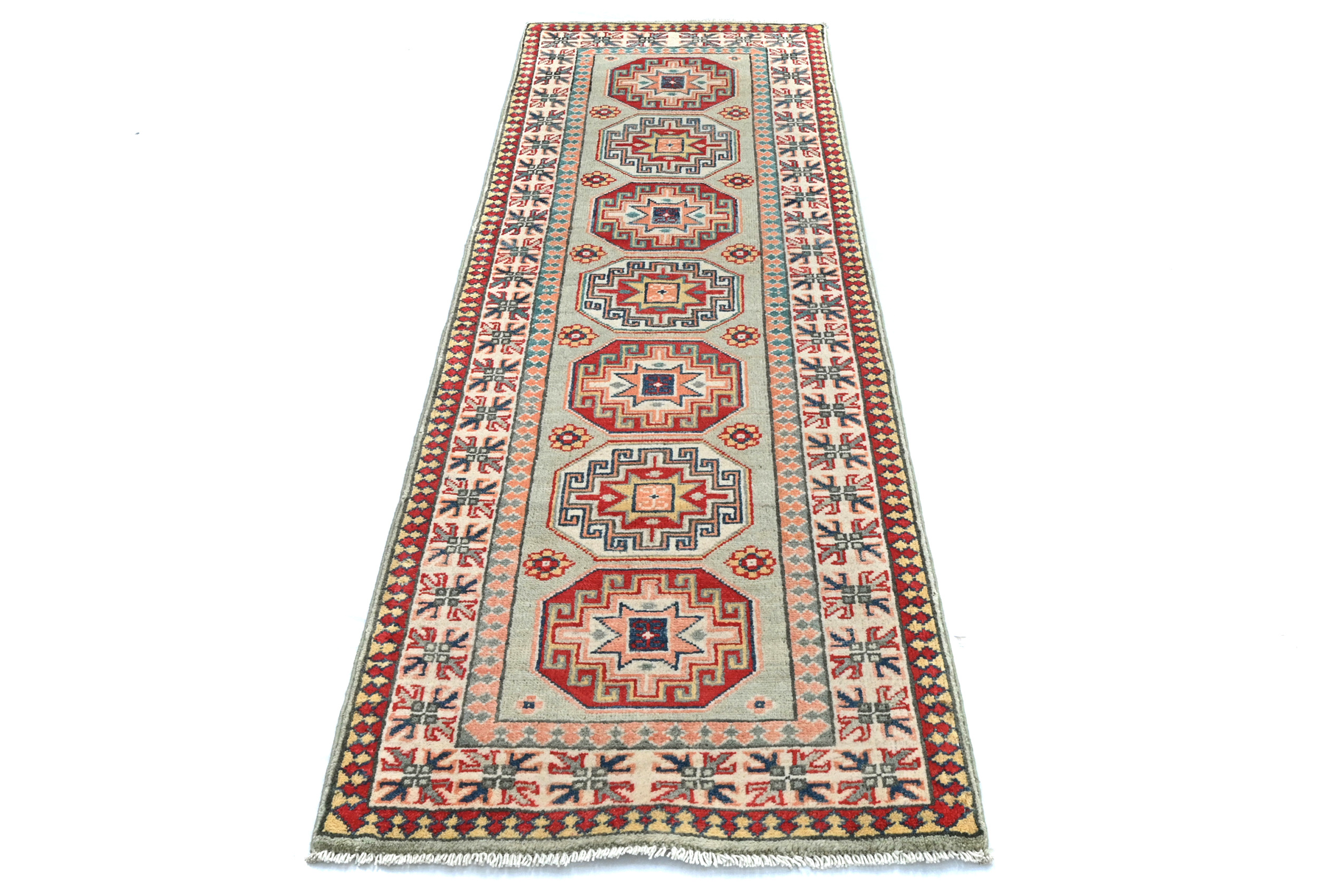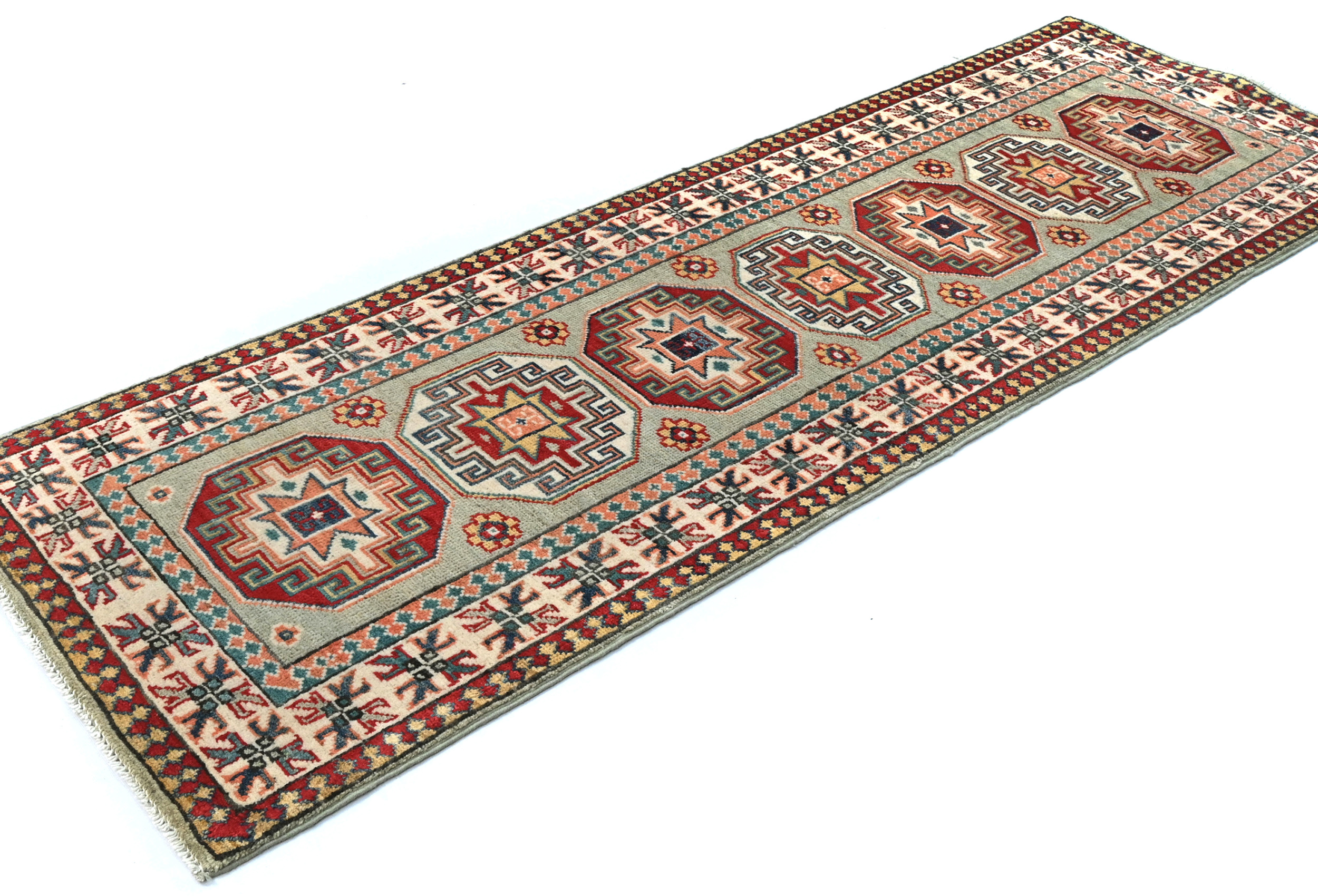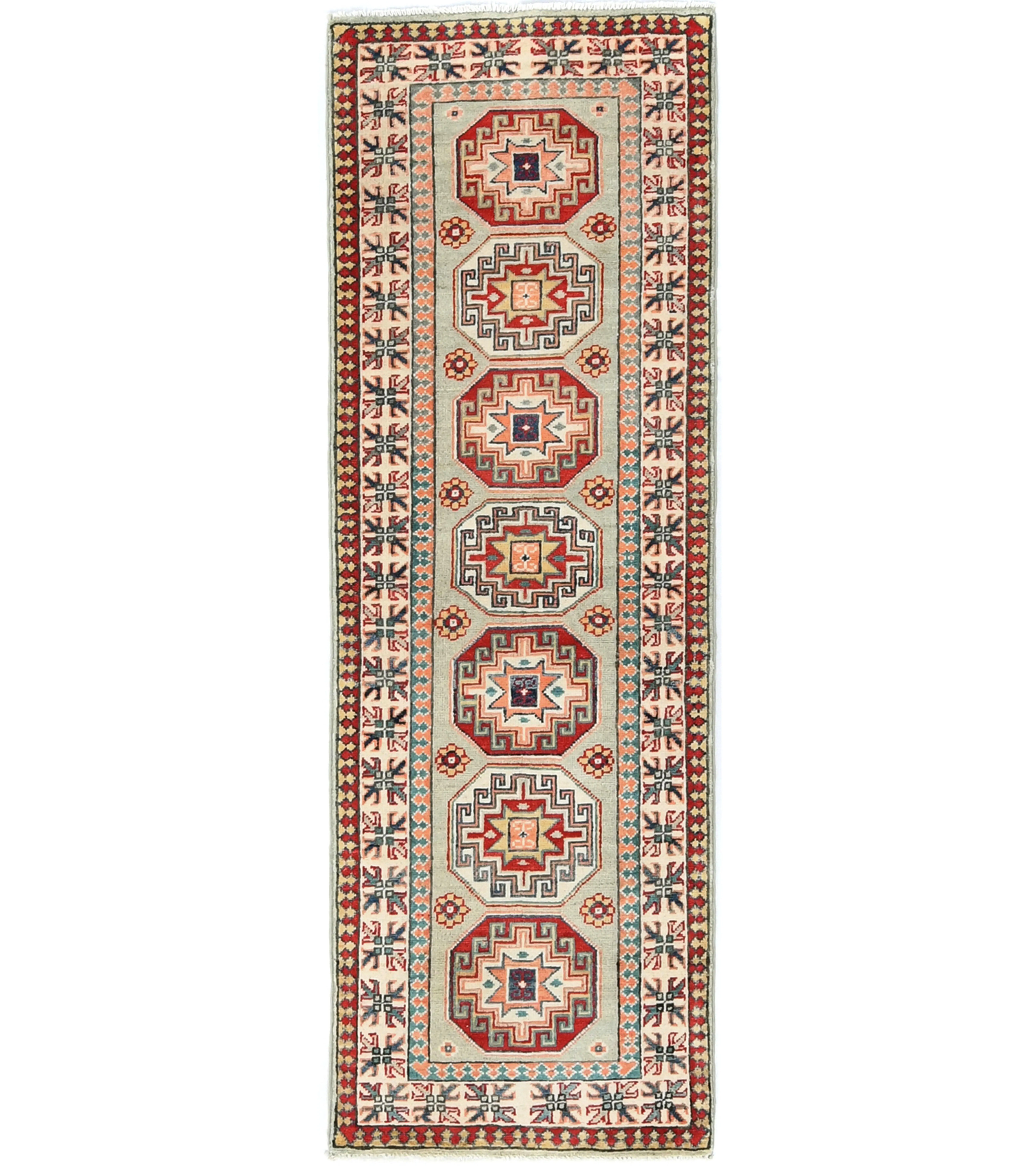 Greige Tribal Geometric 2X6 Kazak Pakistan Oriental Runner Rug