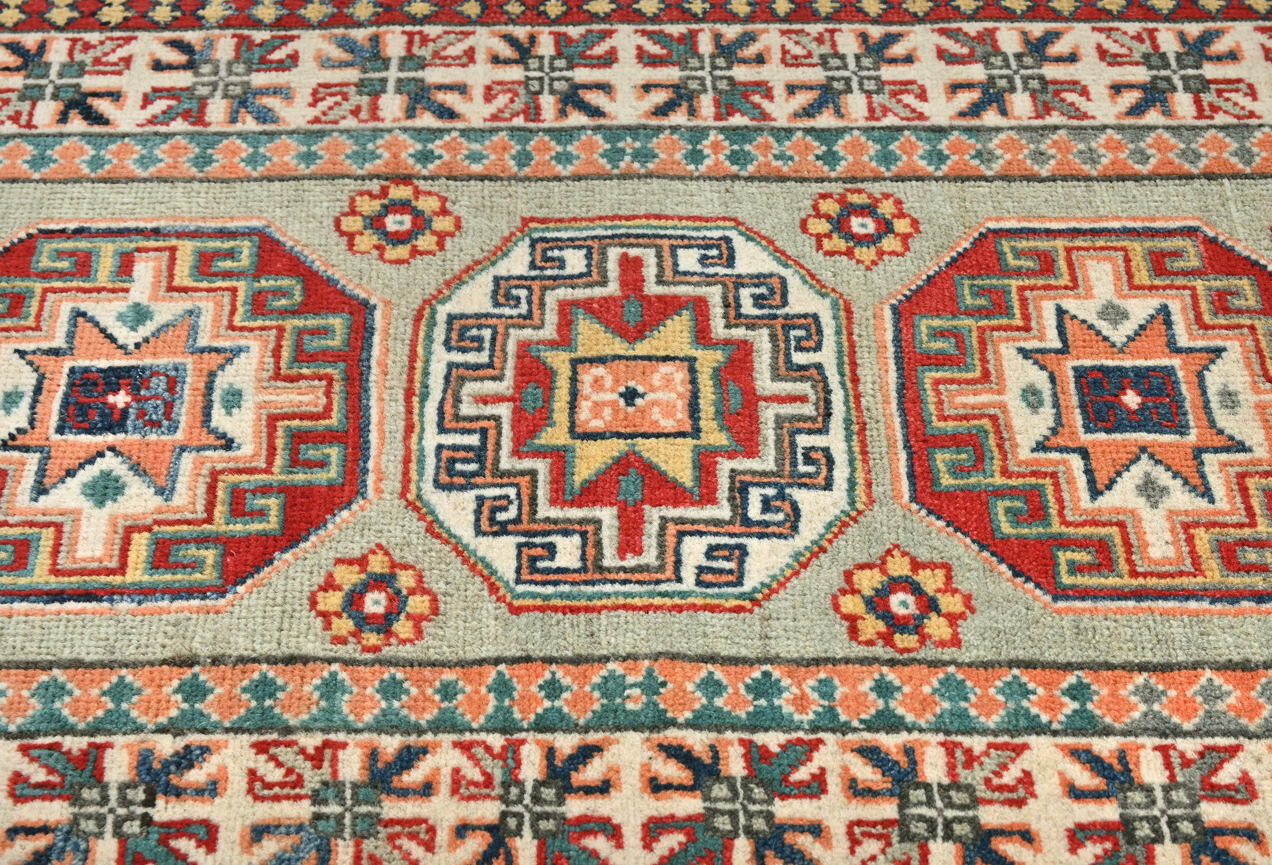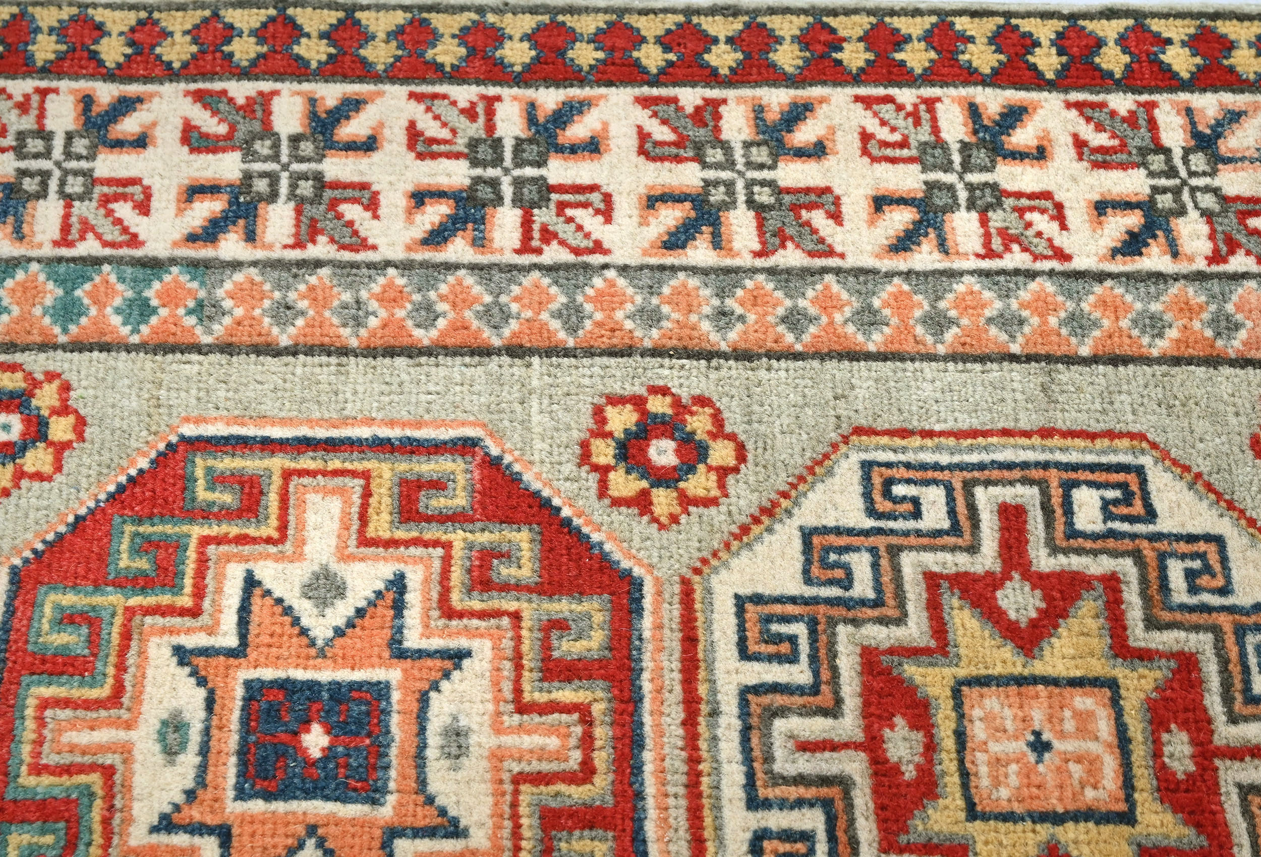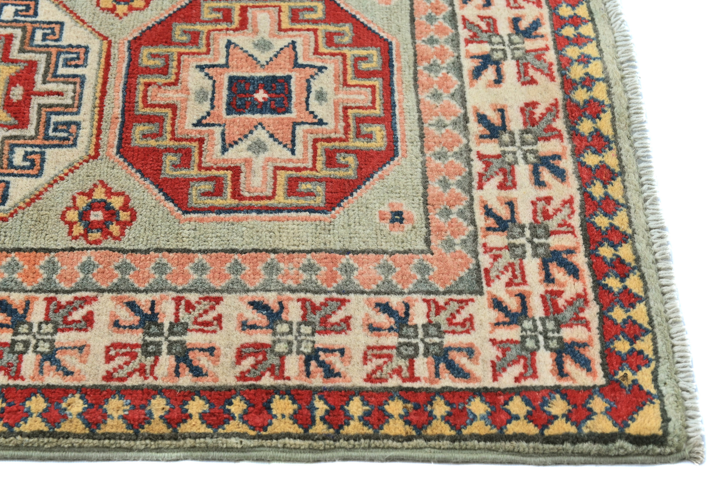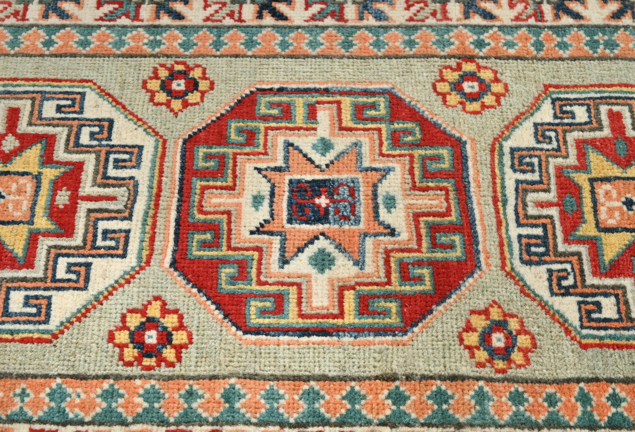 Greige Tribal Geometric 2X6 Kazak Pakistan Oriental Runner Rug